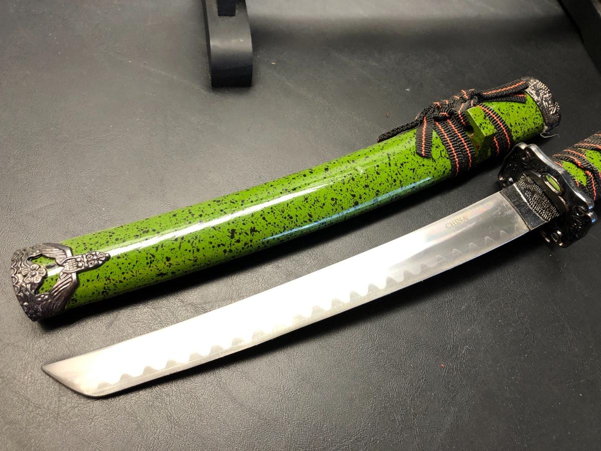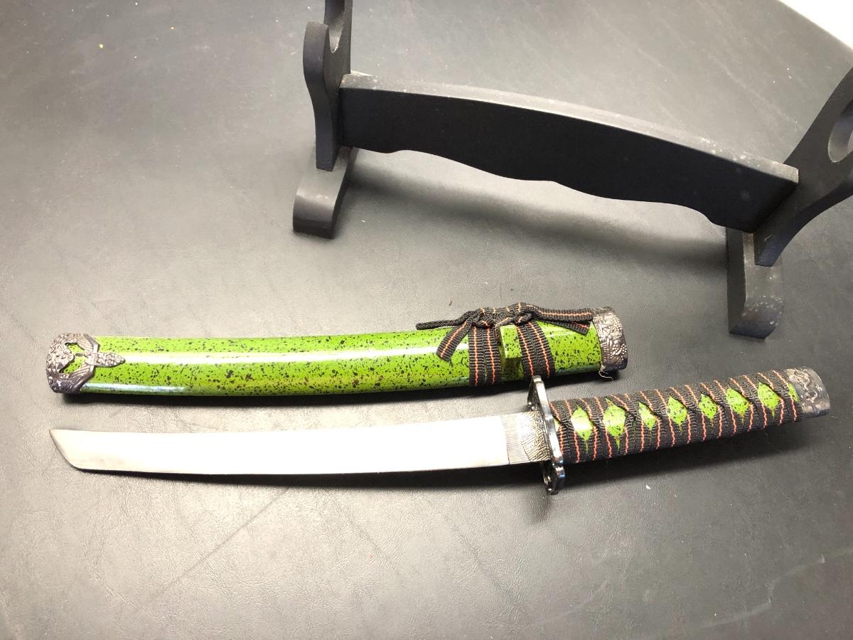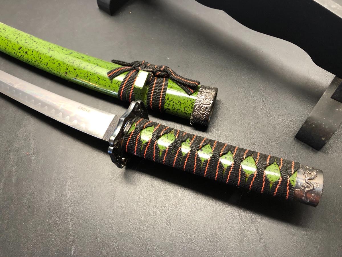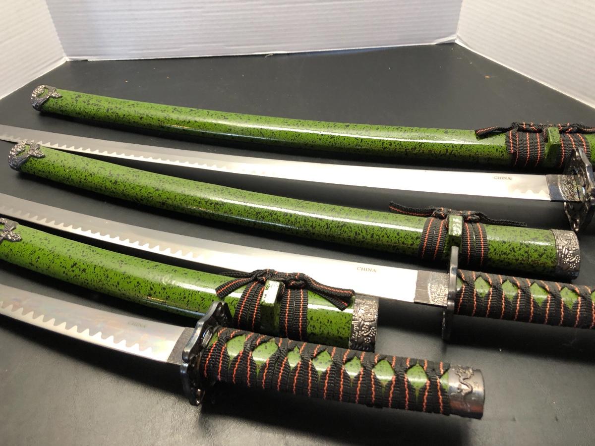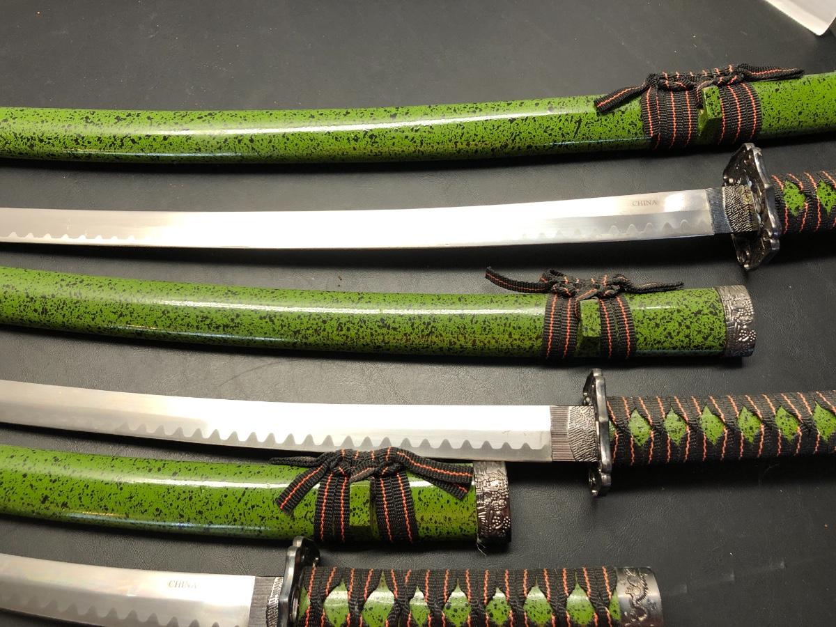 Three Samurai Swords w/Stand (Green) Lot #0794