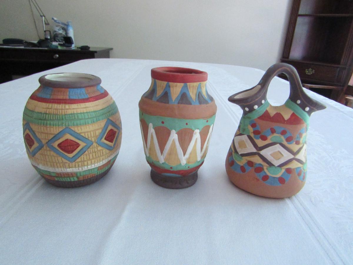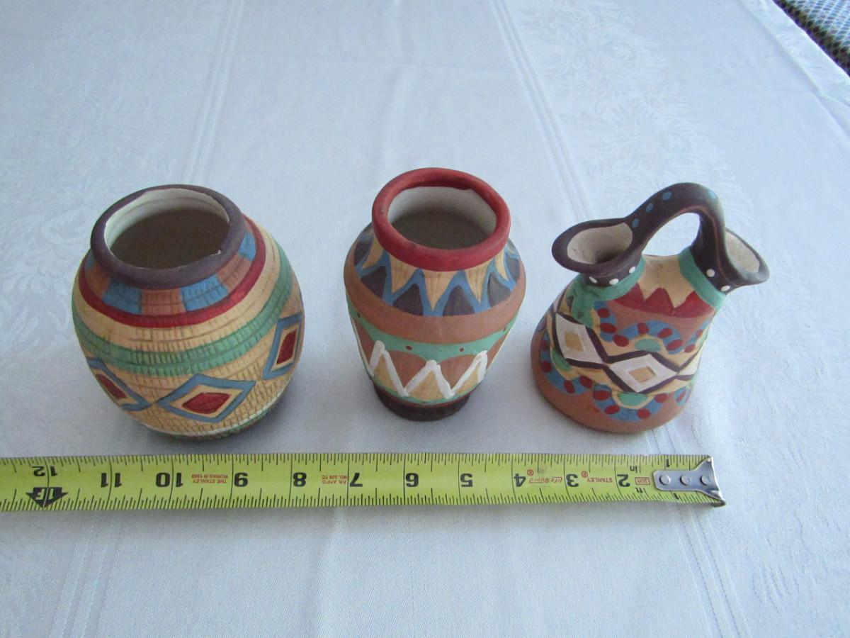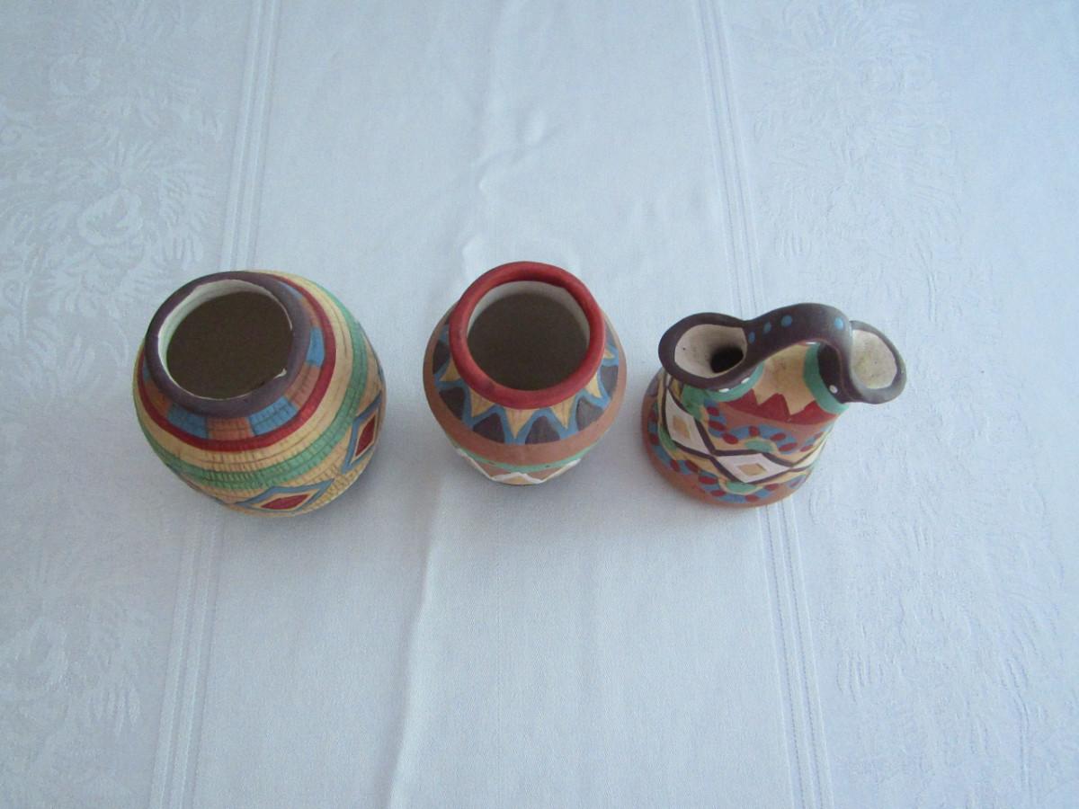 Three Hand Painted Pottery Vases