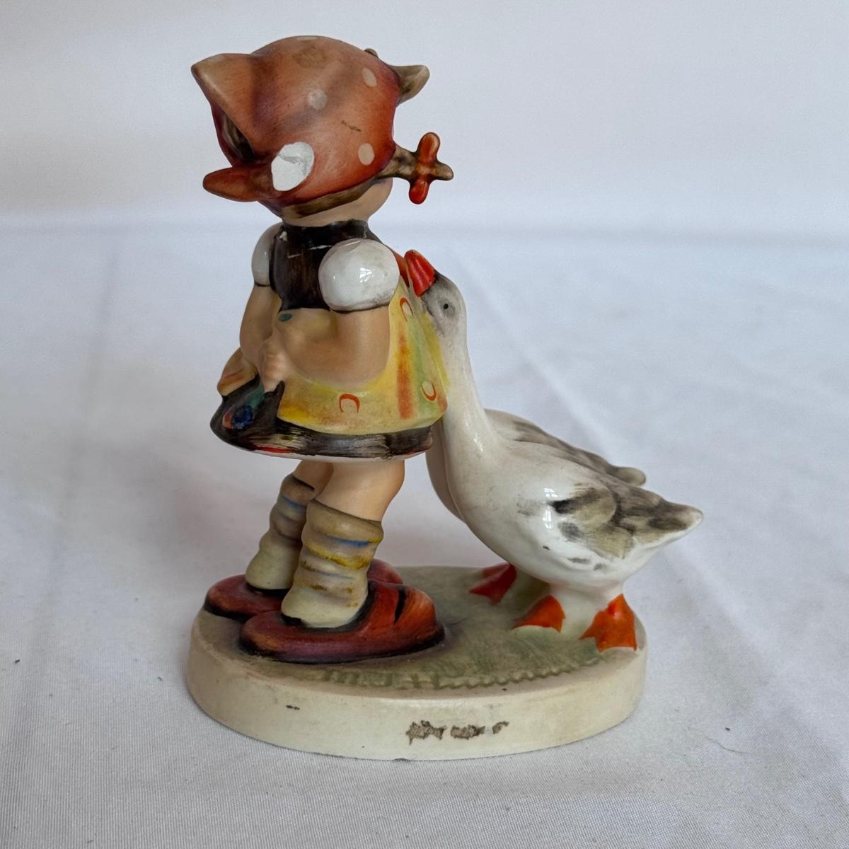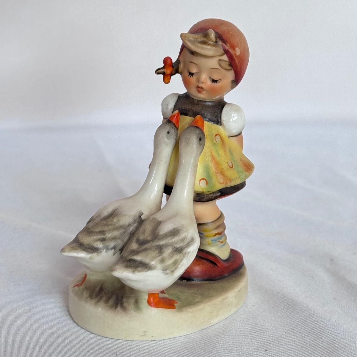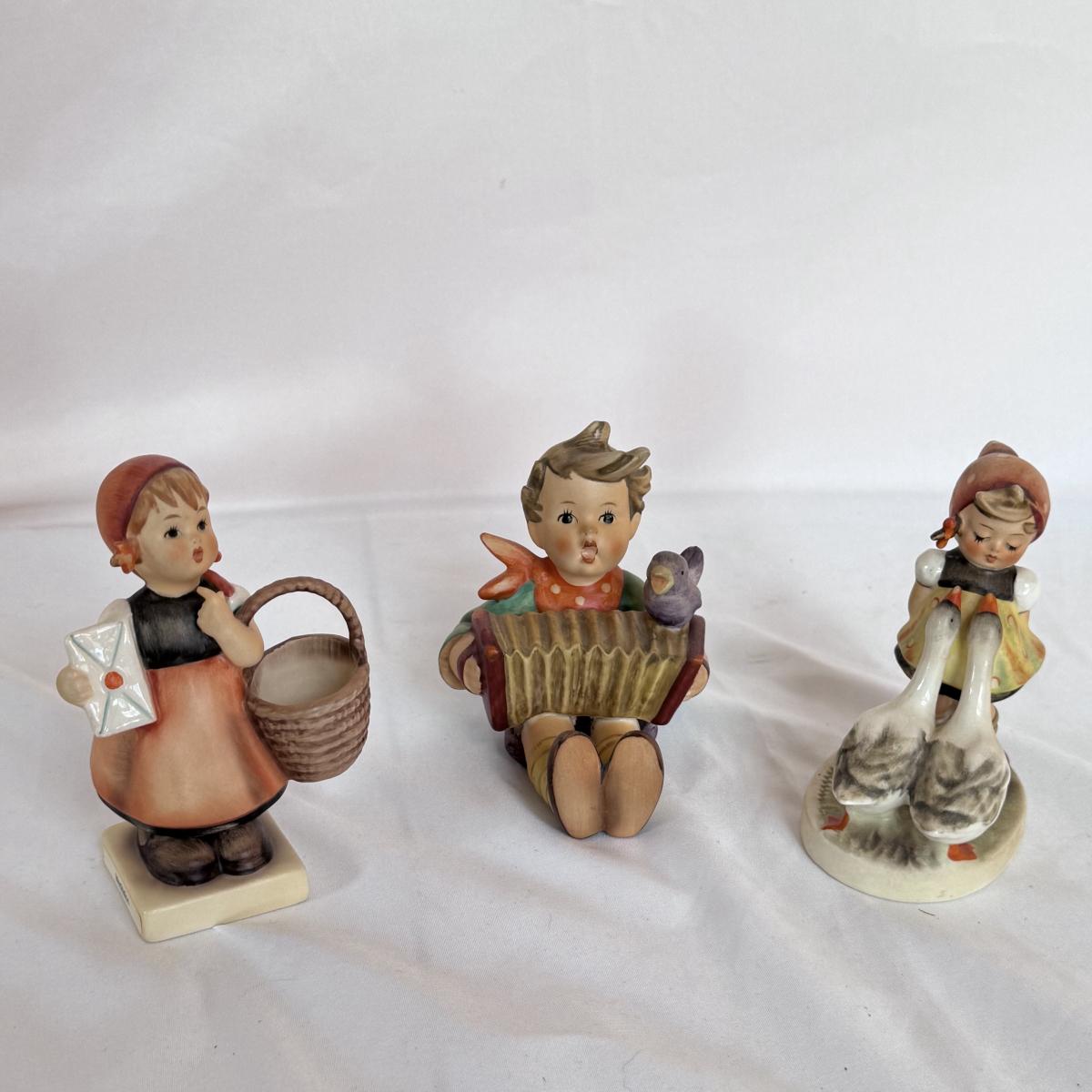 This lot includes three Hummel figurines made of porcelain. The first Hummel individually pictured is the “Let’s Sing” figurine. The second pictured is “Goose Girl,” and the third is “Meditation.” The “Goose Girl” figurine measures 2.25” x 3” x 3.95”H. Shipping available.