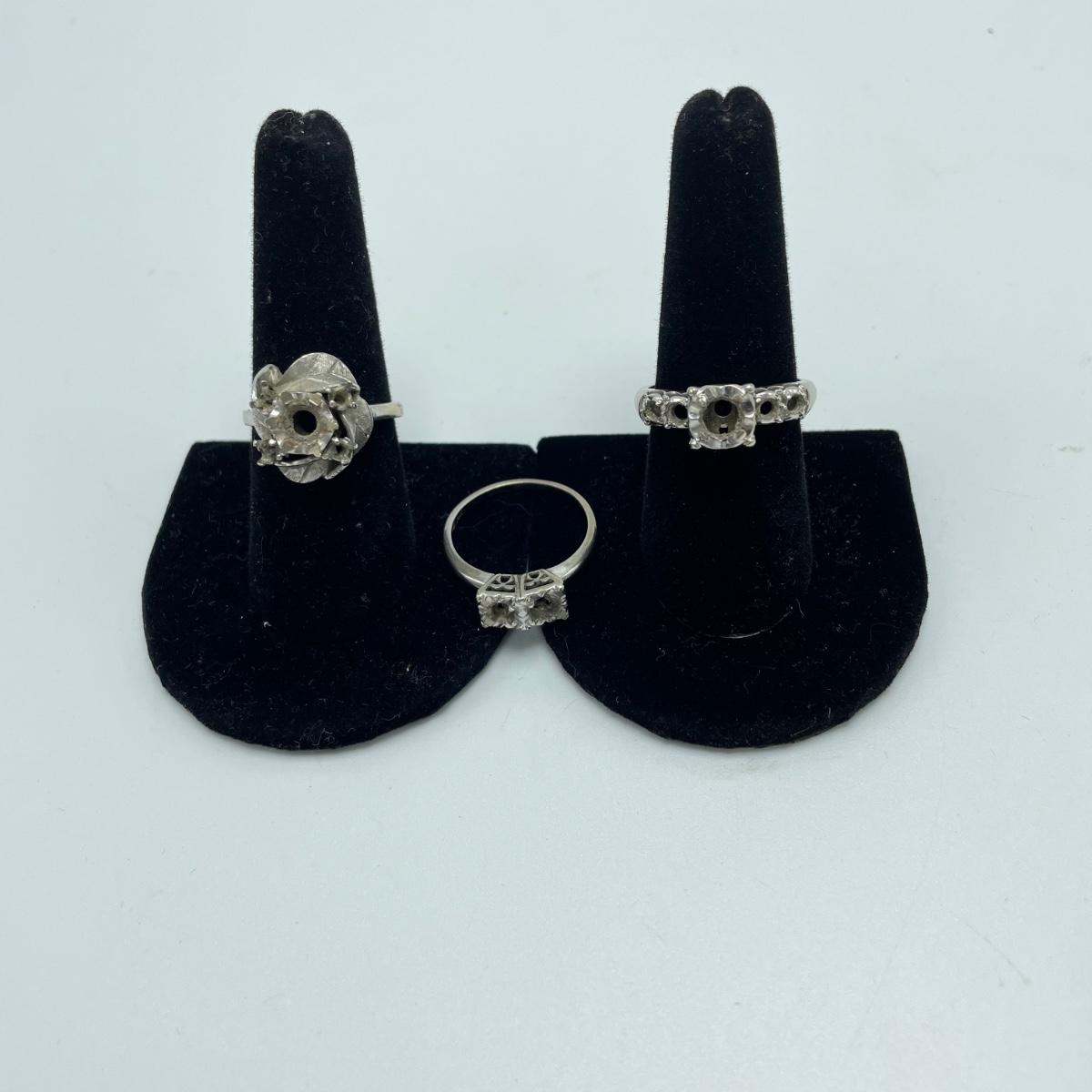 Three illusion setting rings waiting for the perfect gems. All are marked 14K. Starting bid is at or near melt value. See images. Shipping available.