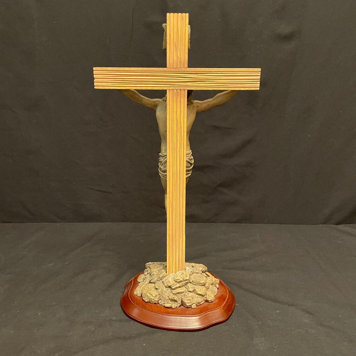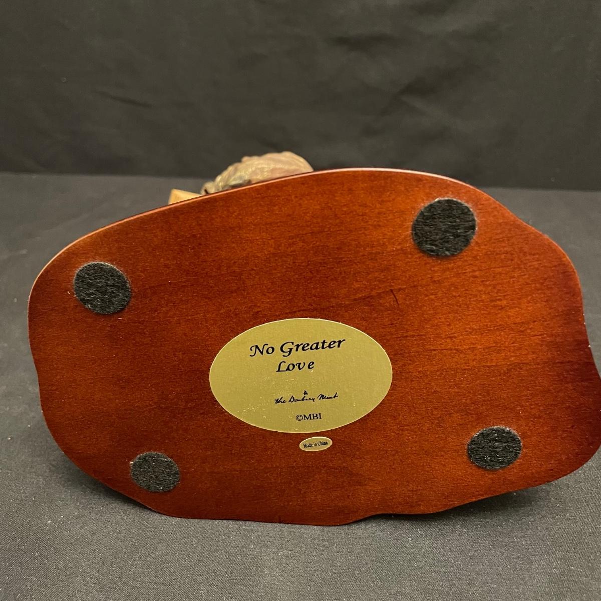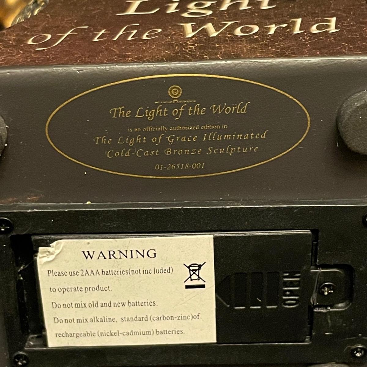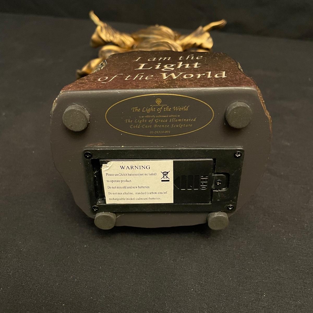 Two Danbury Mint Jesus with the cross statuettes. Both 'No Greater Love' and 'The Way, The Truth, and The Life' figures by Danbury Mint have Bible verses on a plaque. Their crosses and bases are wooden. Jesus on the cross ('The Way, The Truth, & The Life') appears to be metal. Jesus carrying the cross ('No Greater Love') seems to be a heavy and sturdy resin. Lastly, the light-up 'The Light of the World' is a cold-cast bronze figure, it is lightweight. This statuette turned on with two AAA batteries when tested. 'The Way, The Truth, & The Life' is the tallest at 7” x 5” x 12.5”H. See images. Shipping available.