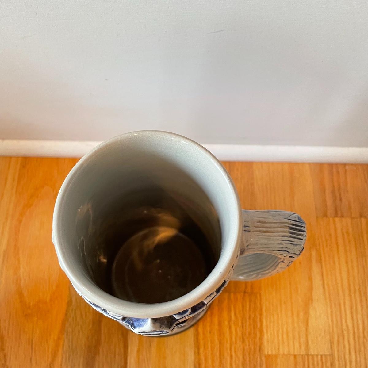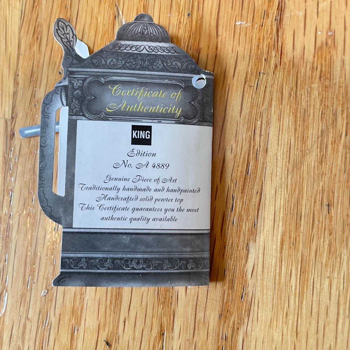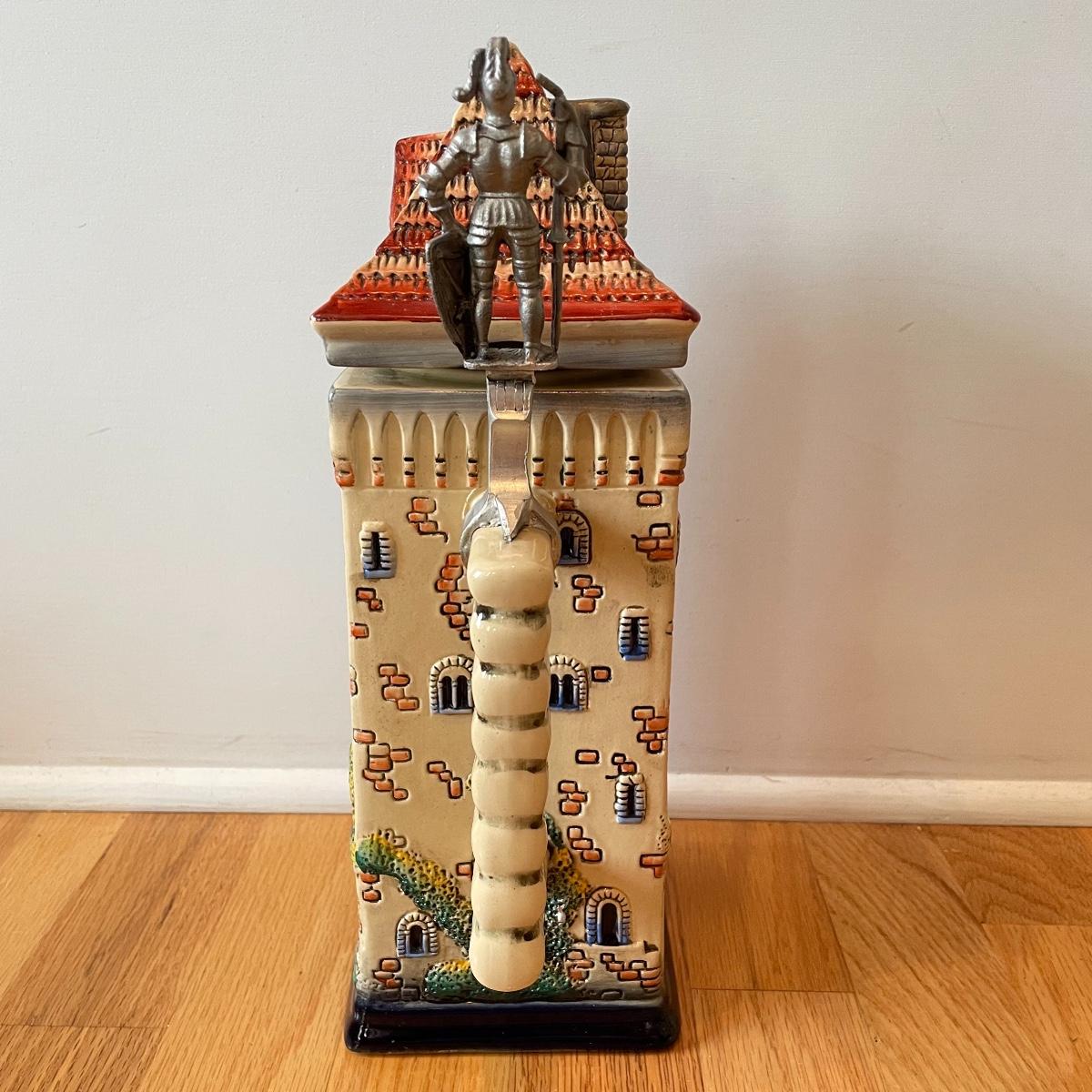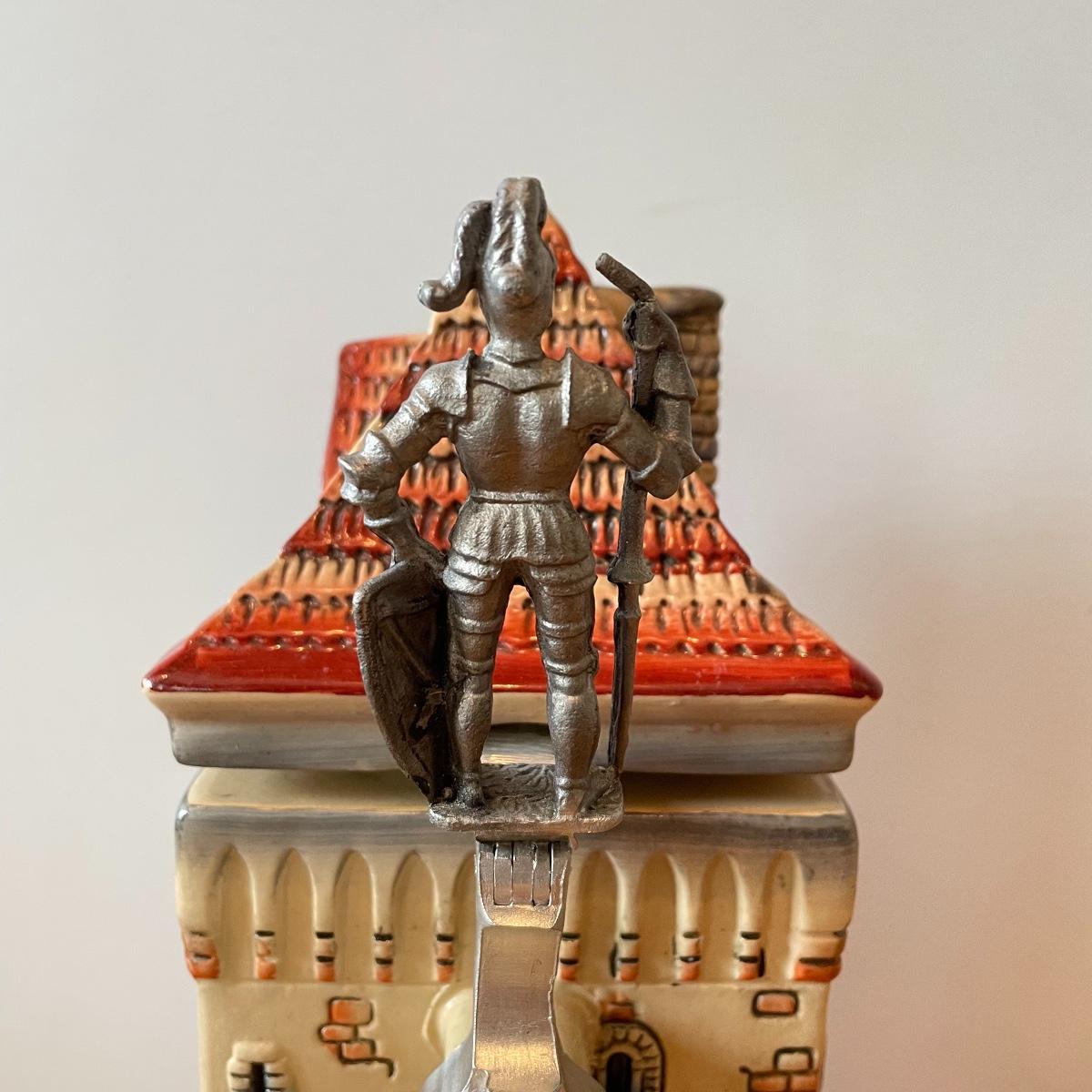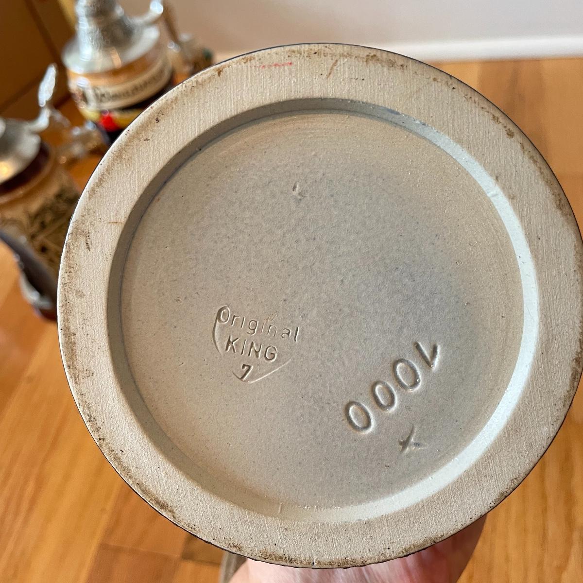 Three detailed and numbered steins by King. The Turmeinblick Tower Look Into is 13” tall. The other two Steins and mug are around 9” tall. Shipping available.