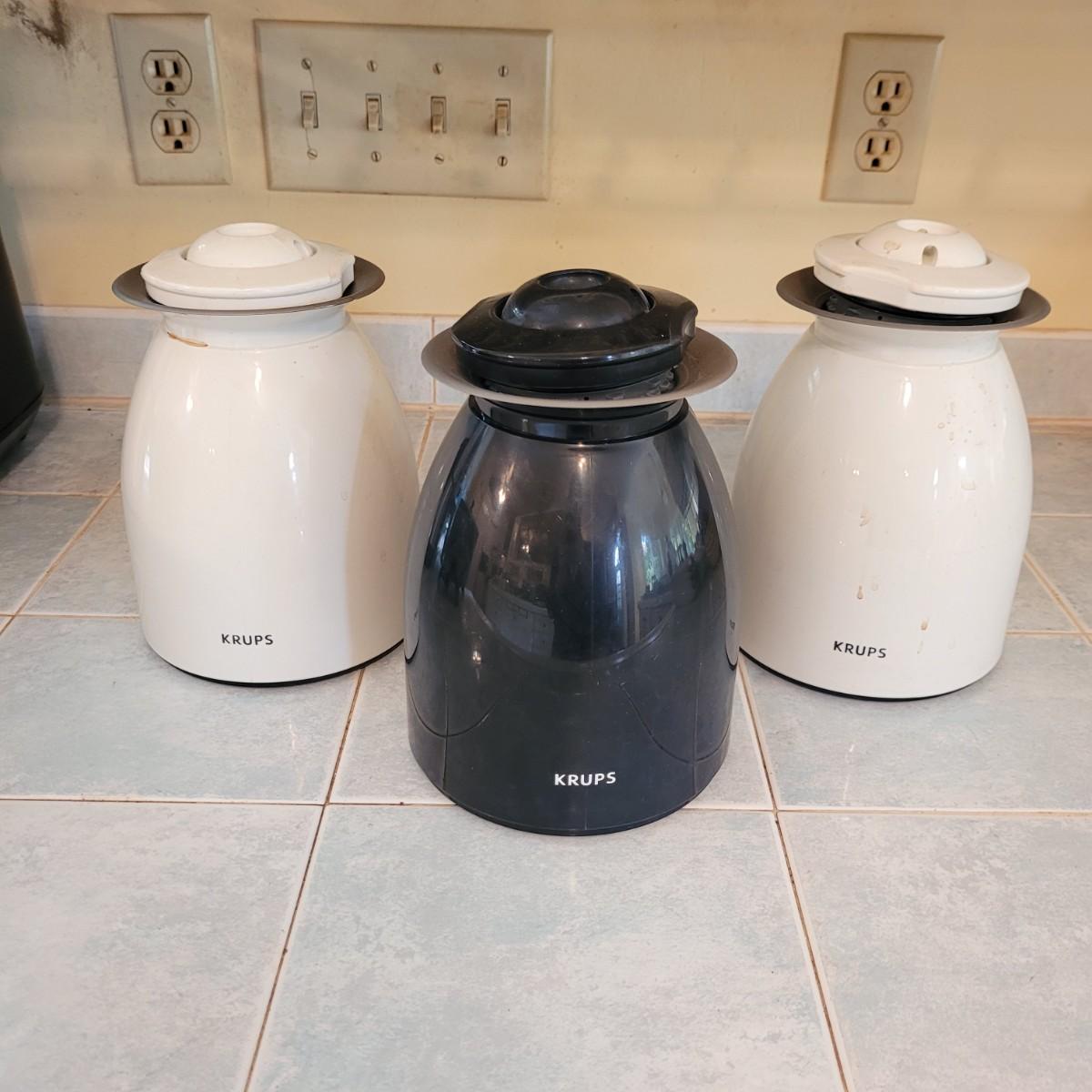 Three Krups coffee carafes, need cleaning. Shipping available.