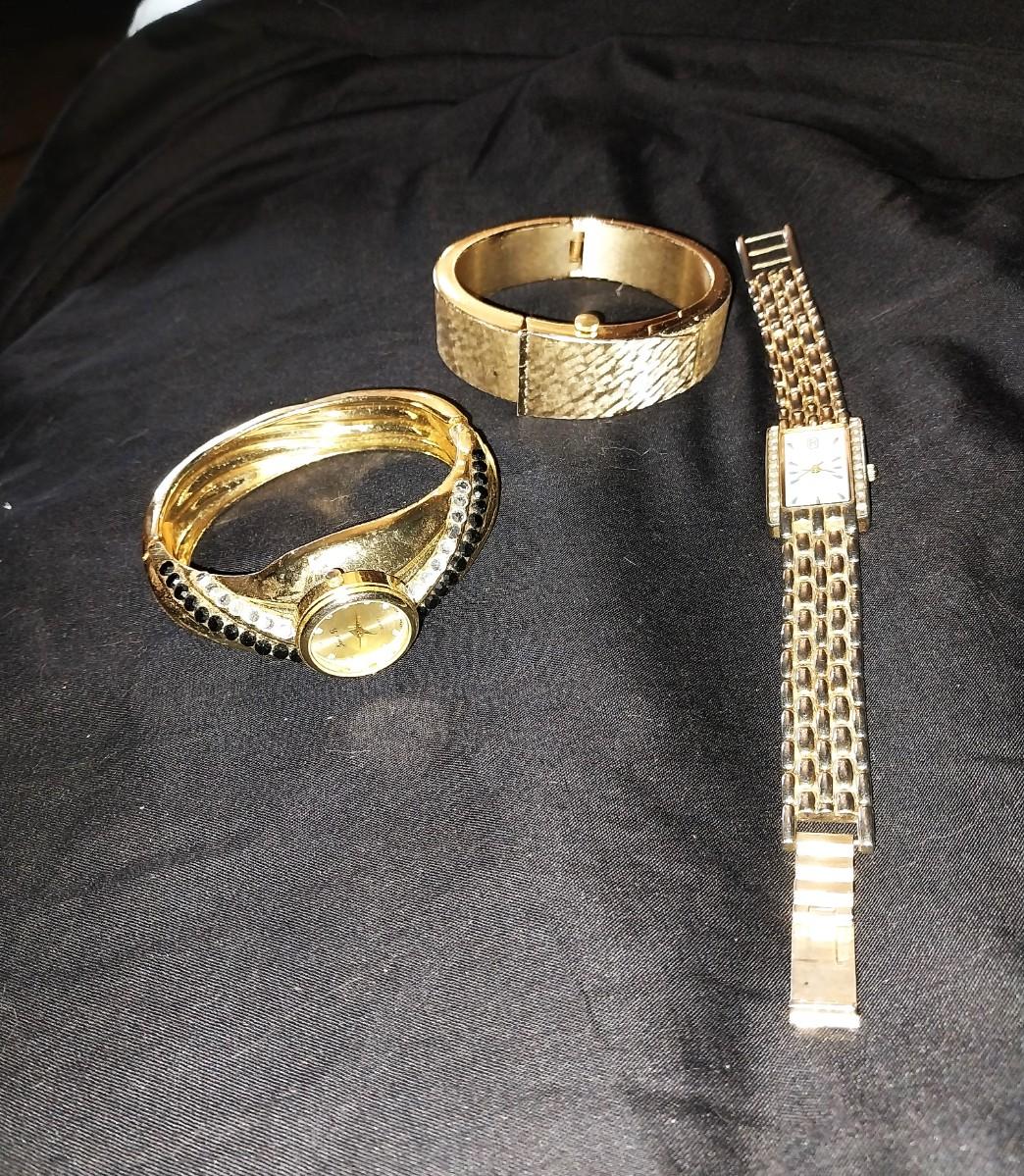 THREE LADIES GOLD TONE FASHION WATCHES