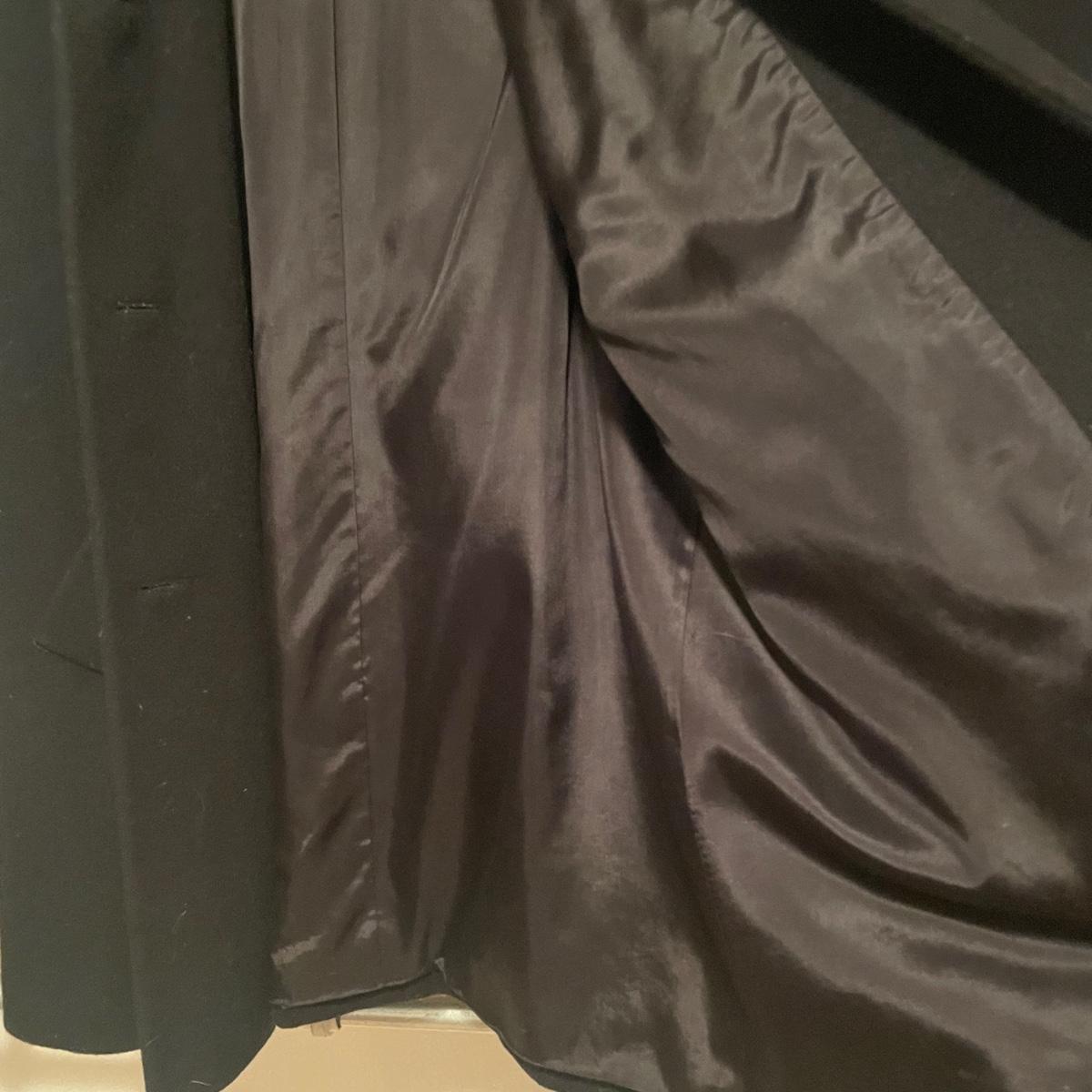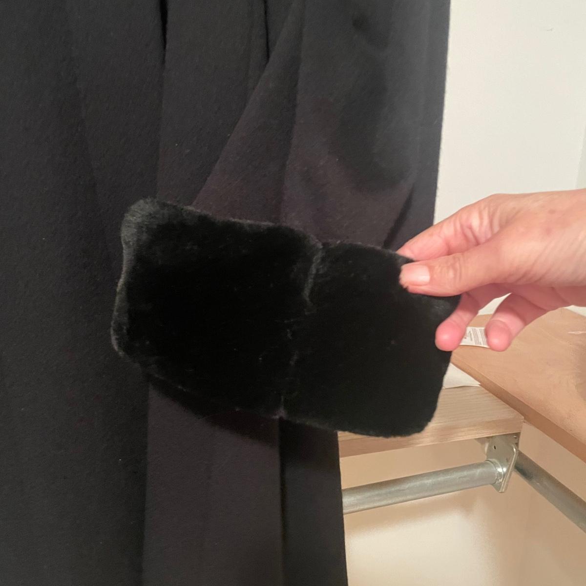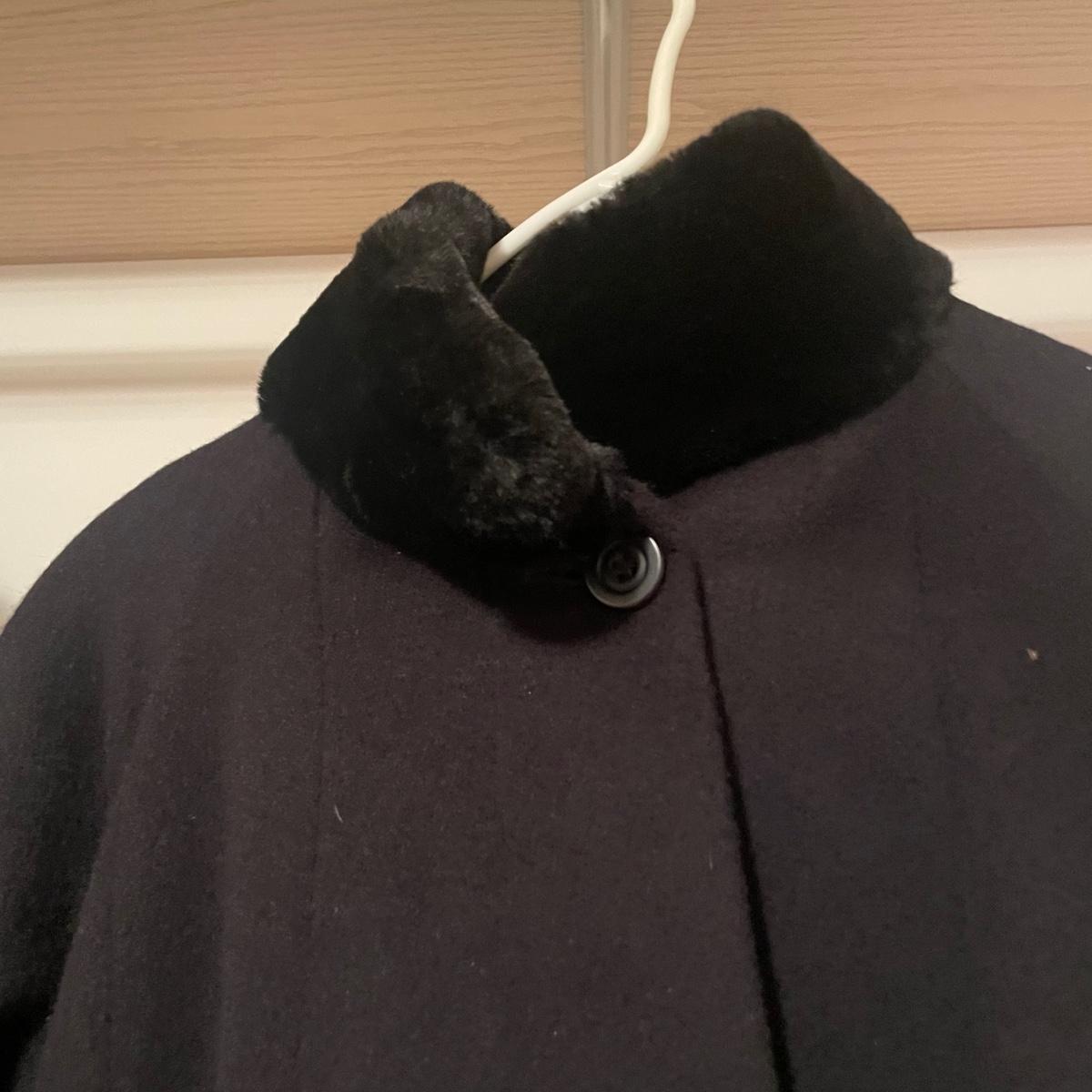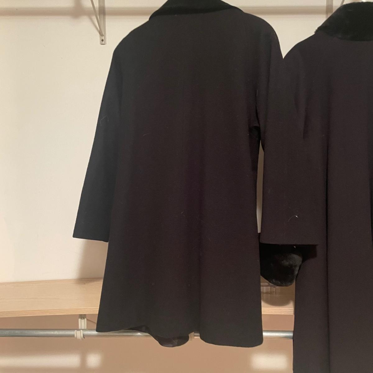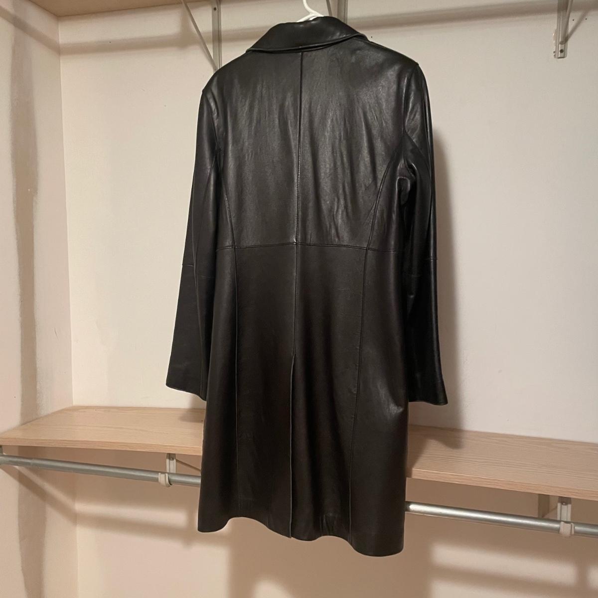 This black 100% leather jacket made by Express is size 13/14. It has a few light scratch marks shown in images. The Jones NY jacket is pure wool and measures 19” shoulder x 44”chest x 52” hips. The Steve & Searle jacket is size 8; it has no label to say what it is made of; it is wool or wool-like with faux fur cuffs and collar.