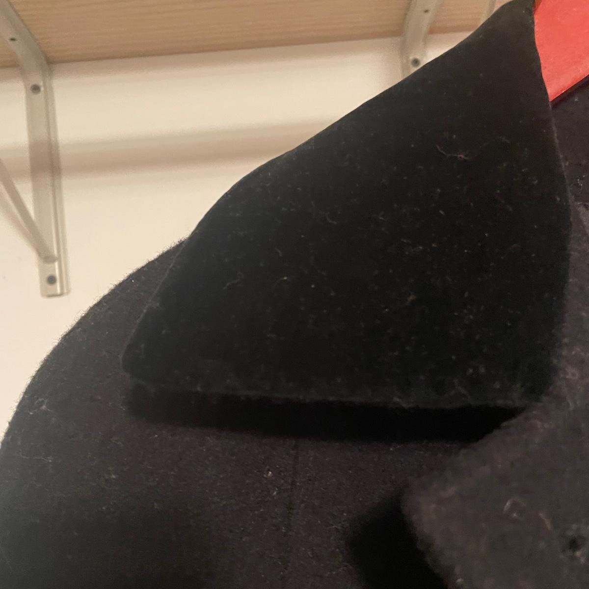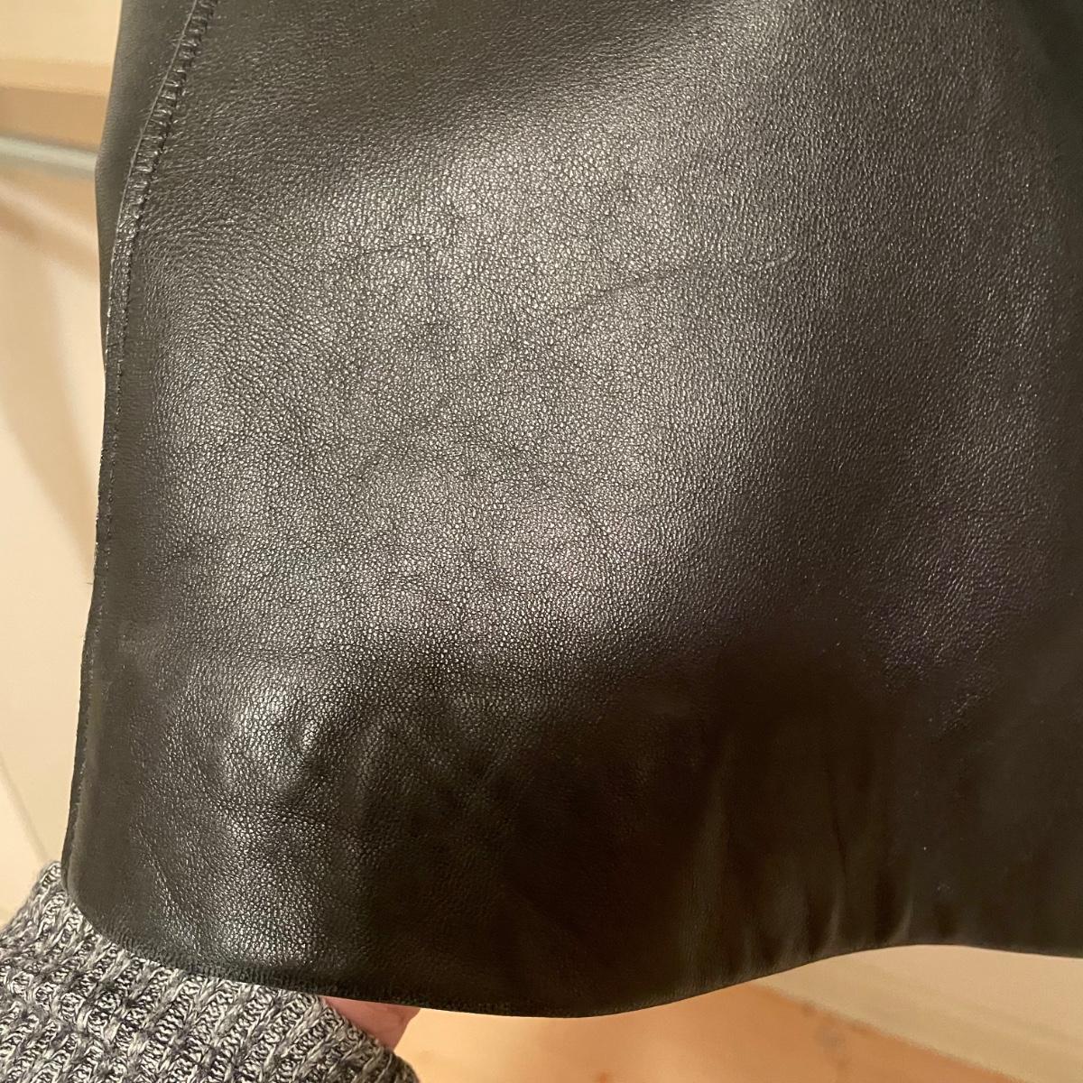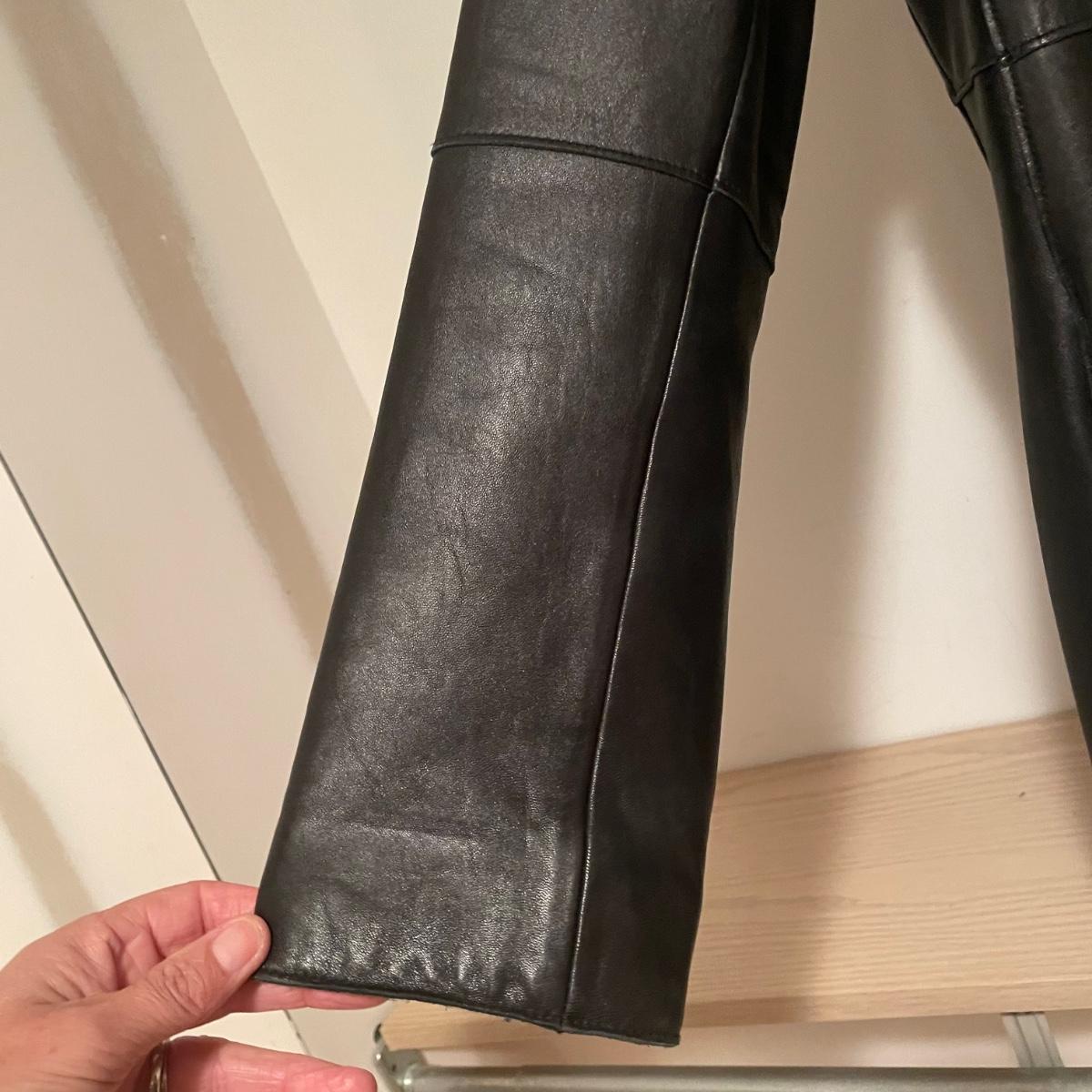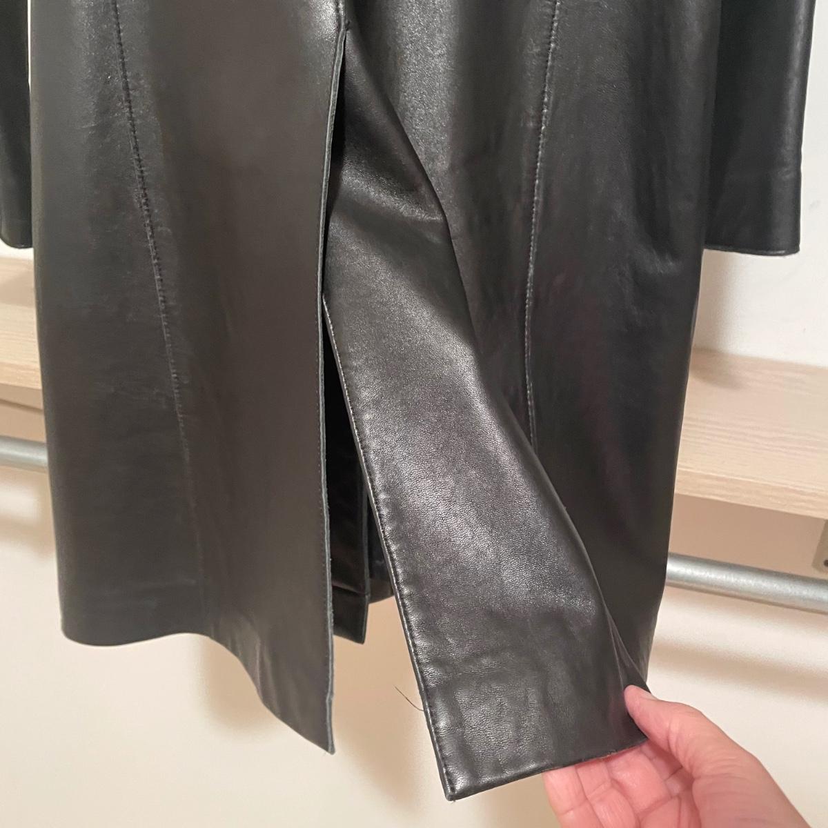 This black 100% leather jacket made by Express is size 13/14. It has a few light scratch marks shown in images. The Jones NY jacket is pure wool and measures 19” shoulder x 44”chest x 52” hips. The Steve & Searle jacket is size 8; it has no label to say what it is made of; it is wool or wool-like with faux fur cuffs and collar.