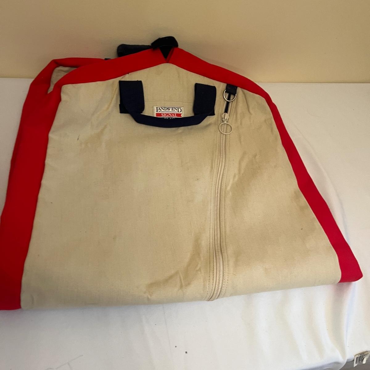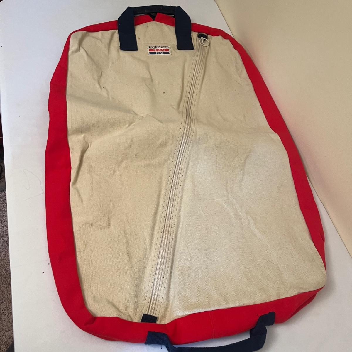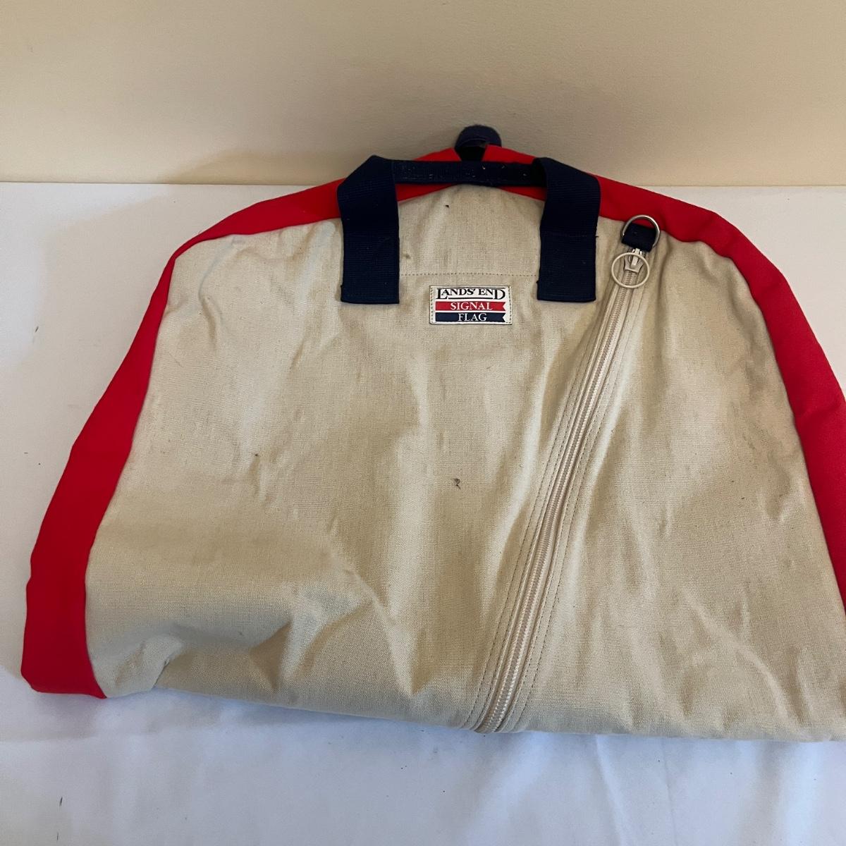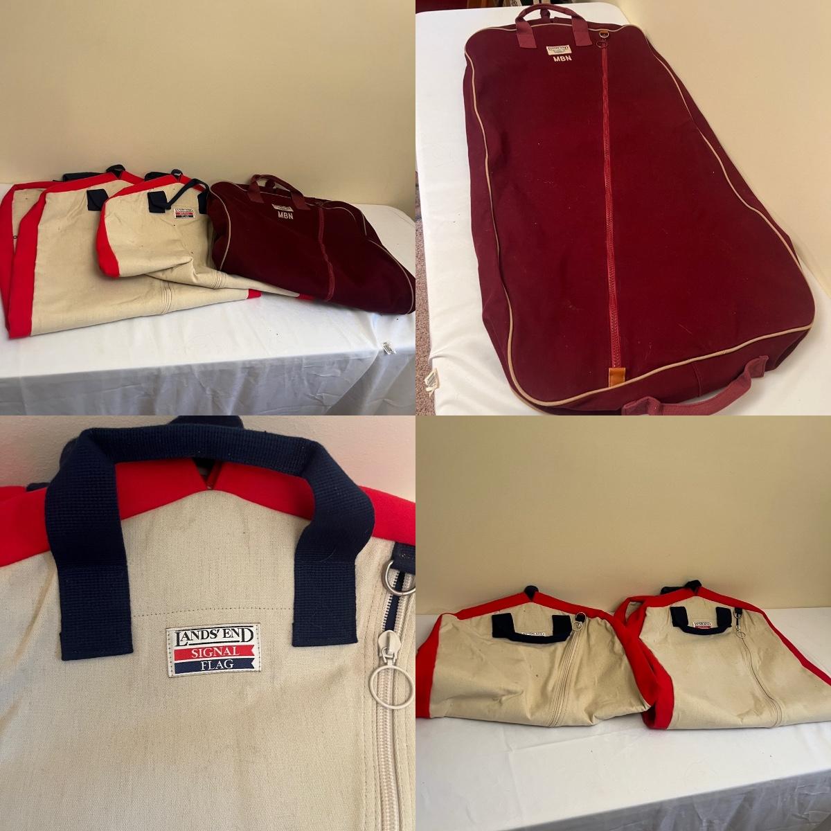 This trio of canvas Land’s End garment bags has two Signal Flag bags and one Square Rigger bag. Largest bags measure 24” x 5” x 48”H. One bag has spotting, see pictures.