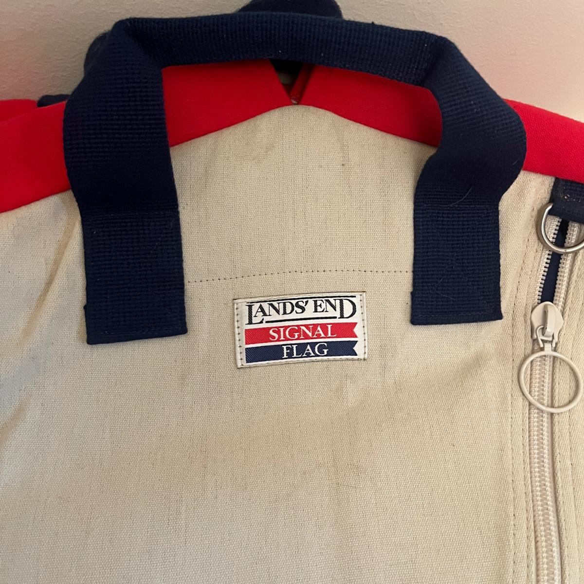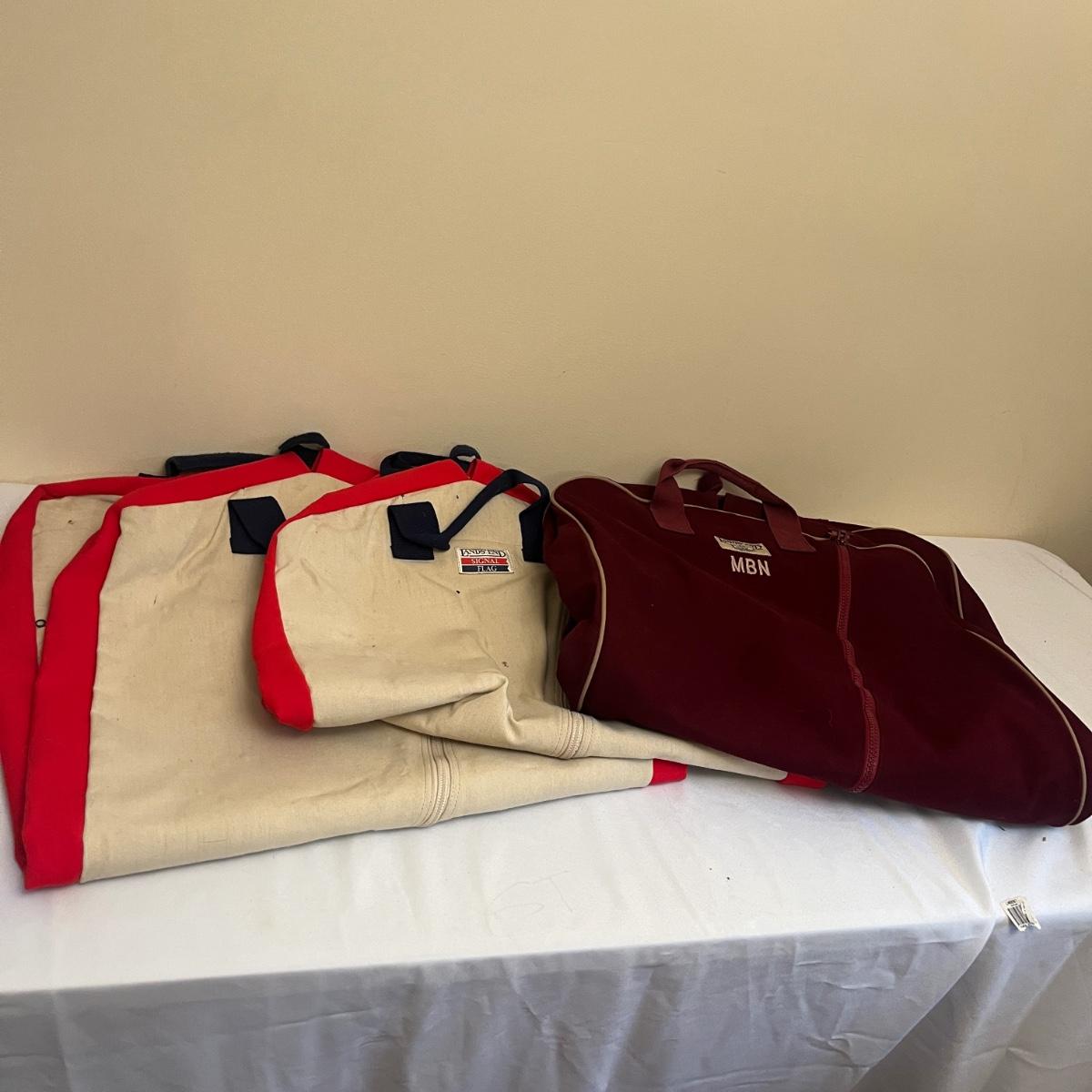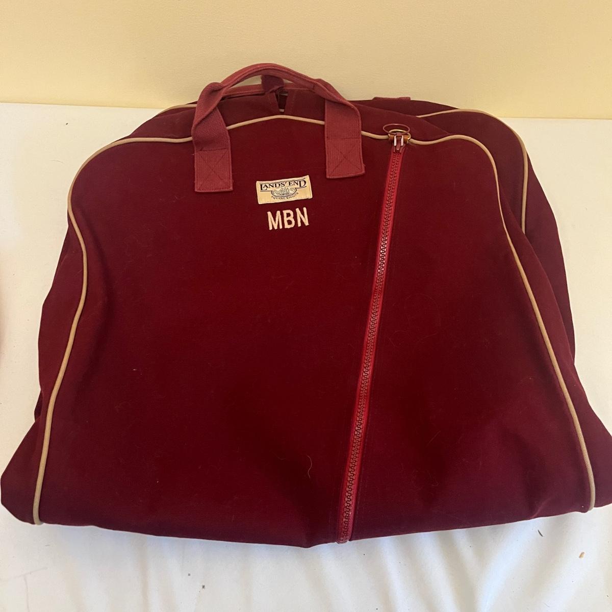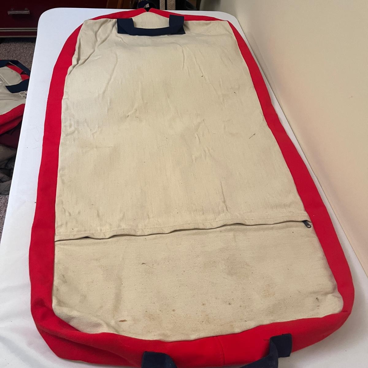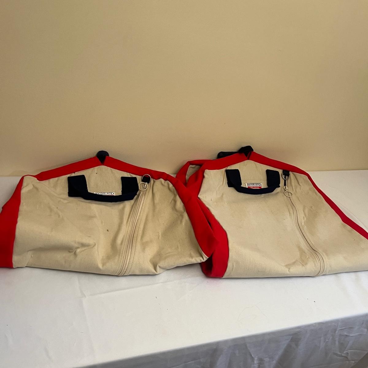 This trio of canvas Land’s End garment bags has two Signal Flag bags and one Square Rigger bag. Largest bags measure 24” x 5” x 48”H. One bag has spotting, see pictures.
