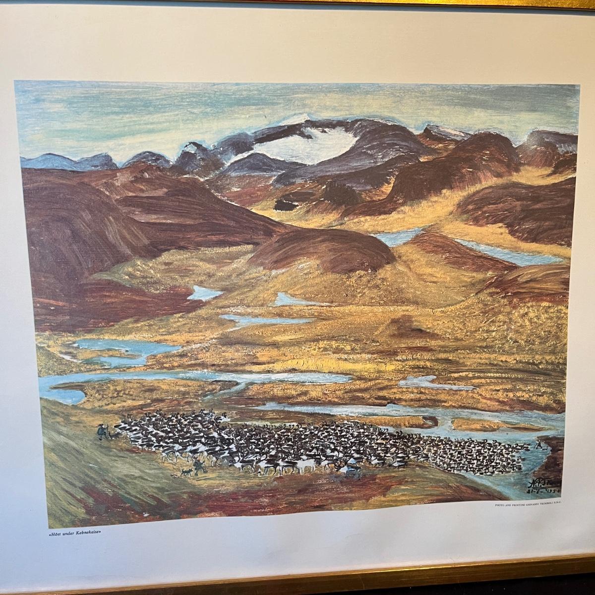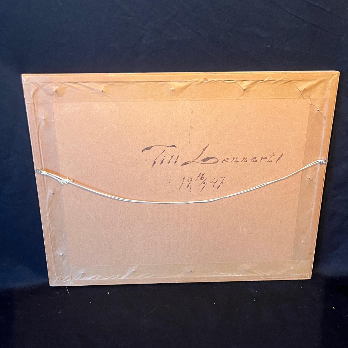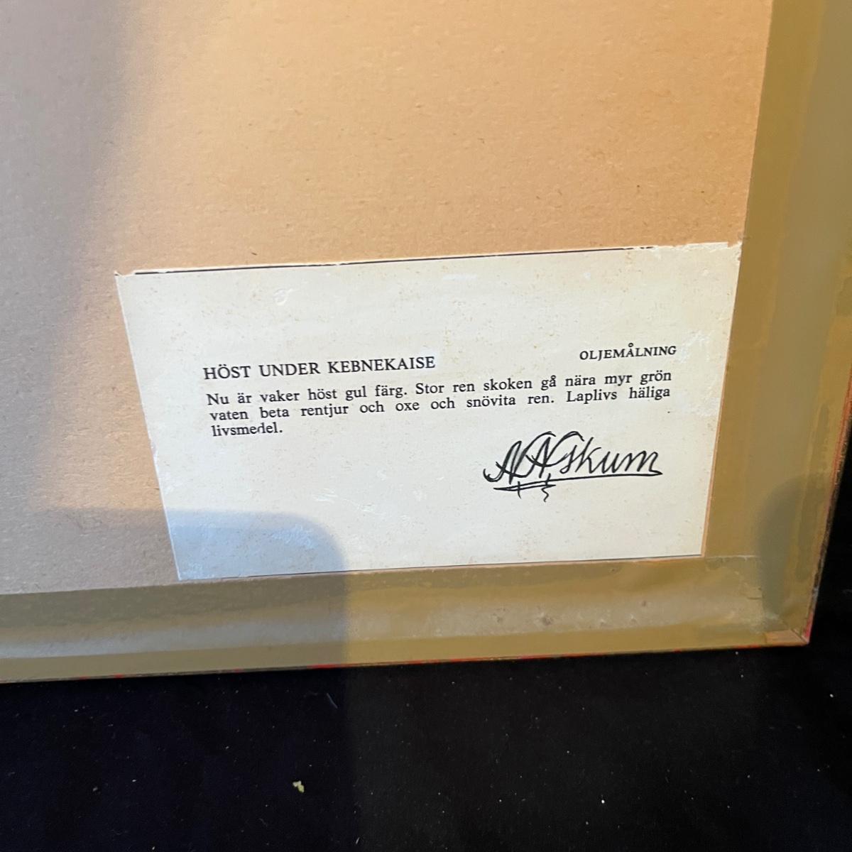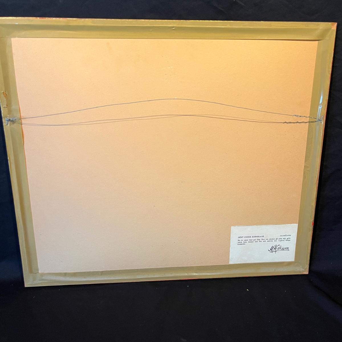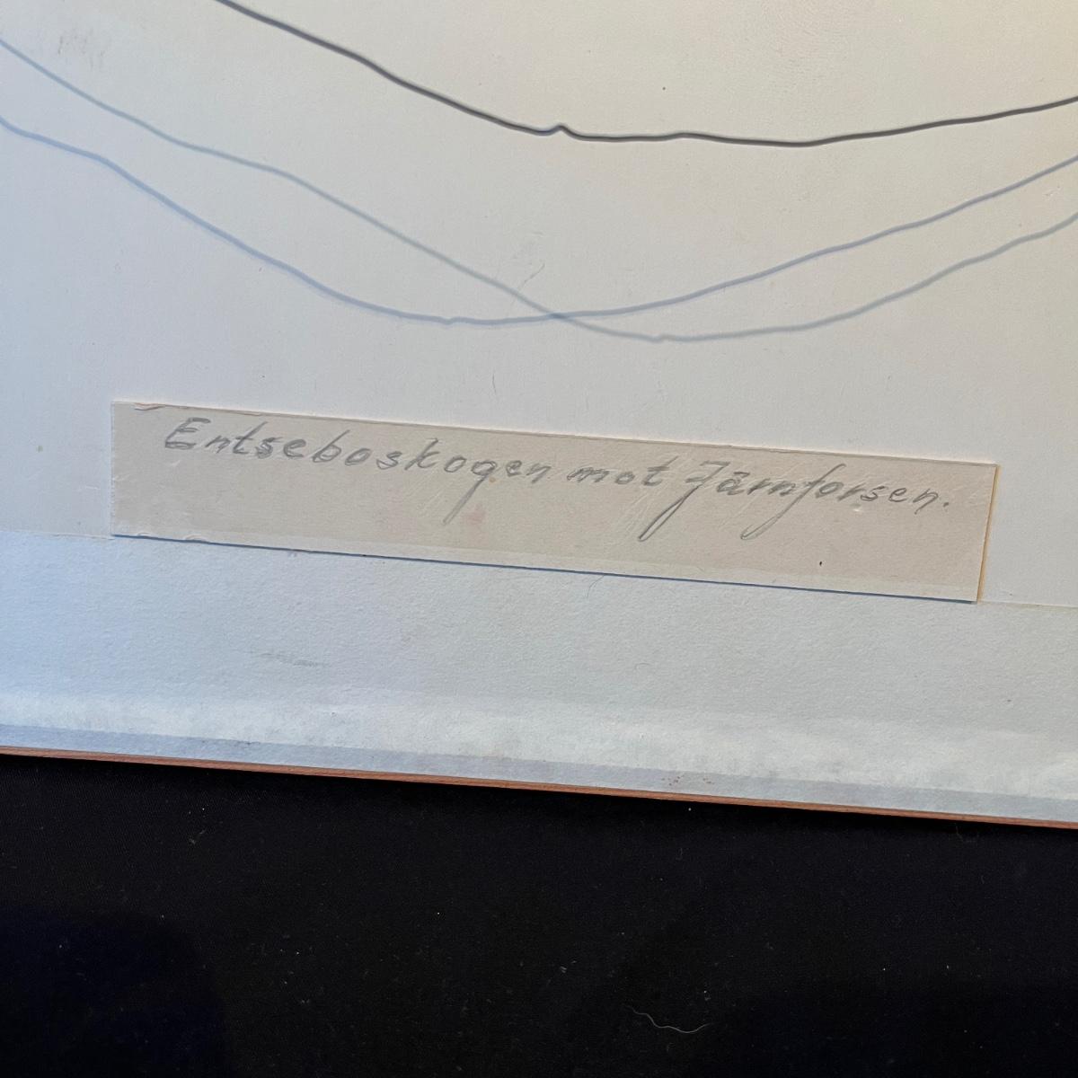Lot includes a metal framed print, metal framed and pencil signed painting, and a wooden framed pencil signed art that appears to be an etching. Language seems to be Swedish. Largest frame measures 20” x 17”H.