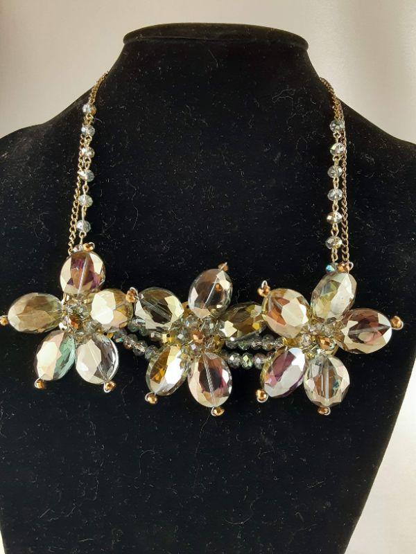 Three Large Flower Crystals Necklace