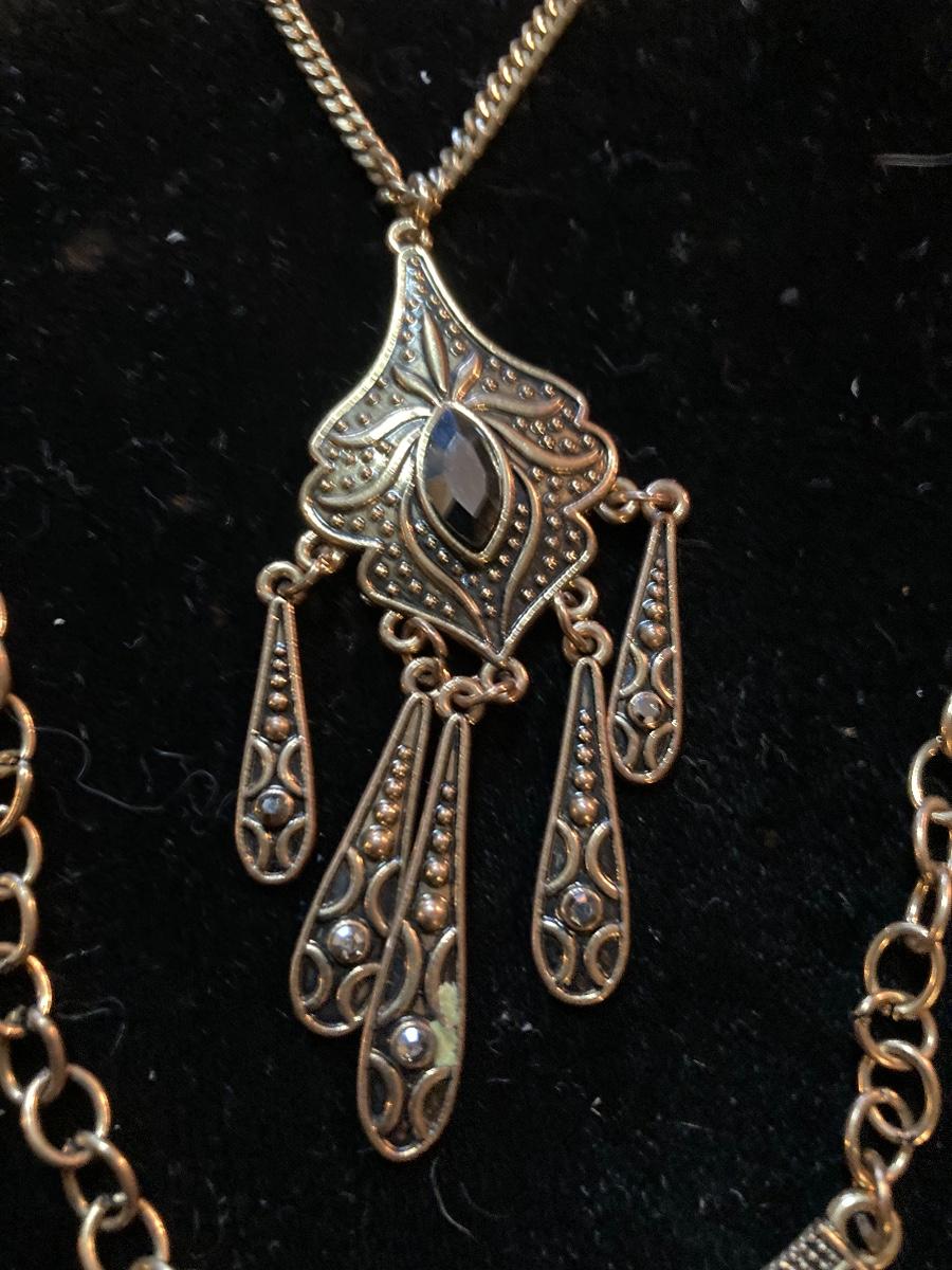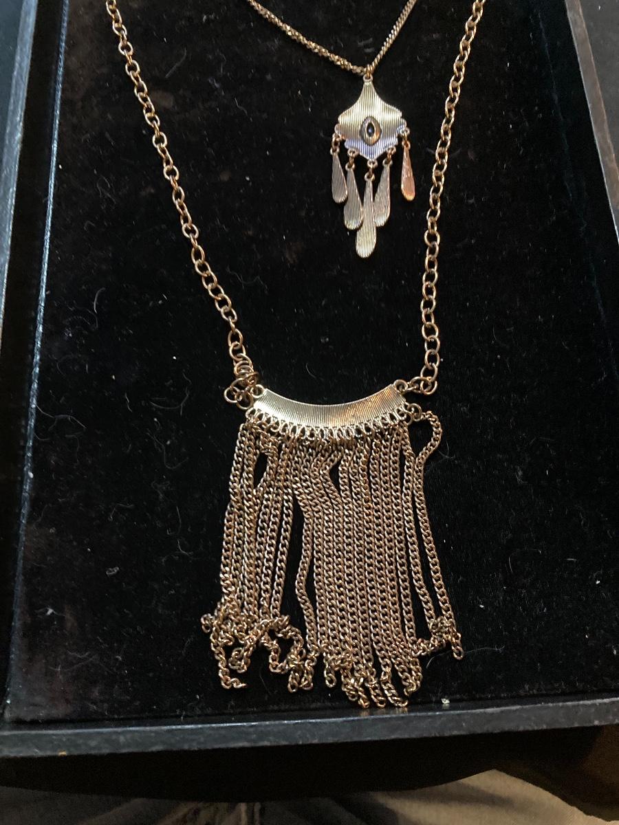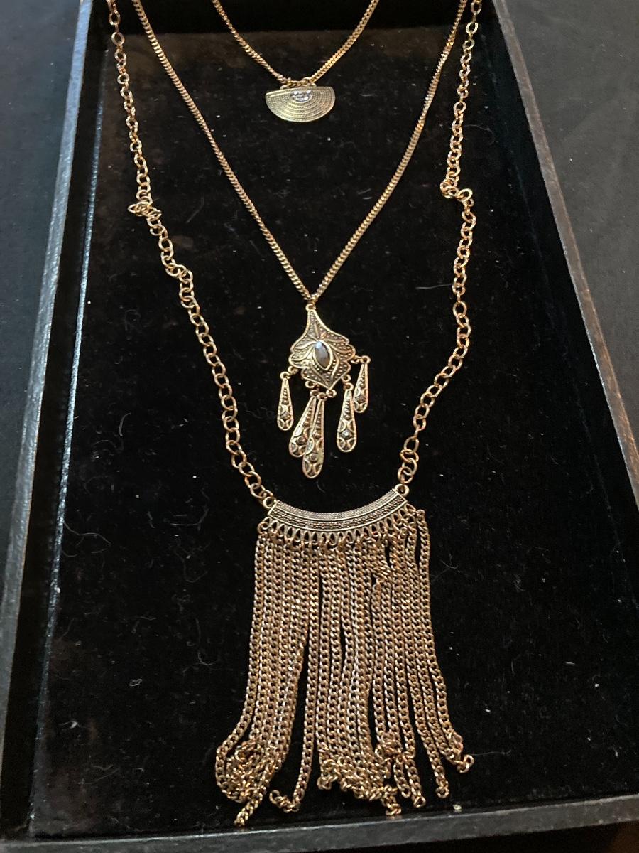 Three Large Gold Chain Necklaces with Mesh Purse Style and more...