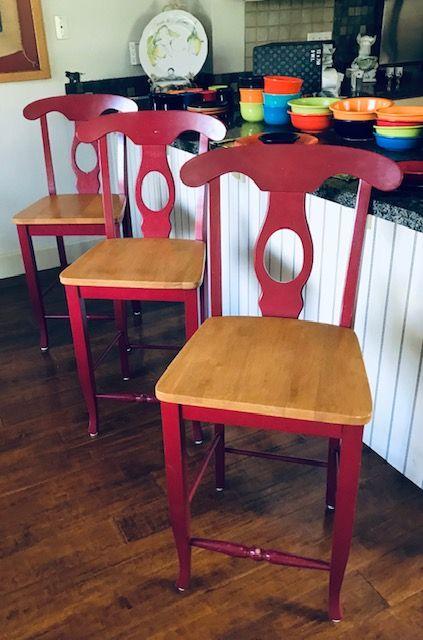 Three Large Red Bar Chairs. Local pick up only in Auburn, CA.
