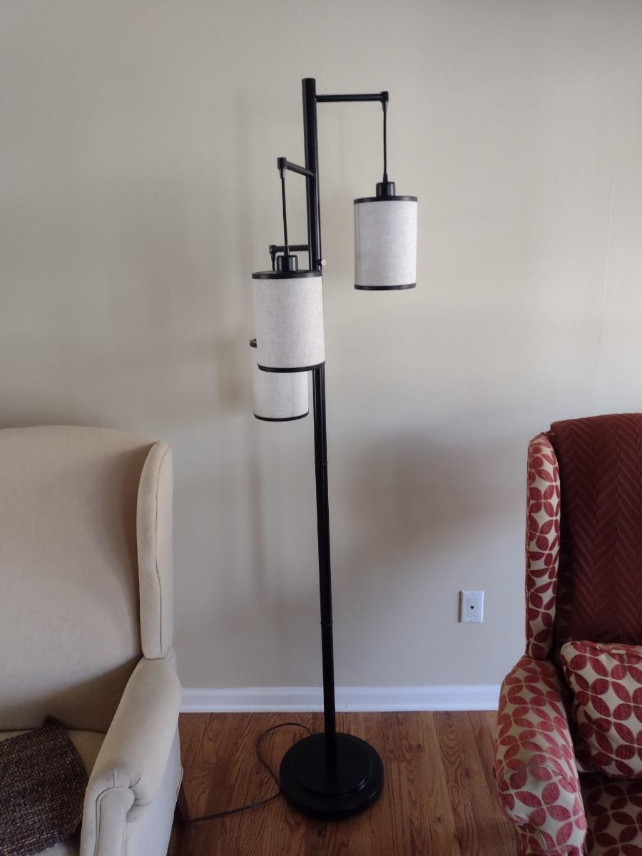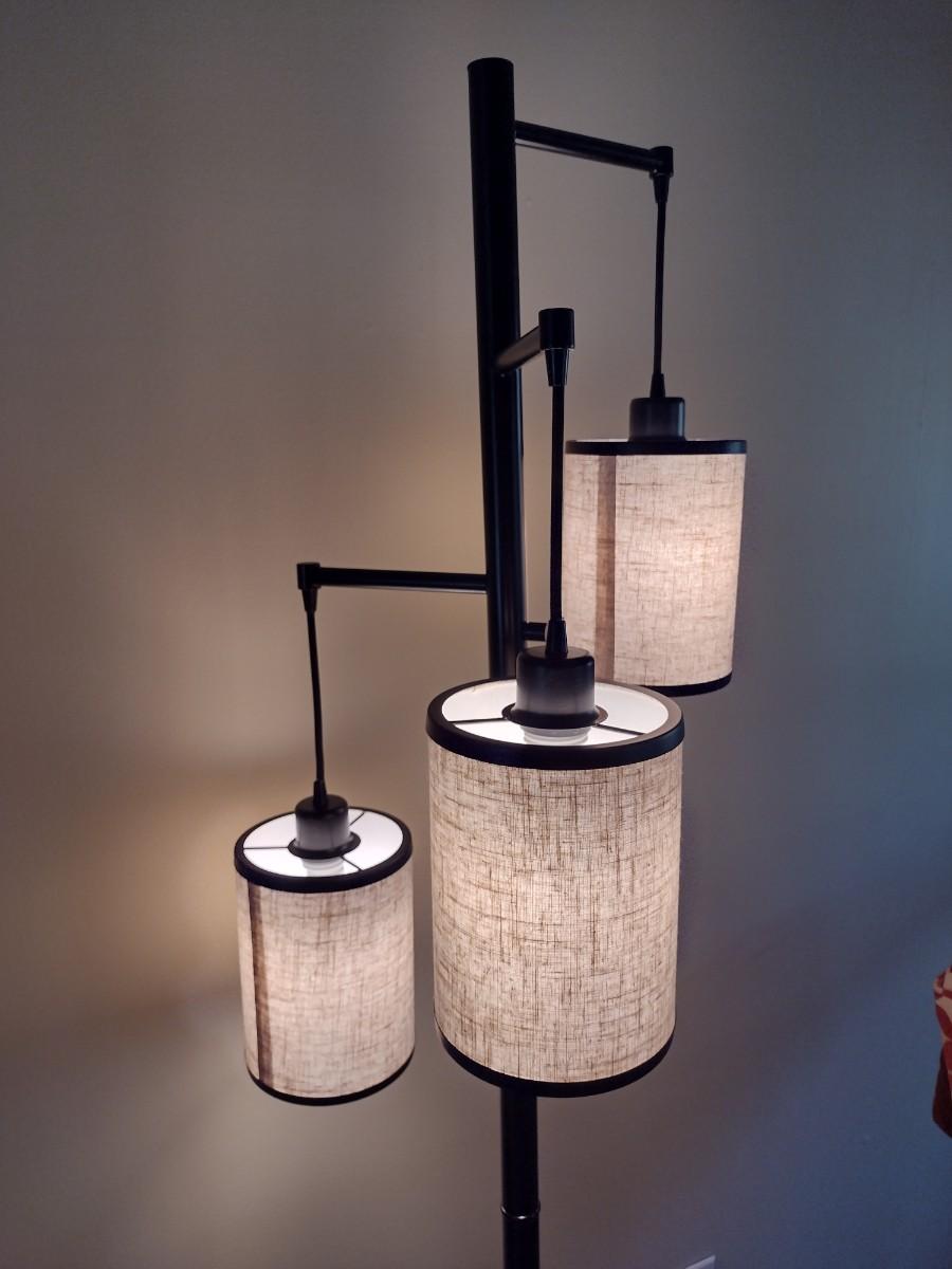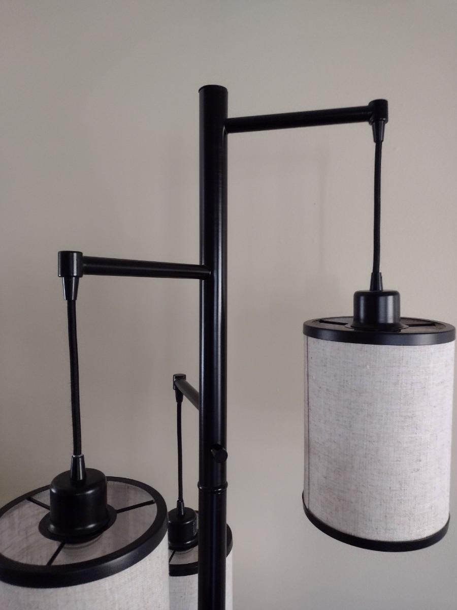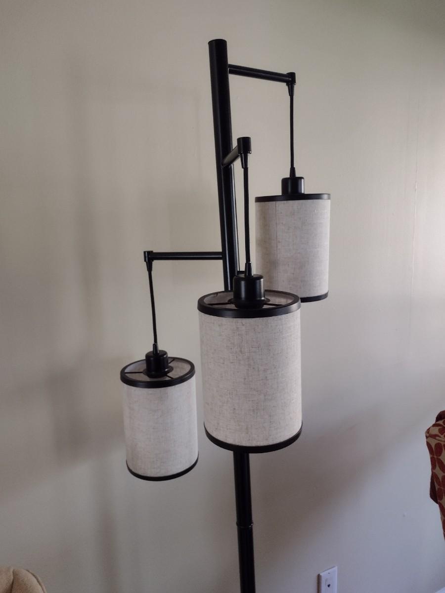 Three Light Lantern Design Floor Lamp with Metal Post and Arms and Fabric Finish Shades Choice A
