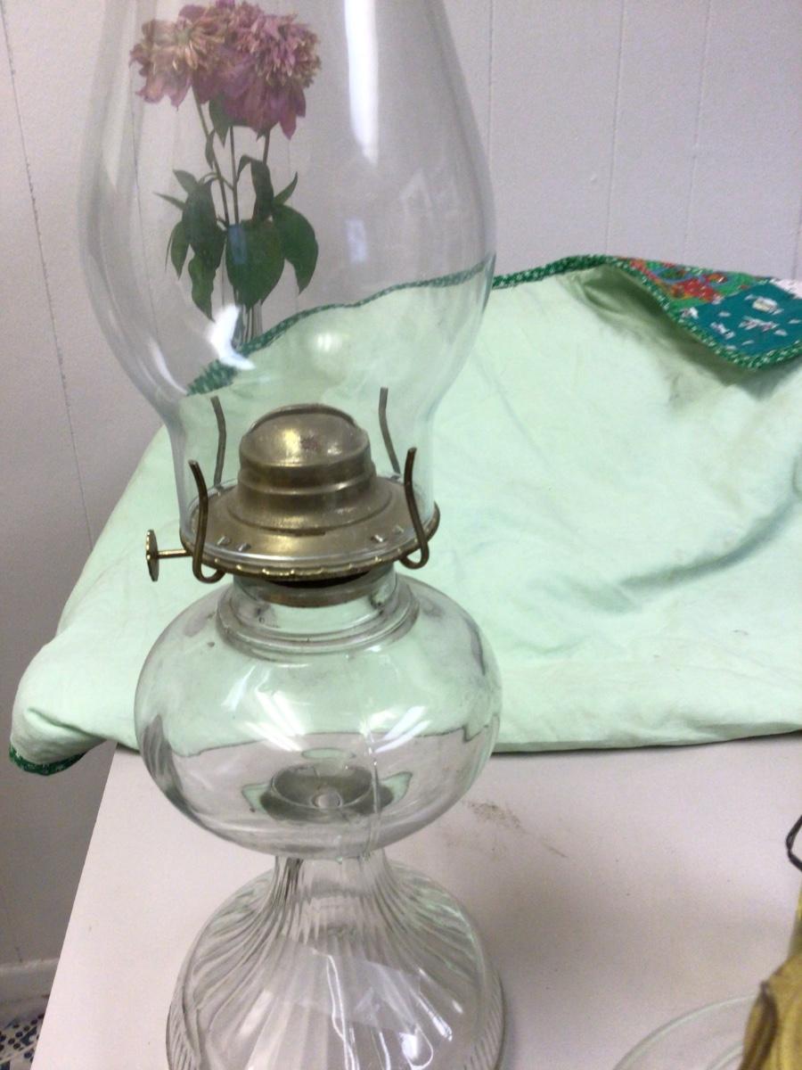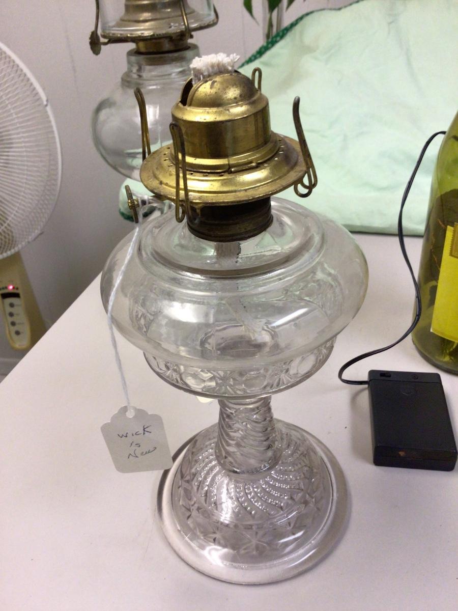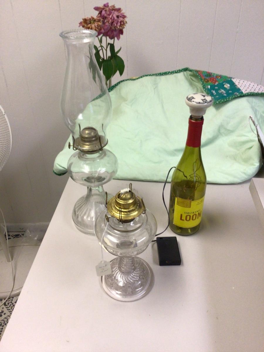 You get clear glass oil lamp, another oil lamp with no shade and bottle with fiber optic lights inside.