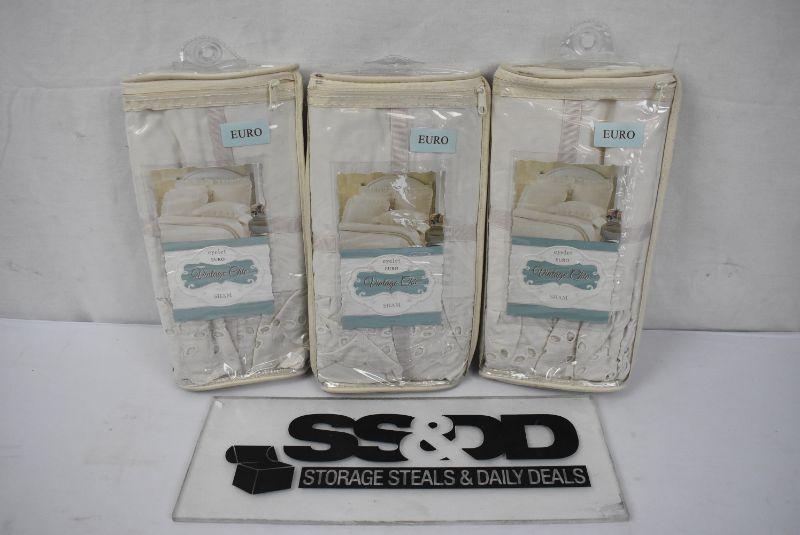 Three Matching Suro Shams by Fresh Ideas Ruffles Eyelet Collection. 26x26 Ivory - New