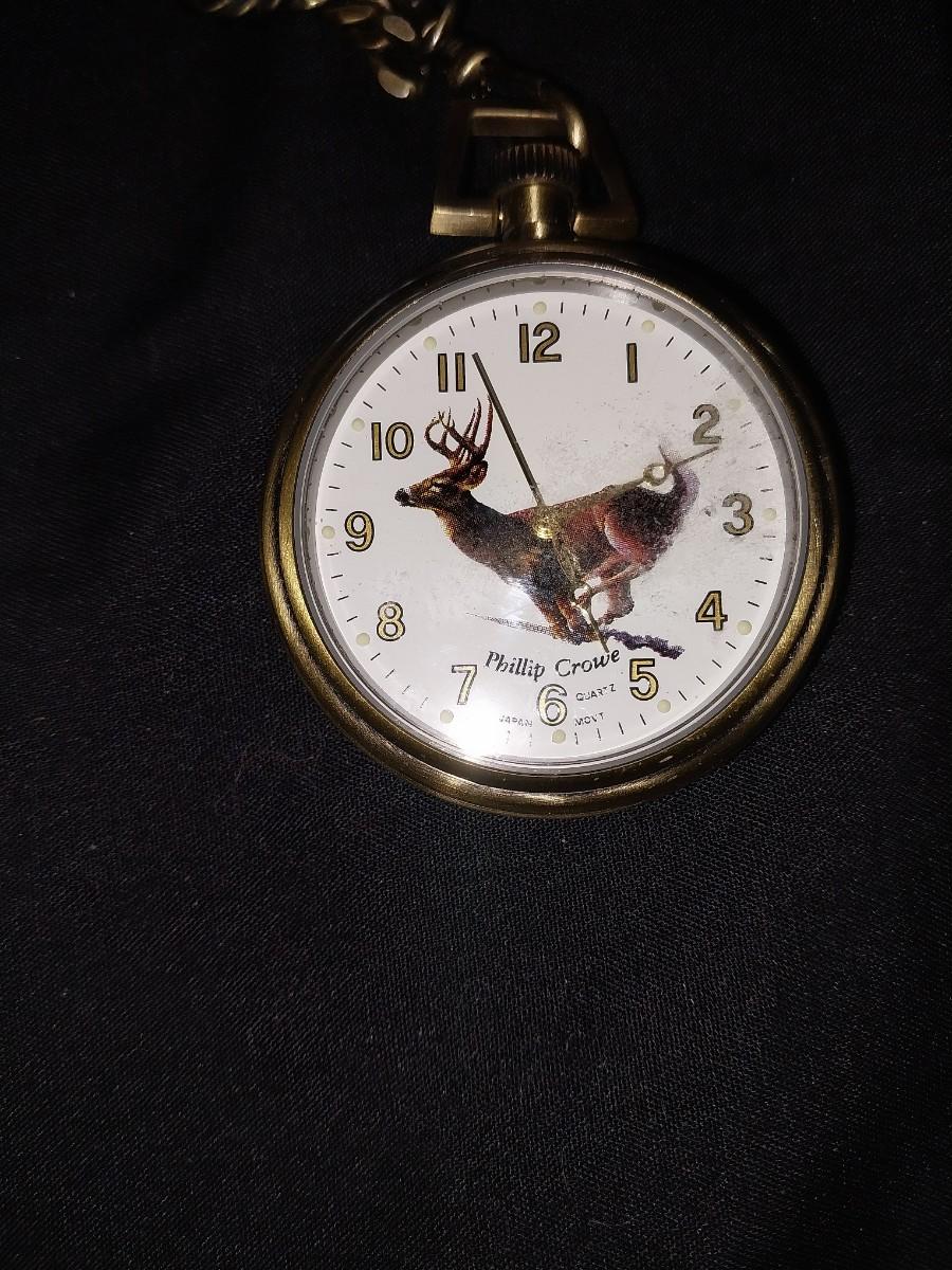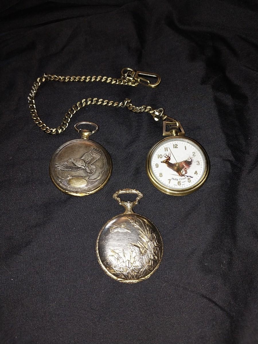 THREE MENS POCKET WATCHES FEATURING EAGLE-GEESE-AND PHILLIP CROWE WITH DEER