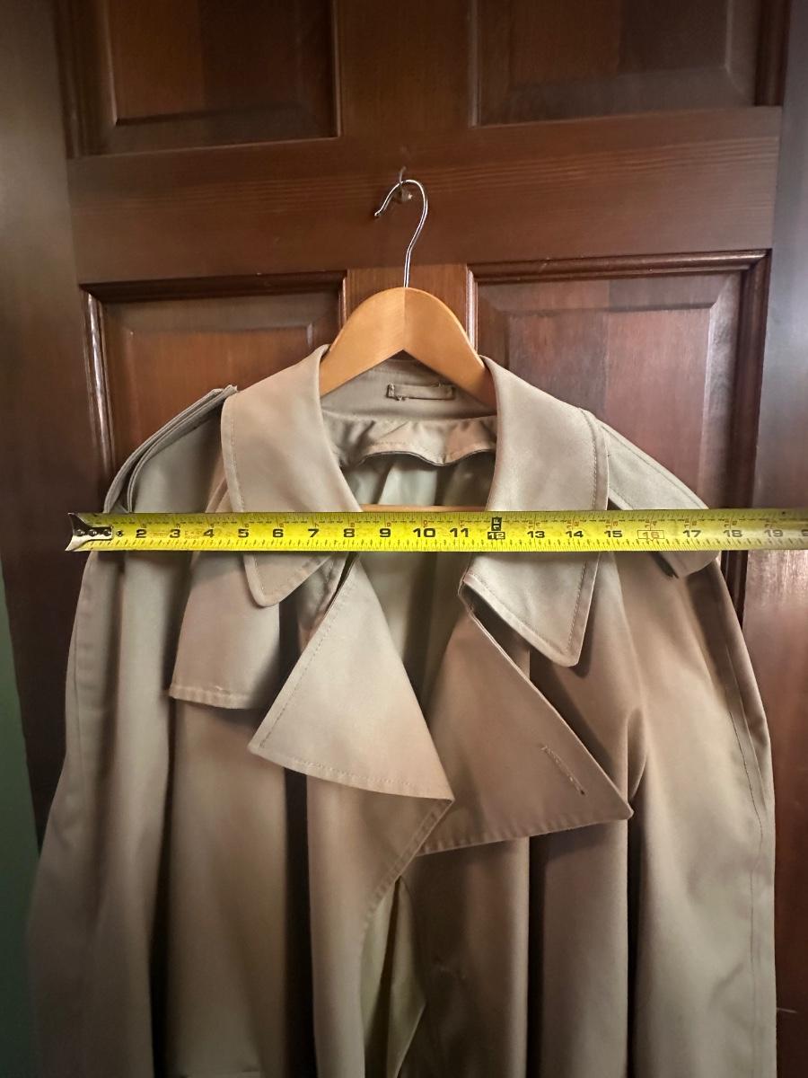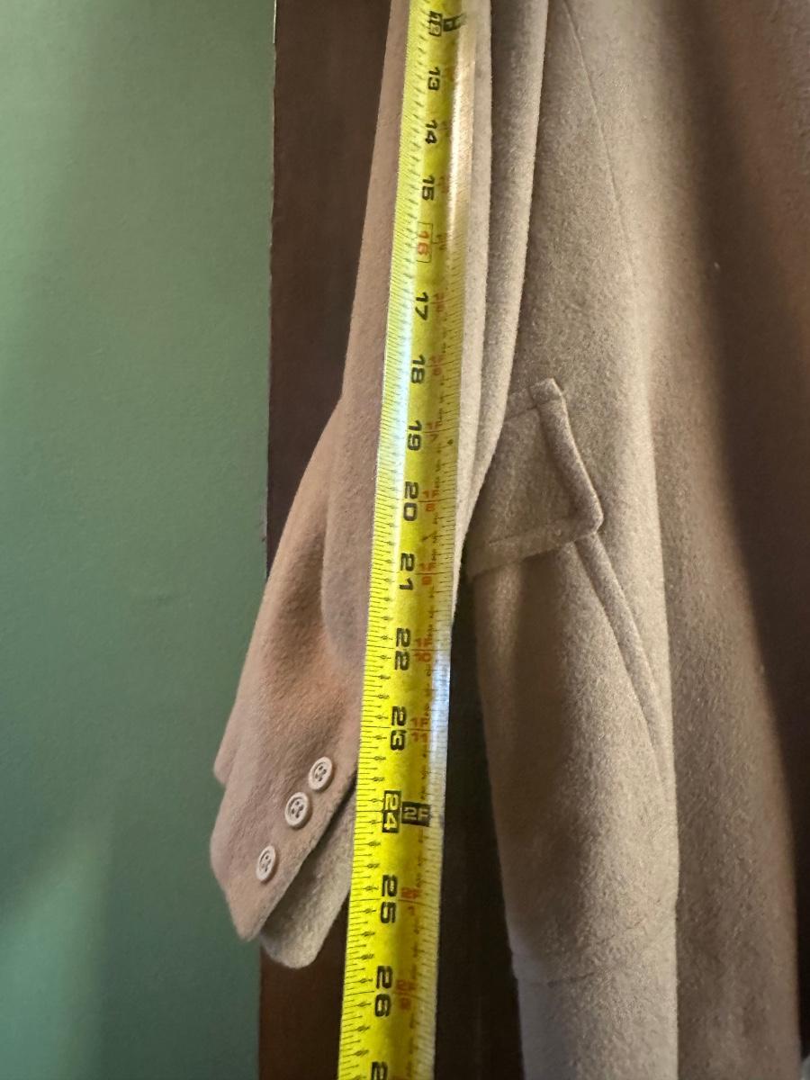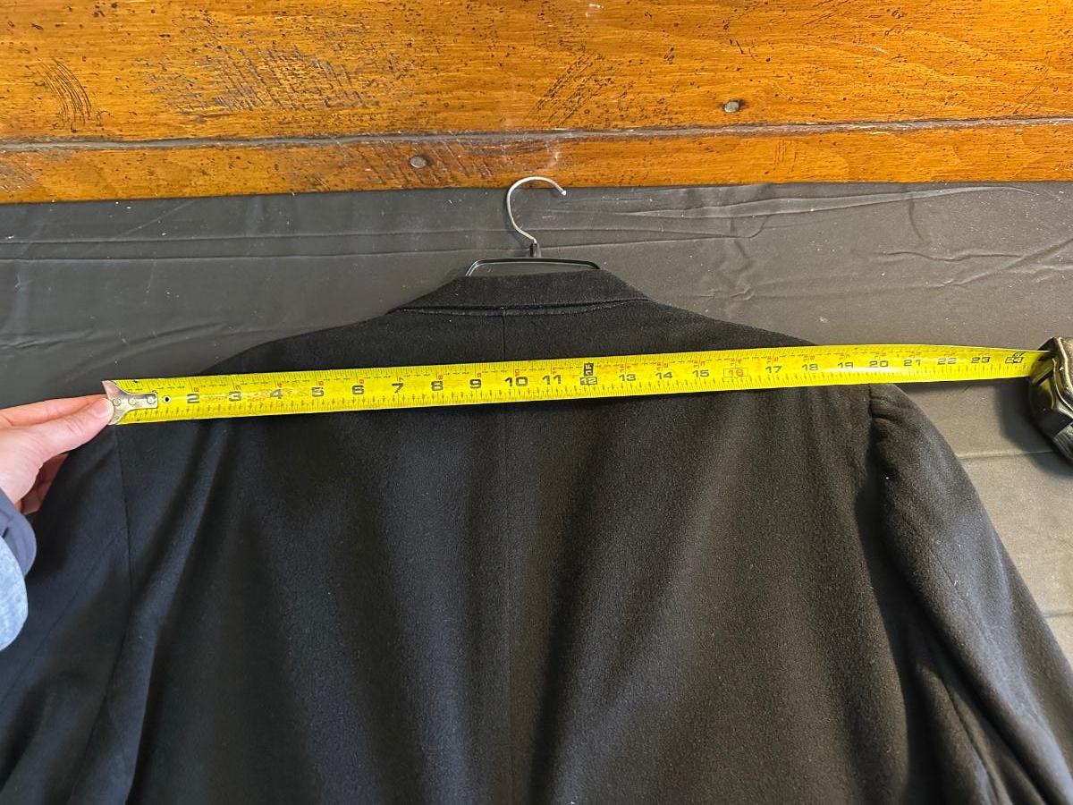 Includes one trench coat / Black coat is marked as Pure Cashmere. Please see photos for measurements. Sleeve measurements are from the top of the sleeve.