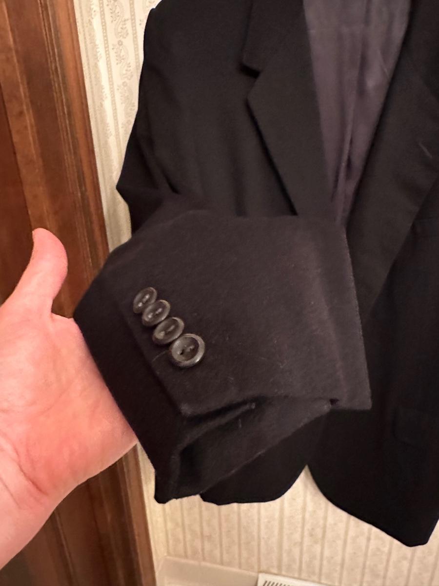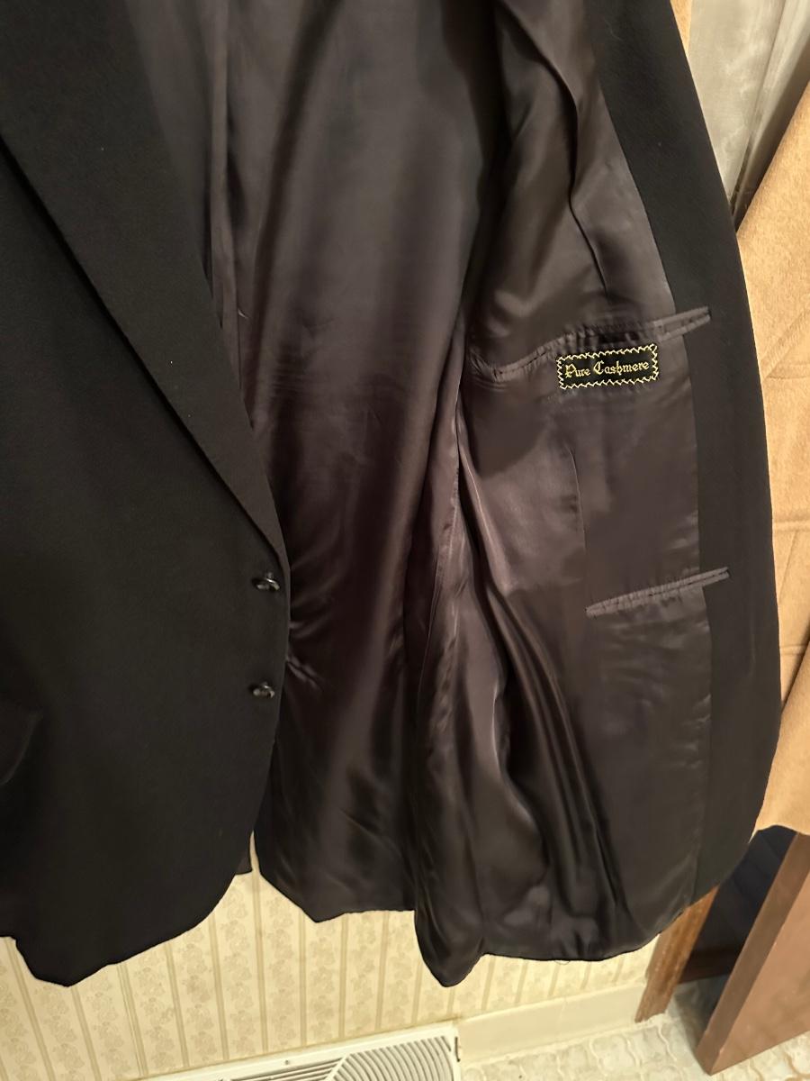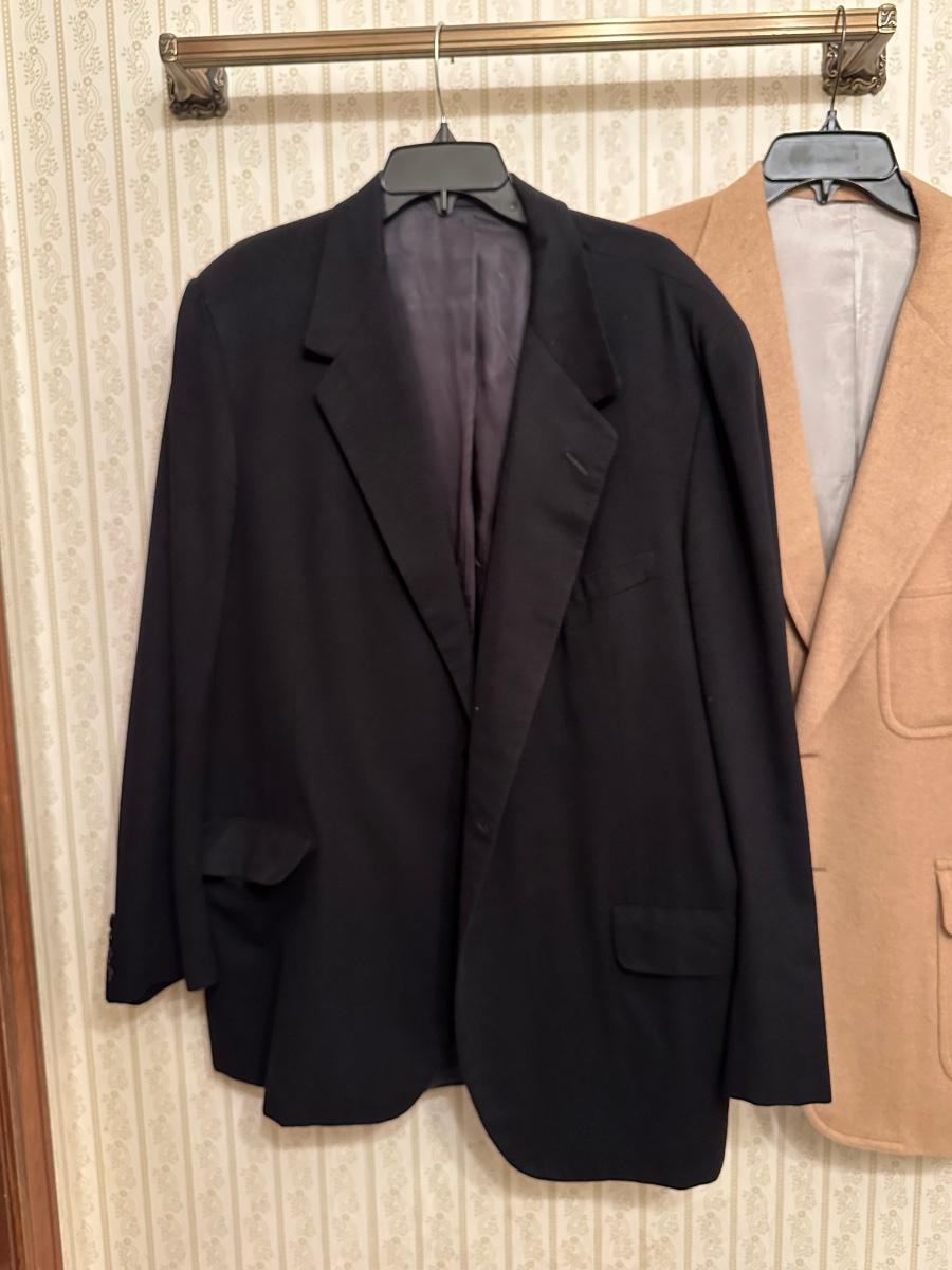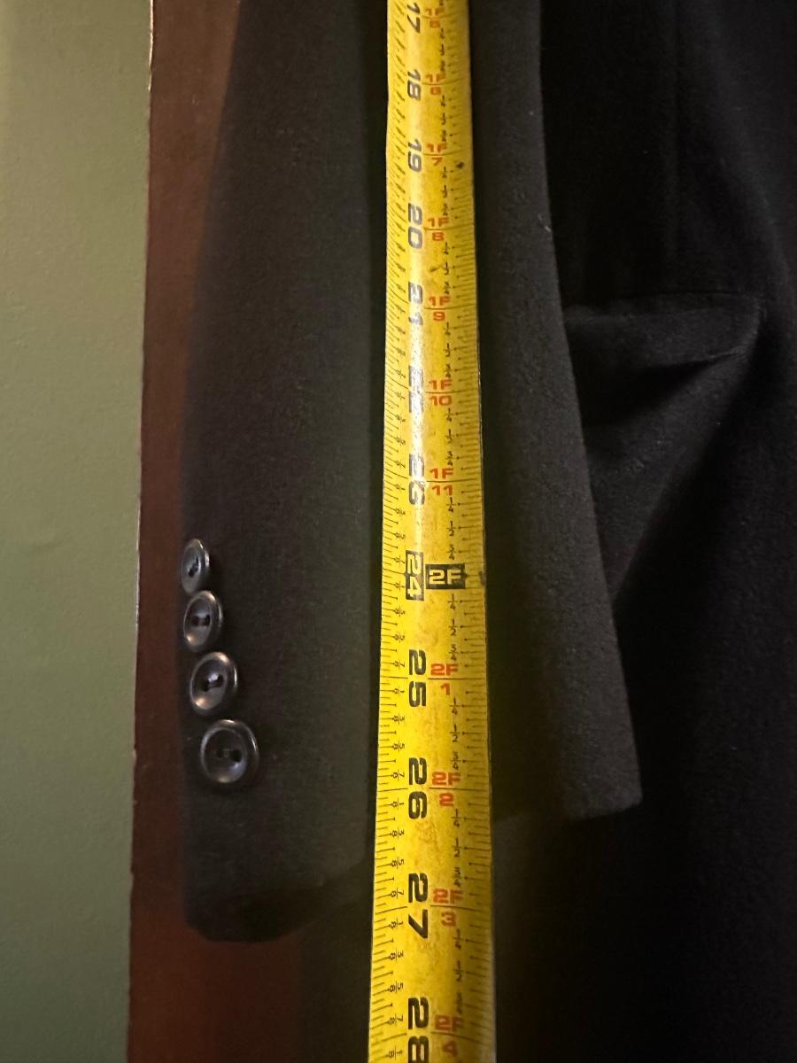 Includes one trench coat / Black coat is marked as Pure Cashmere. Please see photos for measurements. Sleeve measurements are from the top of the sleeve.