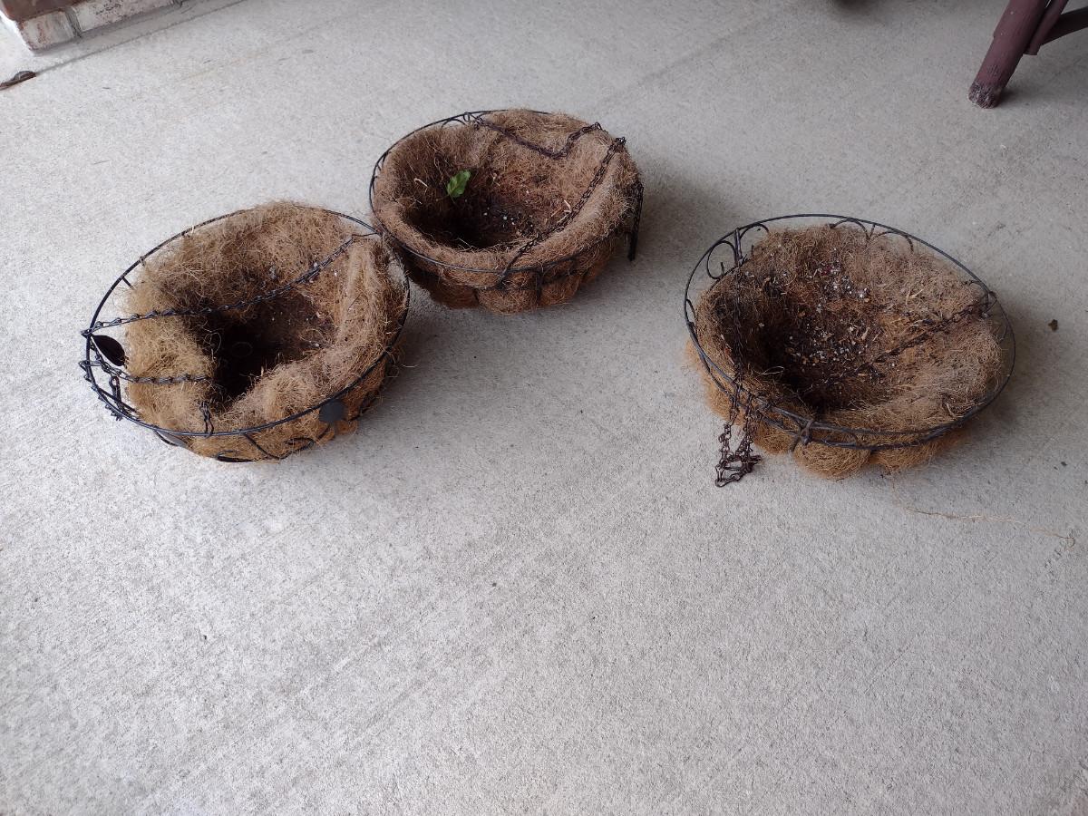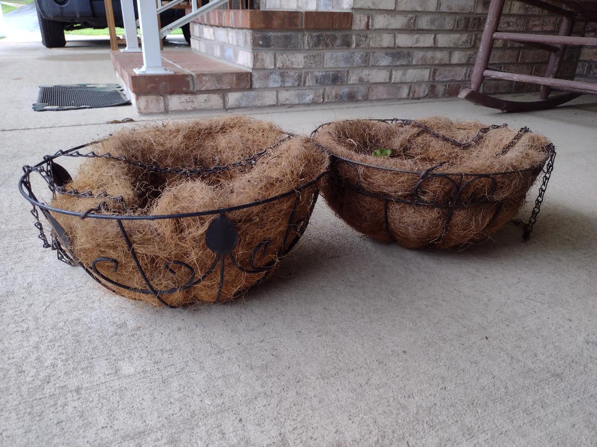 Three Metal Hanging Baskets with Coco Fiber Liners- Approx 14" in Diameter