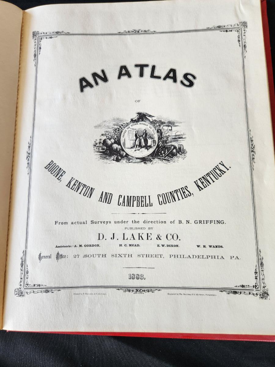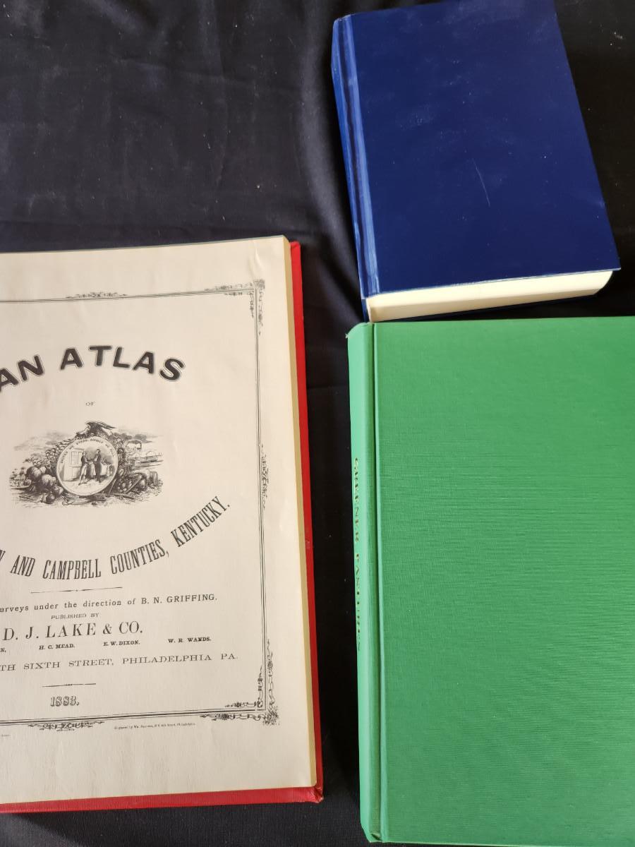 This auction lot is for Three MIscellaneous Genealogy Books. One is a reproduction vintage Atlas of Kenton and Campbell Counties of Kentucky. See photos for titles and contents of the other books in this offering.
