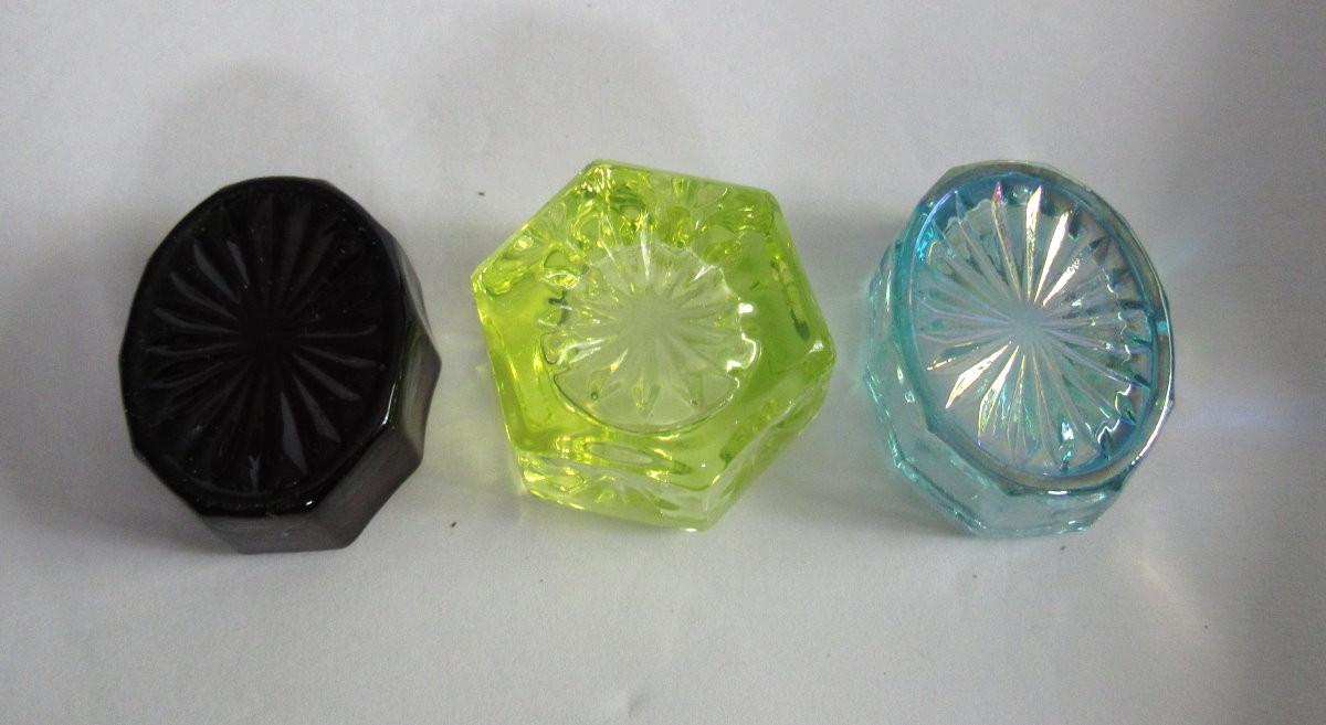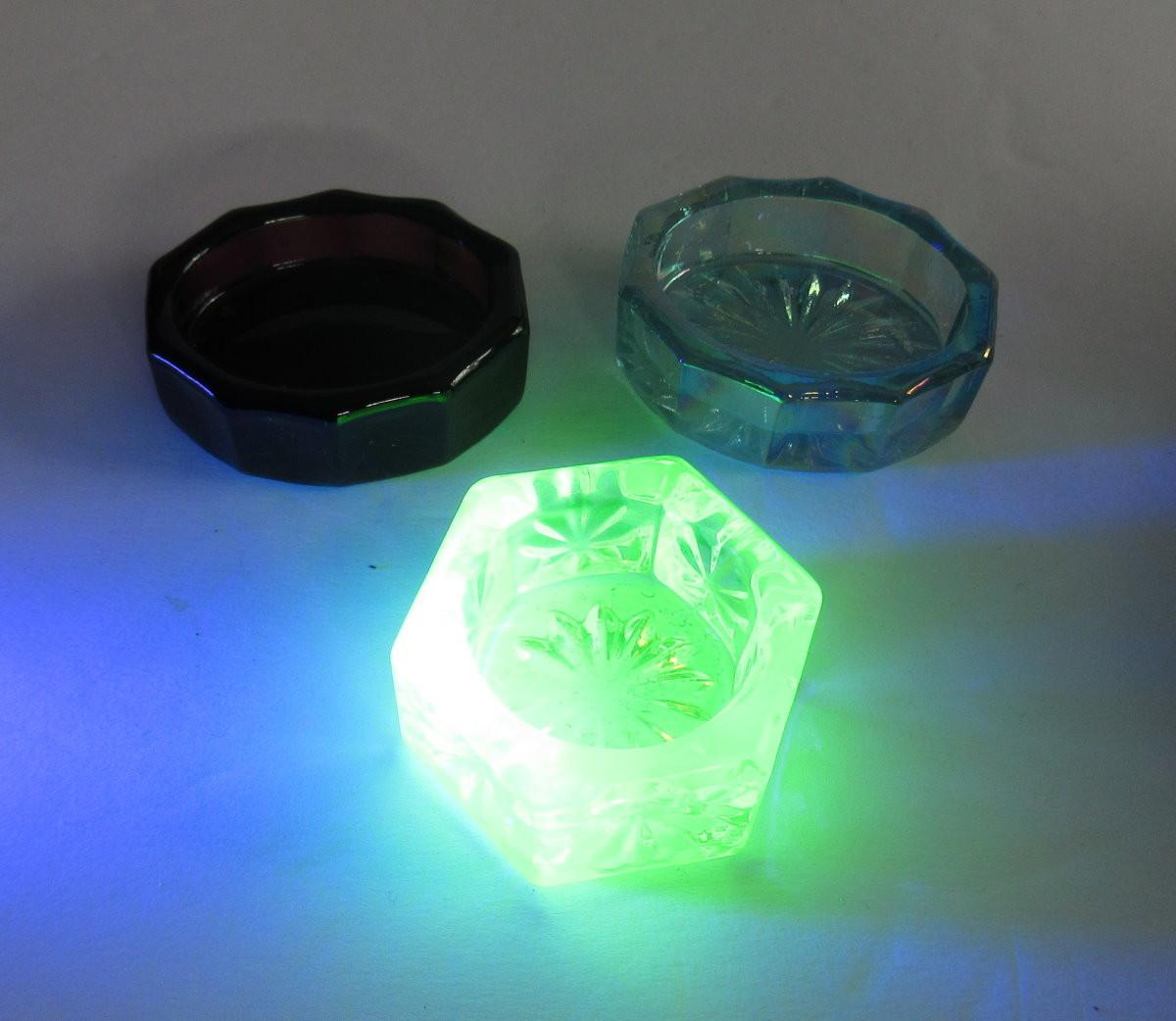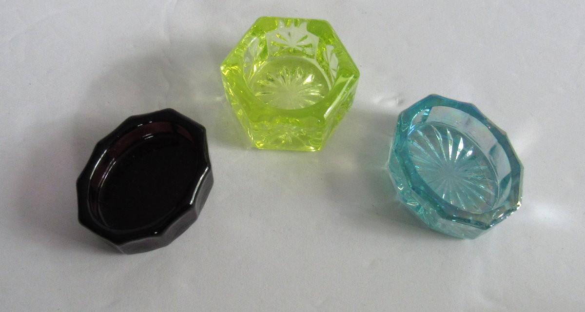 Three Mosser Glass Salt Dips, Vaseline Glows