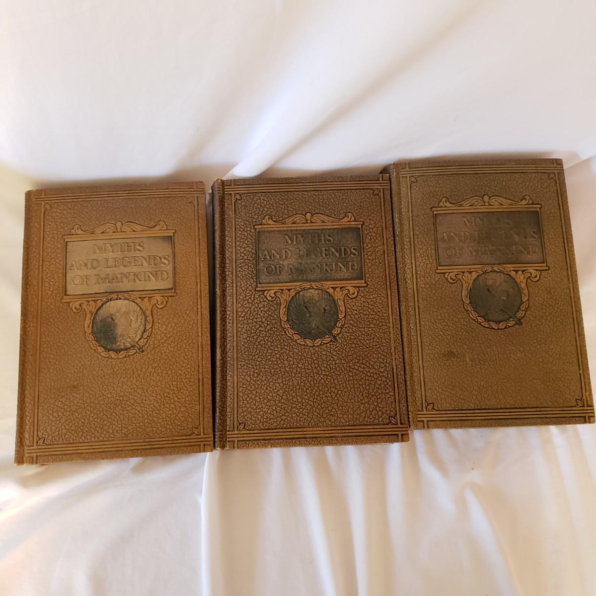 This three-book lot contains Myths and Legends of Mankind. The books appear to have strong bindings for their age. See pictures for copyright and titles.