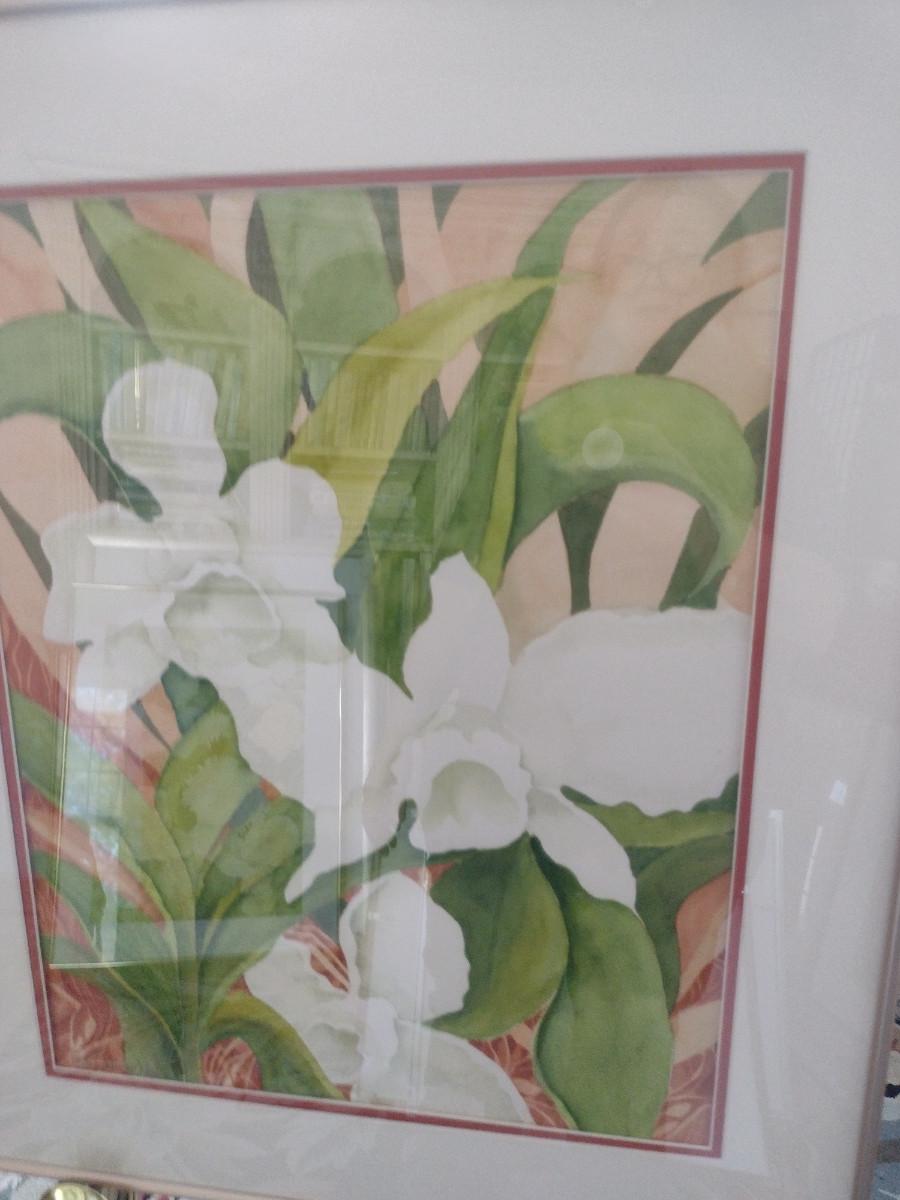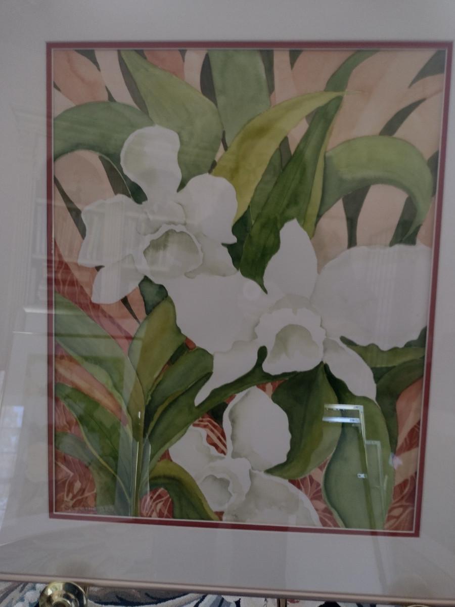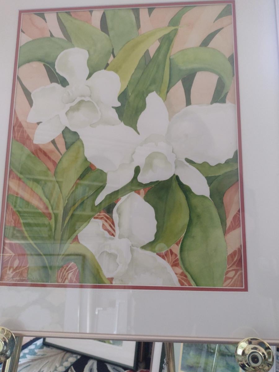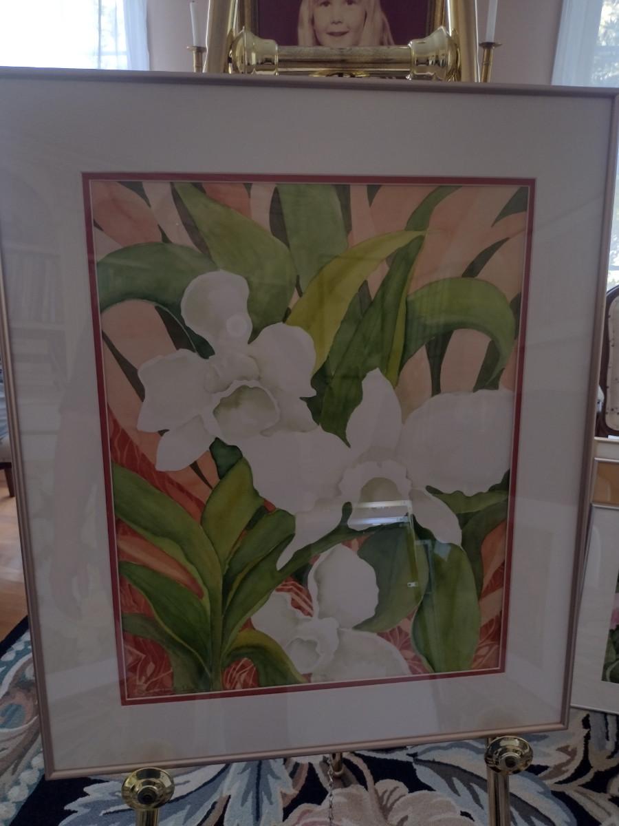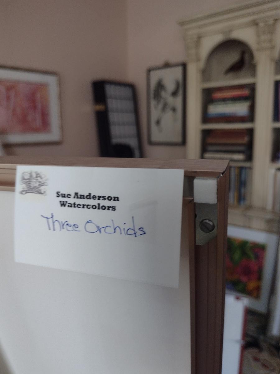 'Three Orchids' Original Framed Watercolor by Nationally Recognized Artist Susan Anderson (#19). Item is framed under plexiglass.