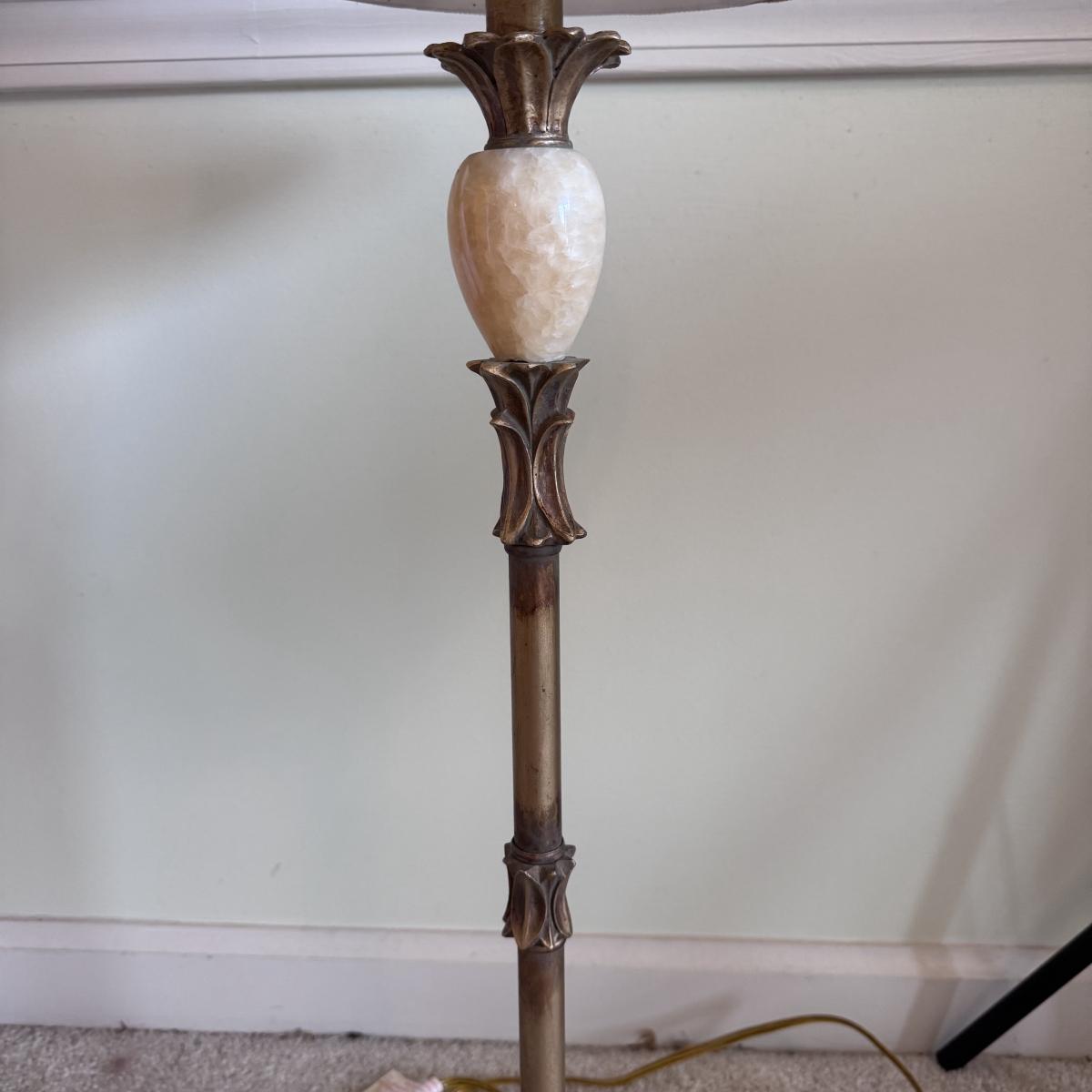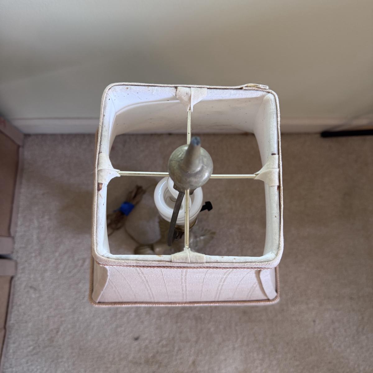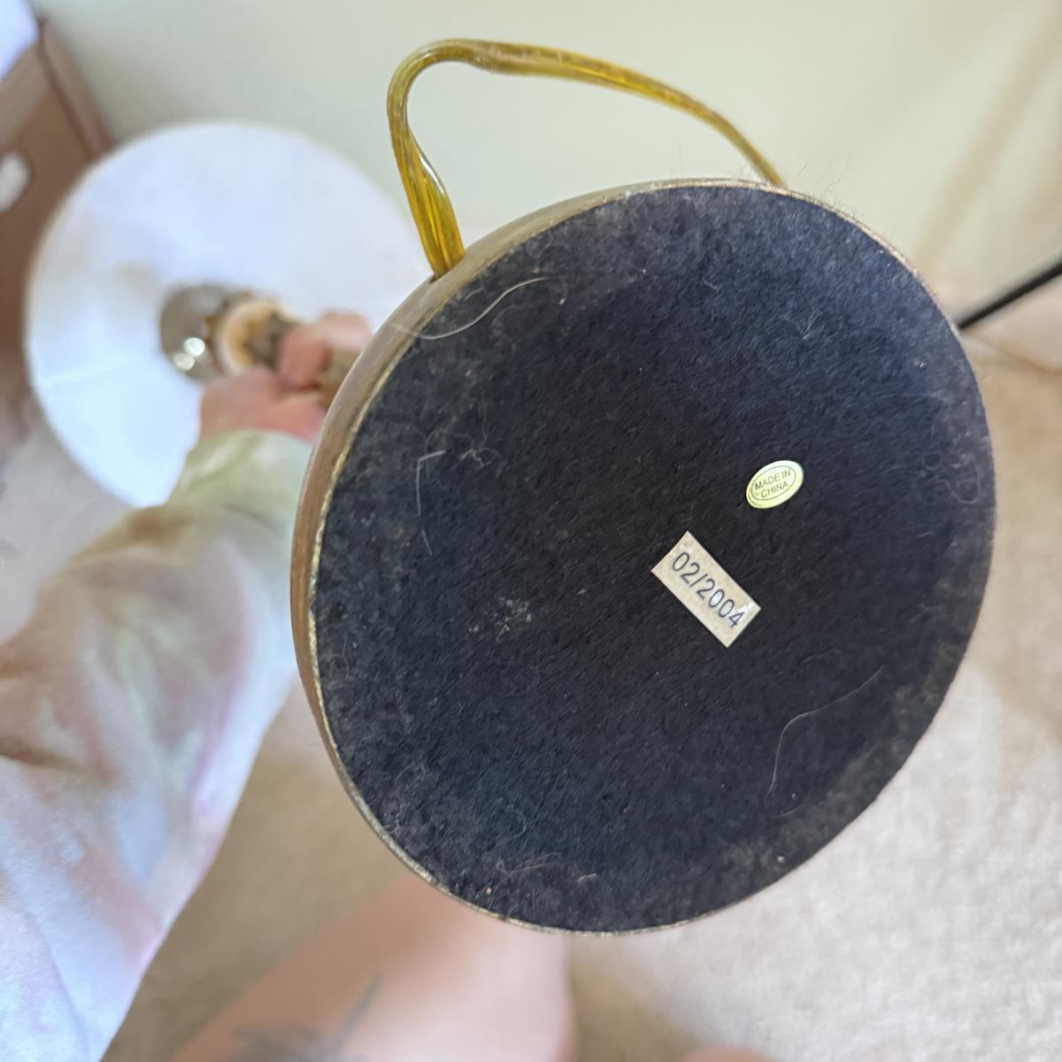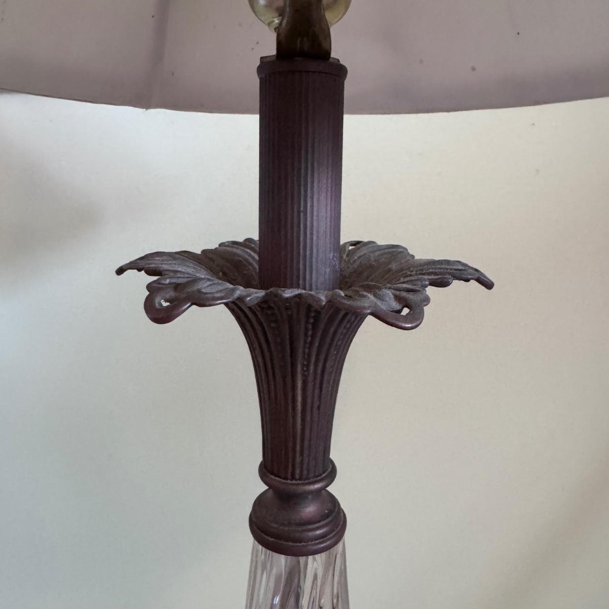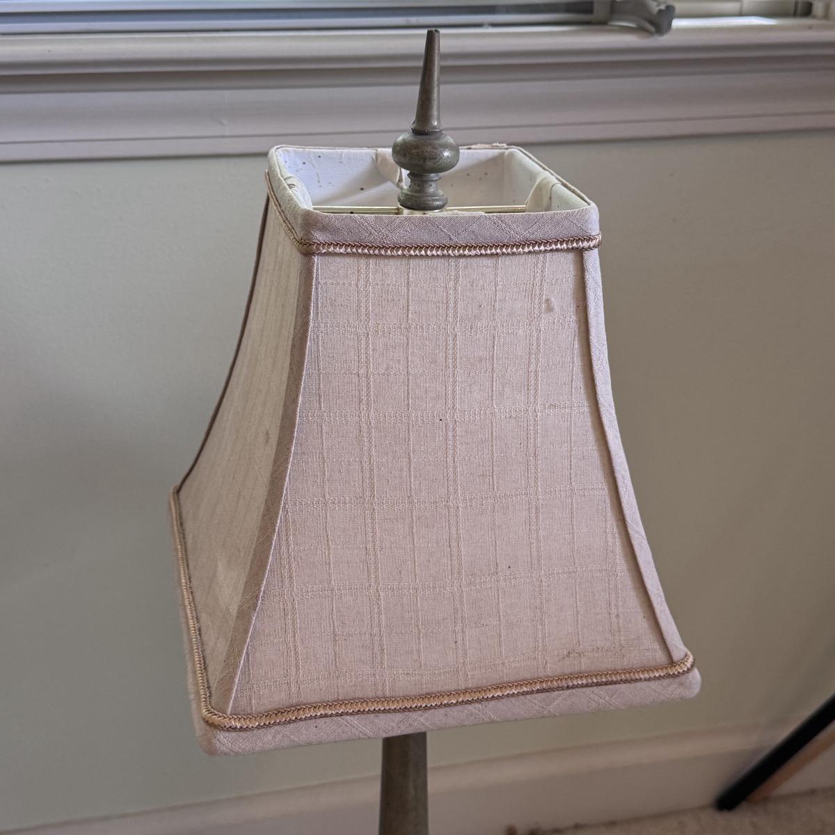 This lot includes three ornate table lamps, all made with a metal base. One of the lamps is missing its finial. All three powered on when plugged in. The tallest lamp measures 10”D x 32”H. Shipping available.