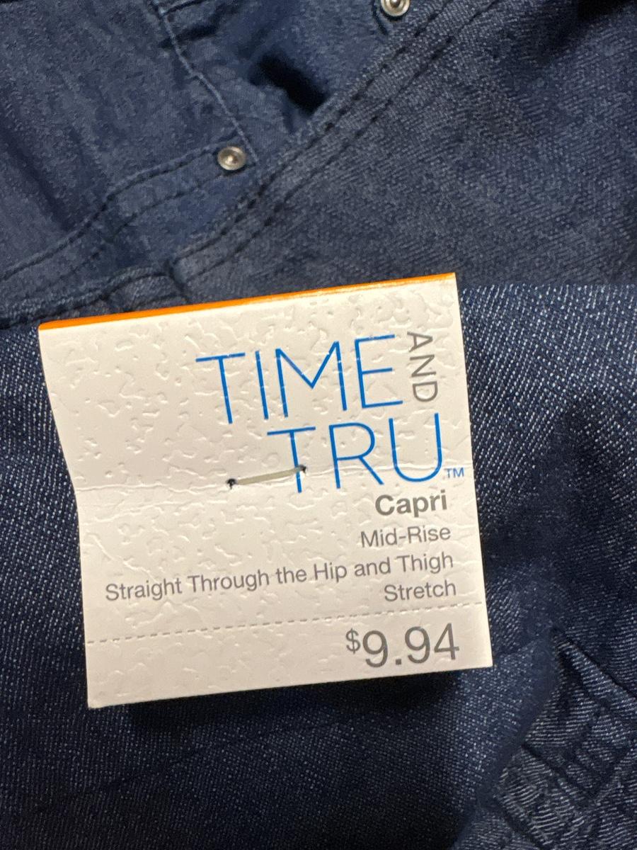 Time true Capri mid rise stretch denim pants. Size 8-10