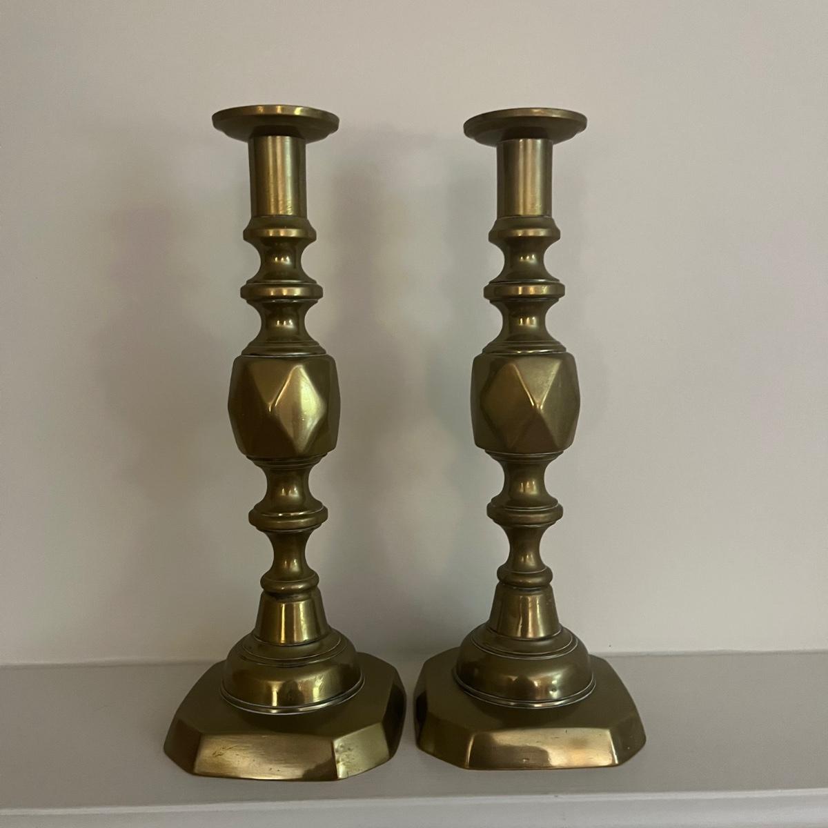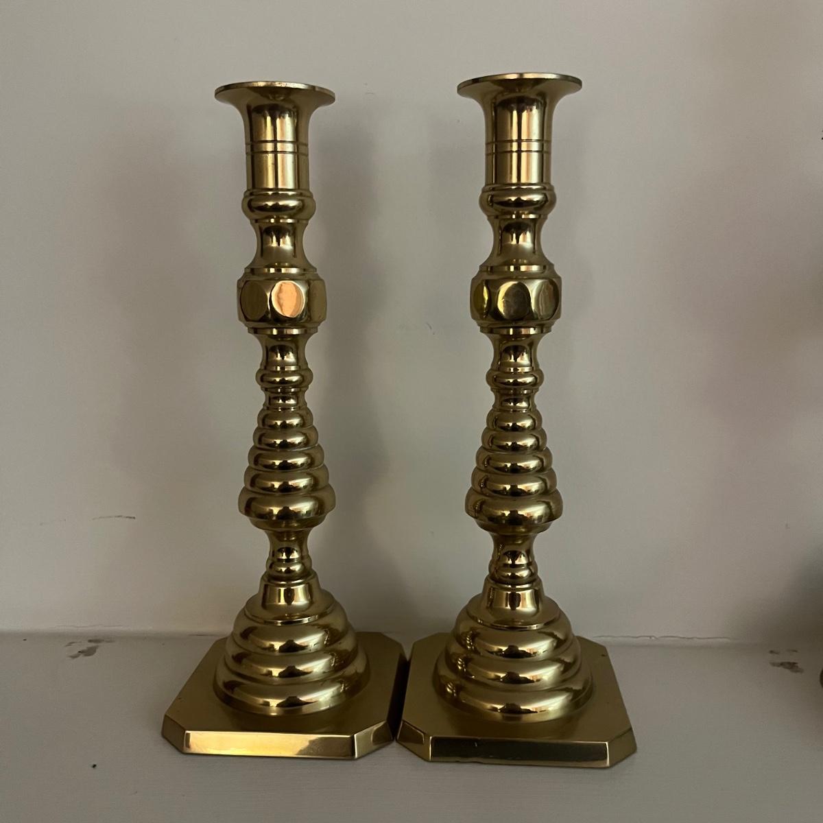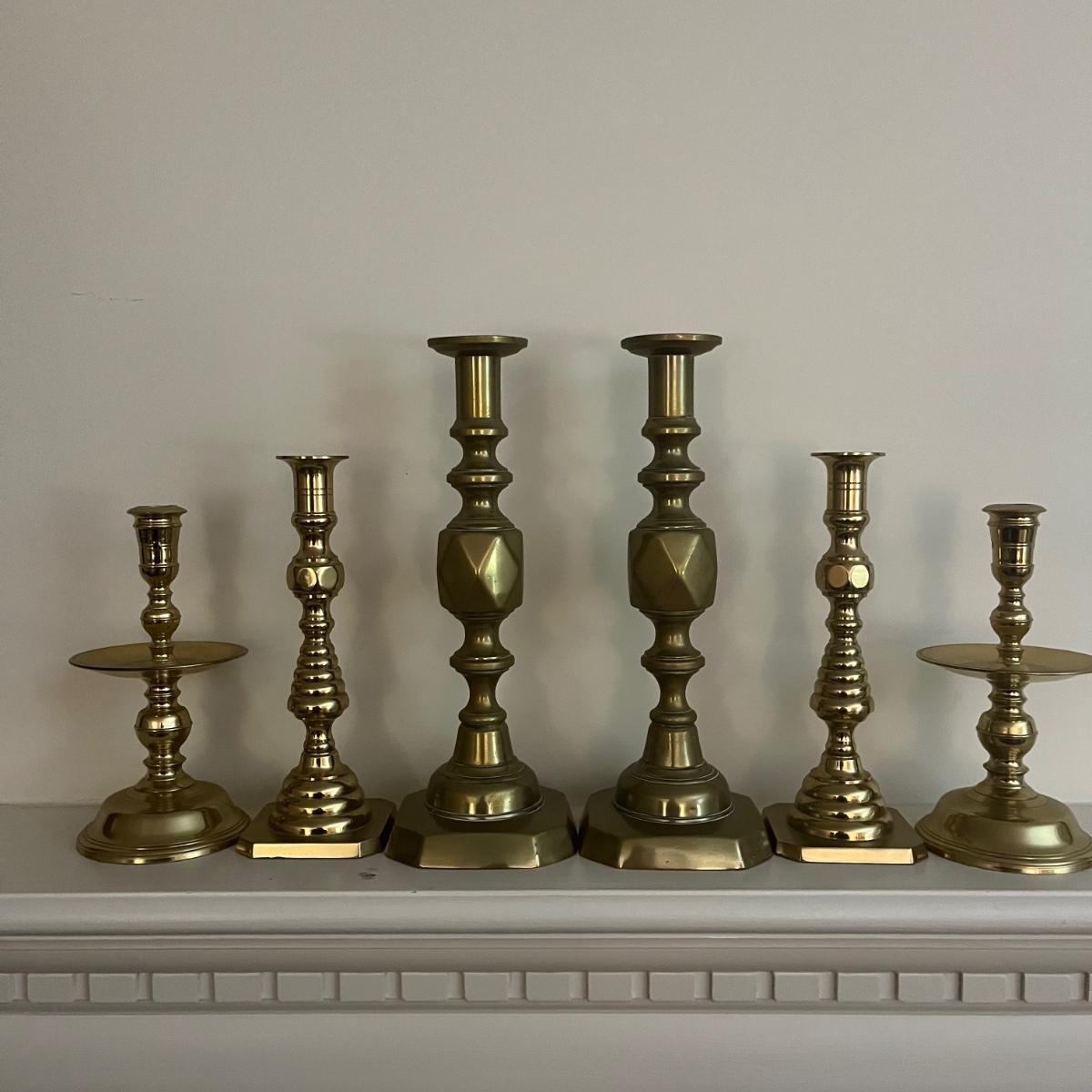 Three Pairs of Brass Candlesticks (LR-MG)