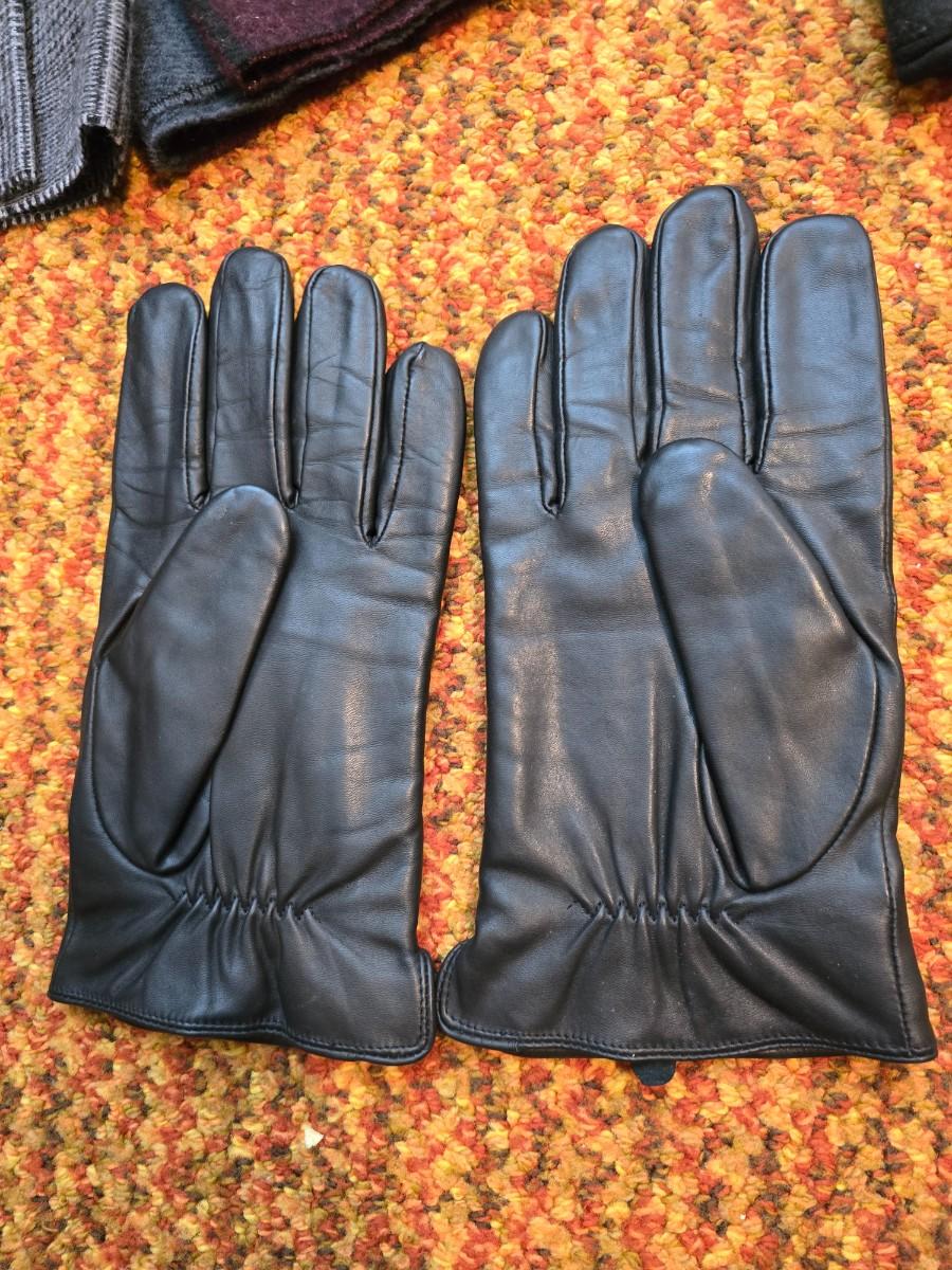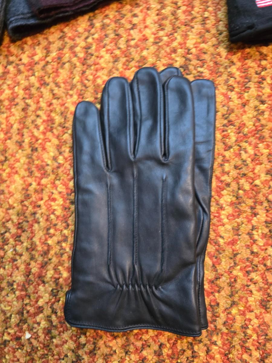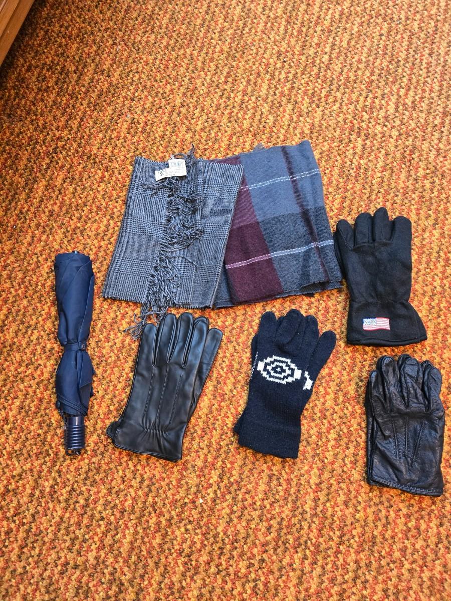 Three pairs of Men's Gloves, two neck Scarves an umbrella