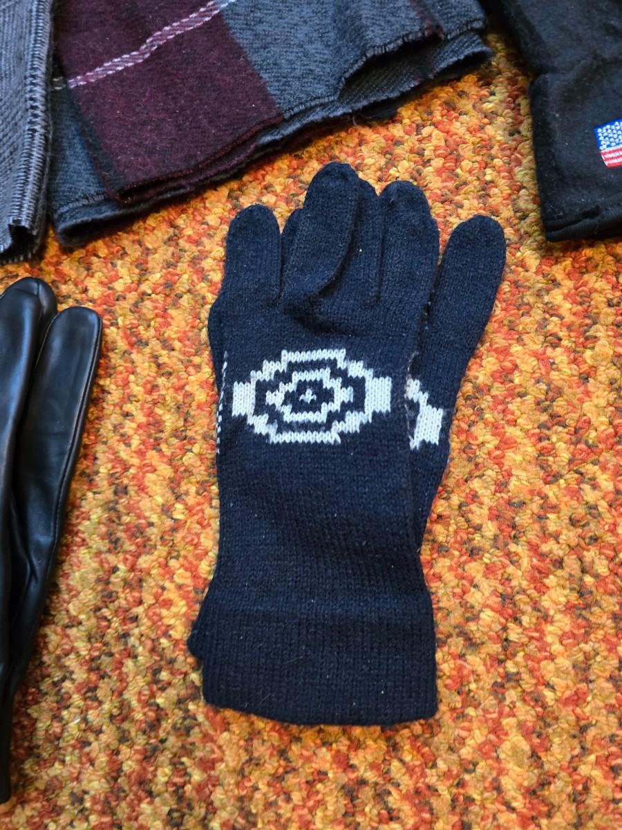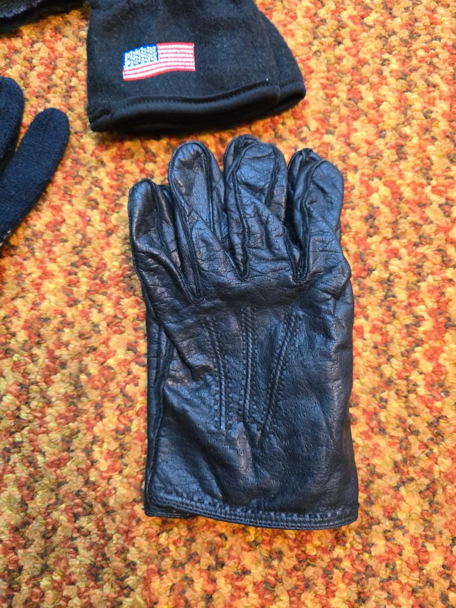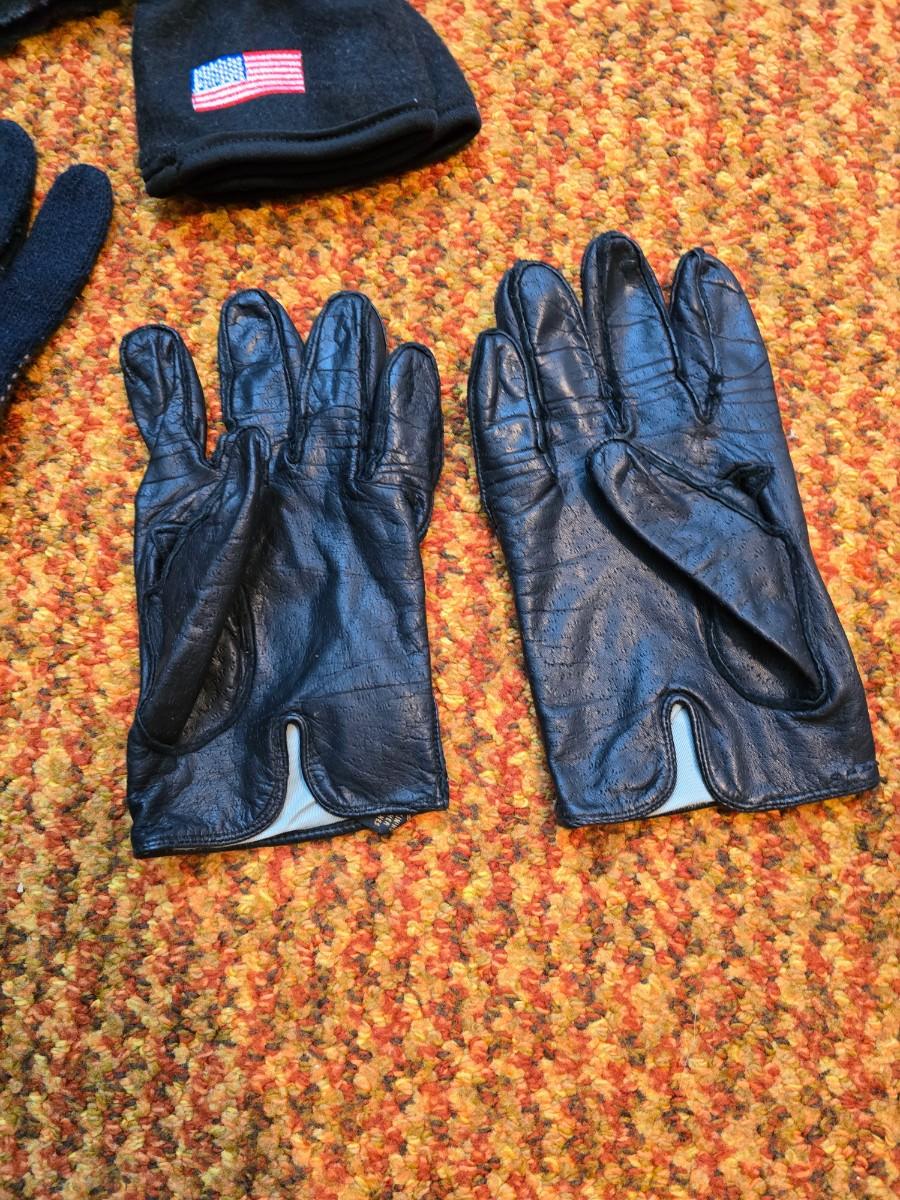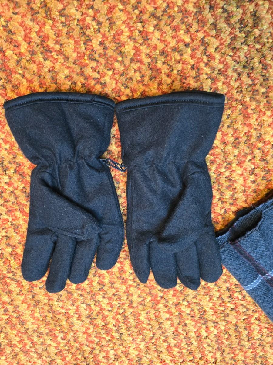 Three pairs of Men's Gloves, two neck Scarves an umbrella