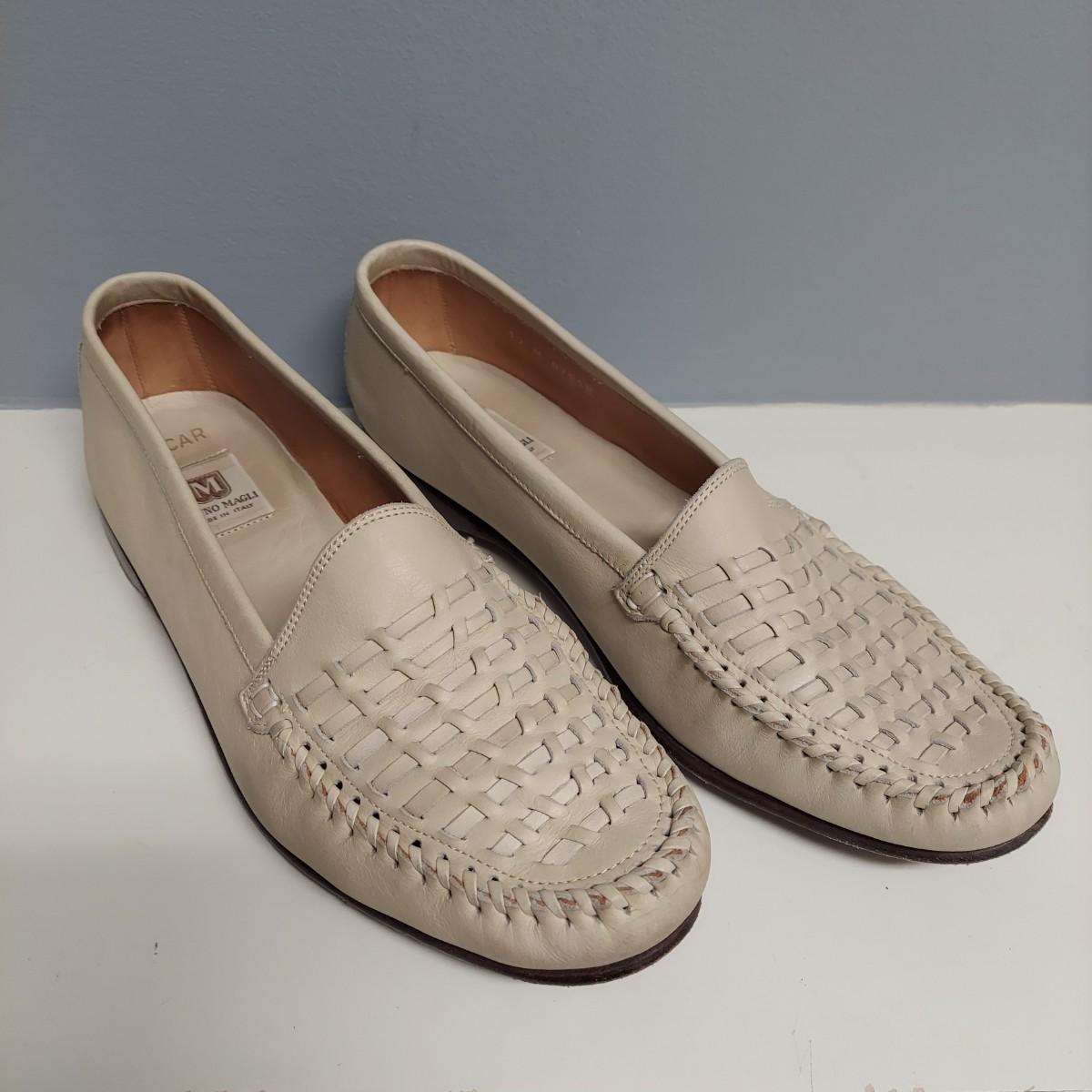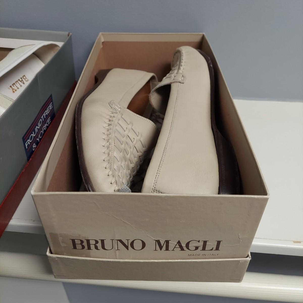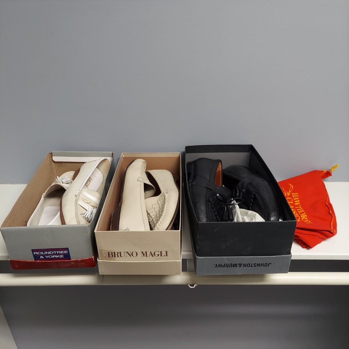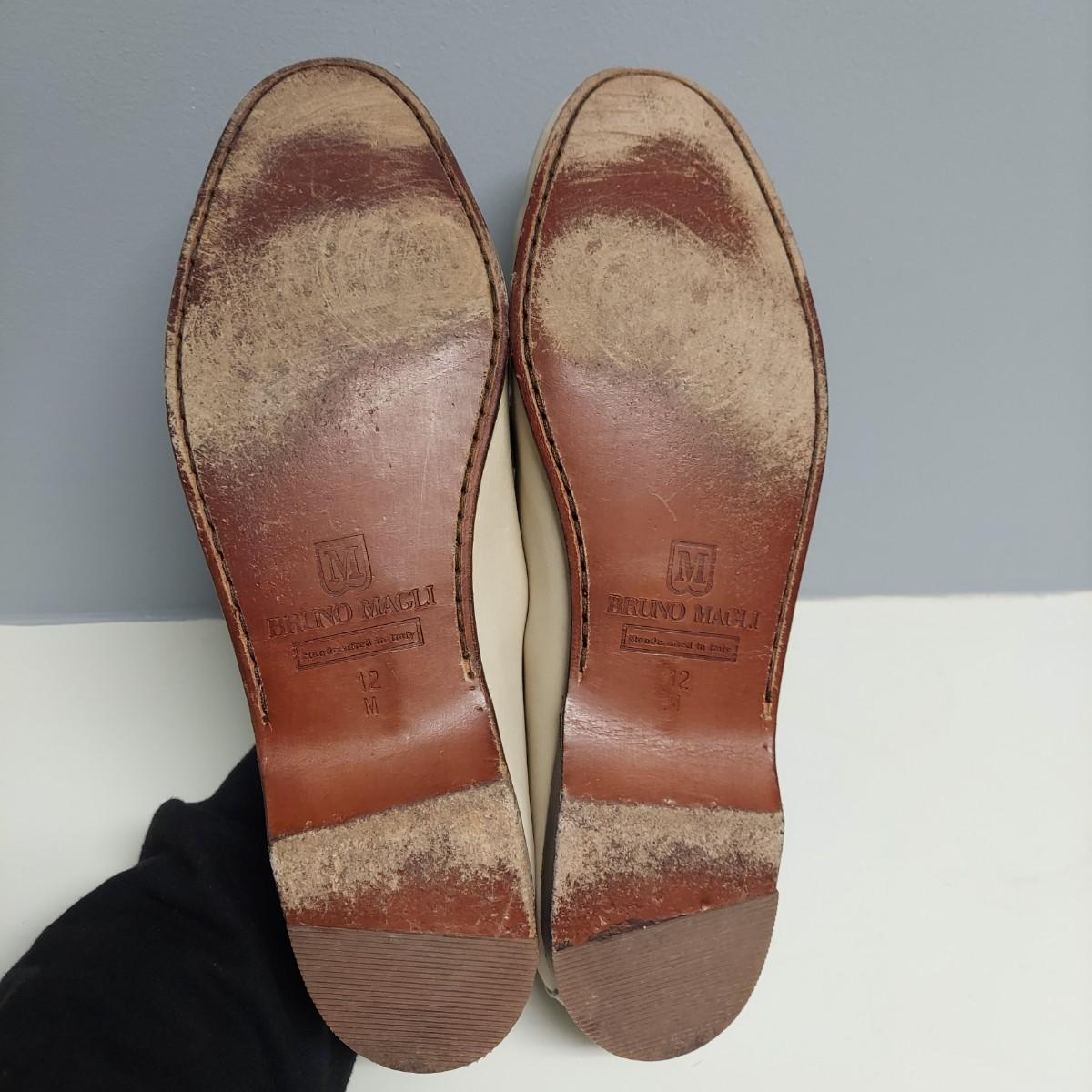 Three pairs of size 12 loafers that appear to have leather uppers and leather soles. Brands include Bally, Bruno Magli and Johnston & Murphy. Some condition issues on the Bally loafers. Please see photos for details. Shipping available.