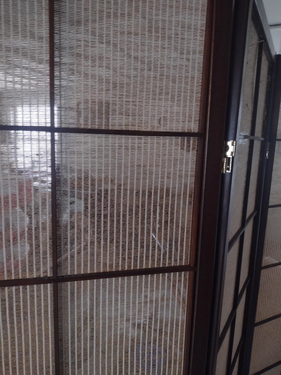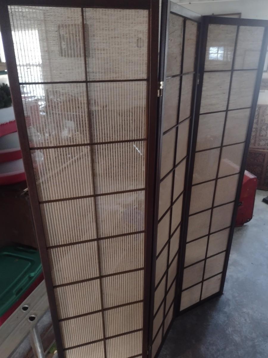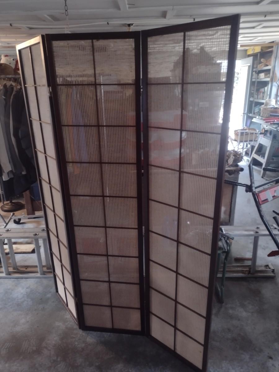 Three Panel Wood Framed Privacy Screen with Sheer Fabric Cover