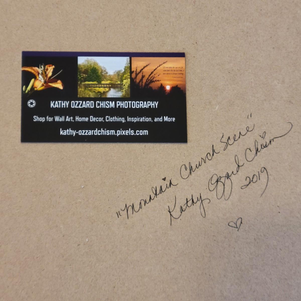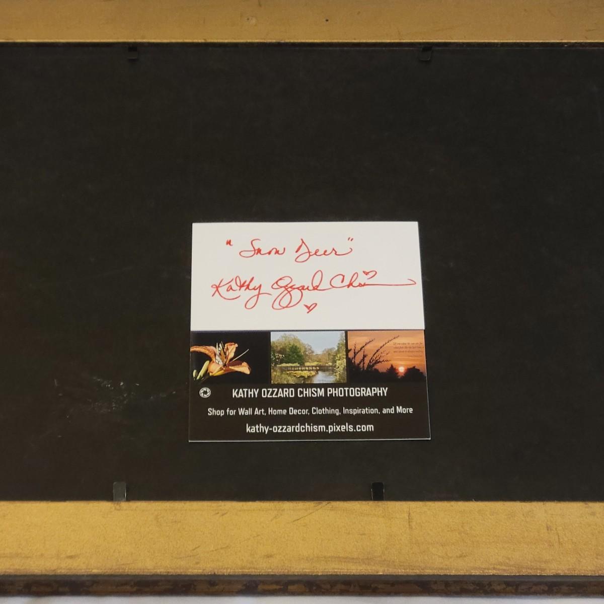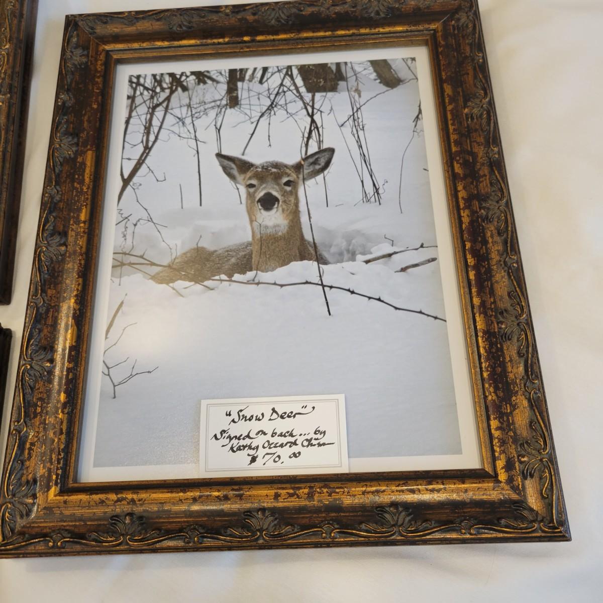 Three pen signed photographs by local photographer Kathy Ozzard Chism. Included is "Brown Beauty", Snow Deer" and "Mountain Church Scene". All three are framed in matching wood frames with a bronze colored finish and measure approximately 14.5" x 11.5"H. Shipping available. Shipping can be costly. We suggest contacting our preferred local shipping provider, Postage Express, with dimensions and getting an estimate before bidding: (828) 670-5501 or postageexpress@yahoo.com.