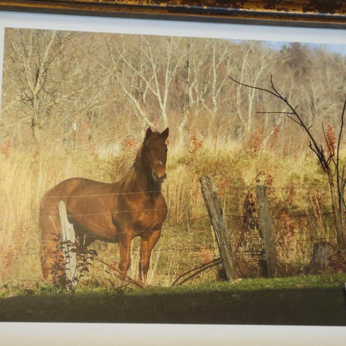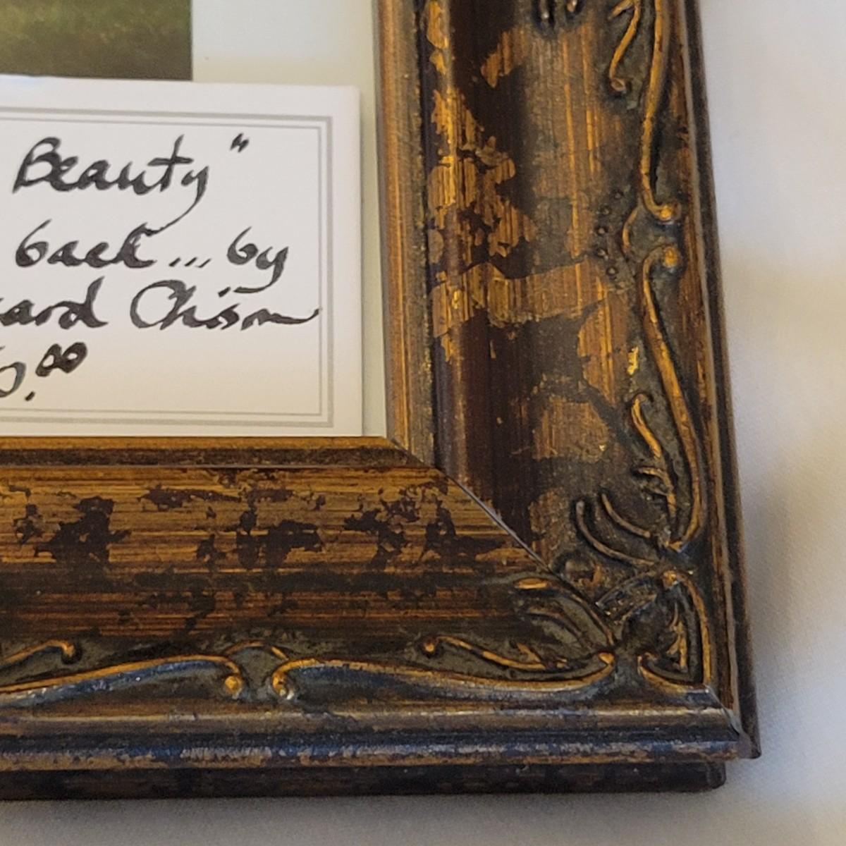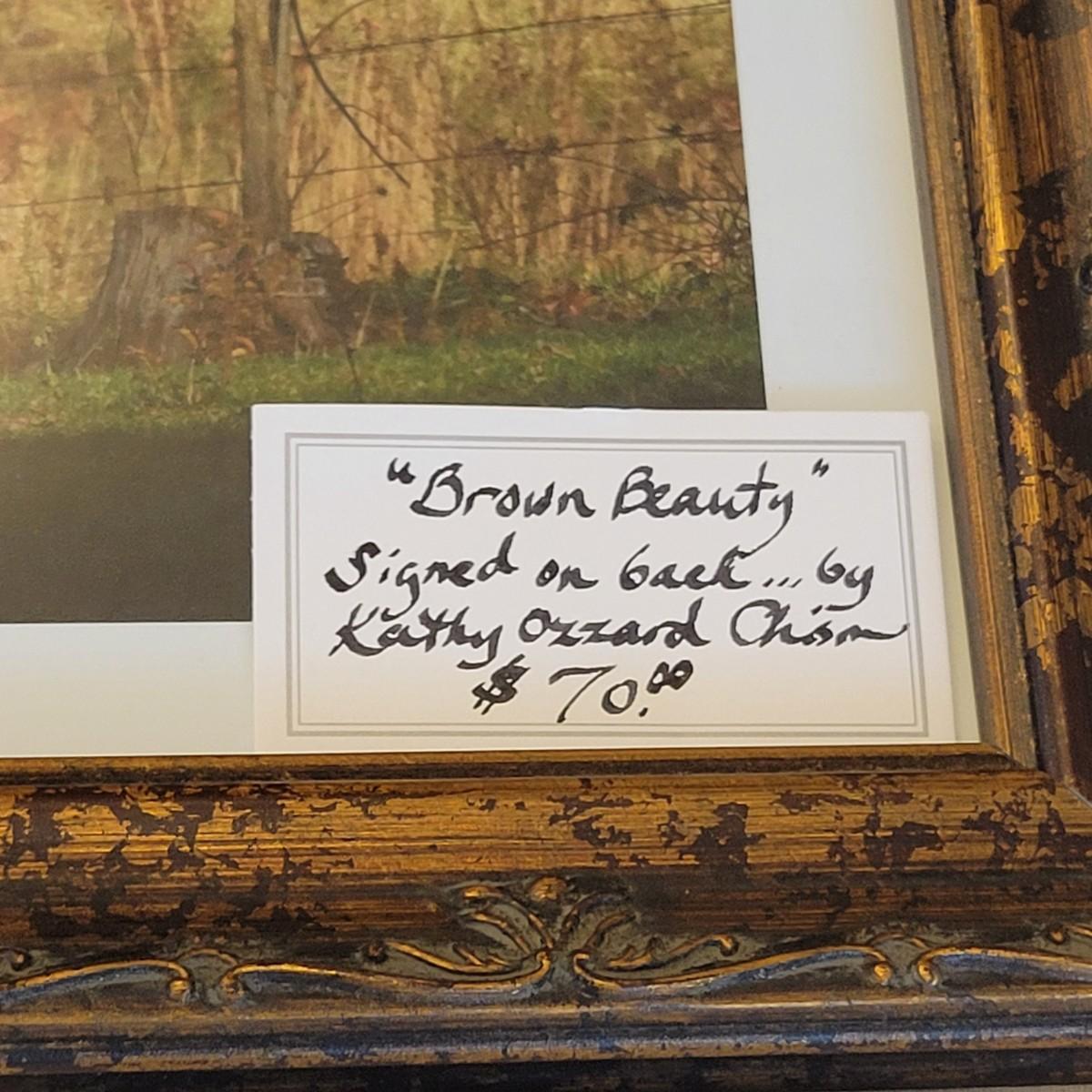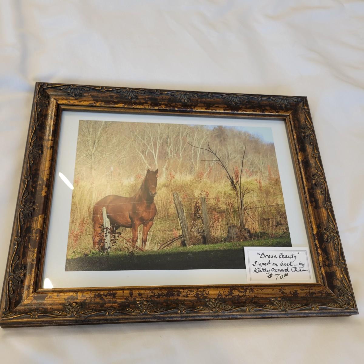 Three pen signed photographs by local photographer Kathy Ozzard Chism. Included is "Brown Beauty", Snow Deer" and "Mountain Church Scene". All three are framed in matching wood frames with a bronze colored finish and measure approximately 14.5" x 11.5"H. Shipping available. Shipping can be costly. We suggest contacting our preferred local shipping provider, Postage Express, with dimensions and getting an estimate before bidding: (828) 670-5501 or postageexpress@yahoo.com.