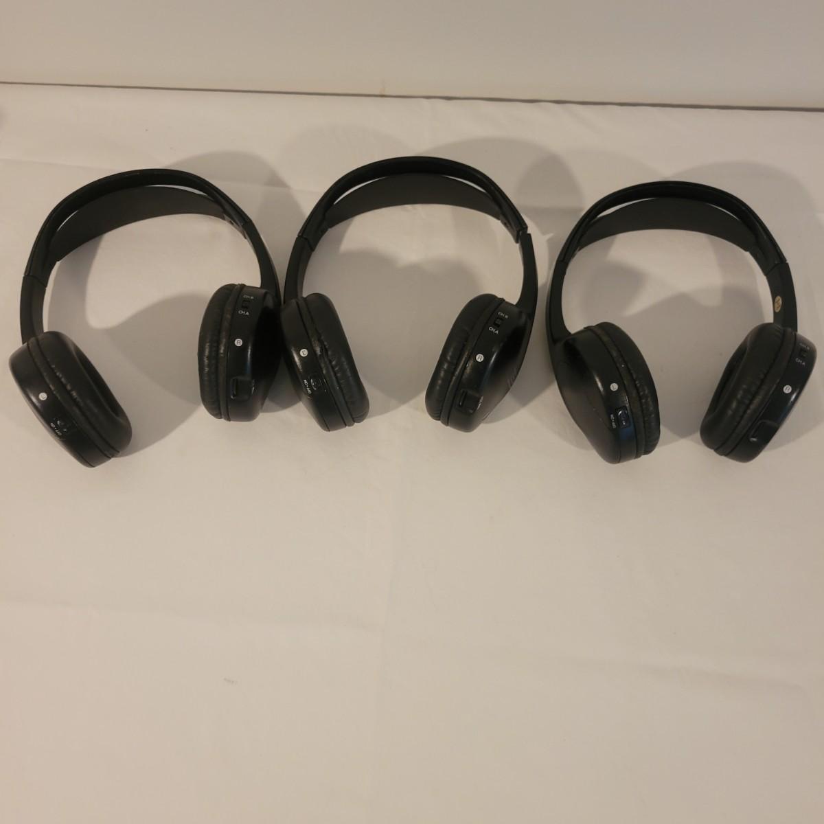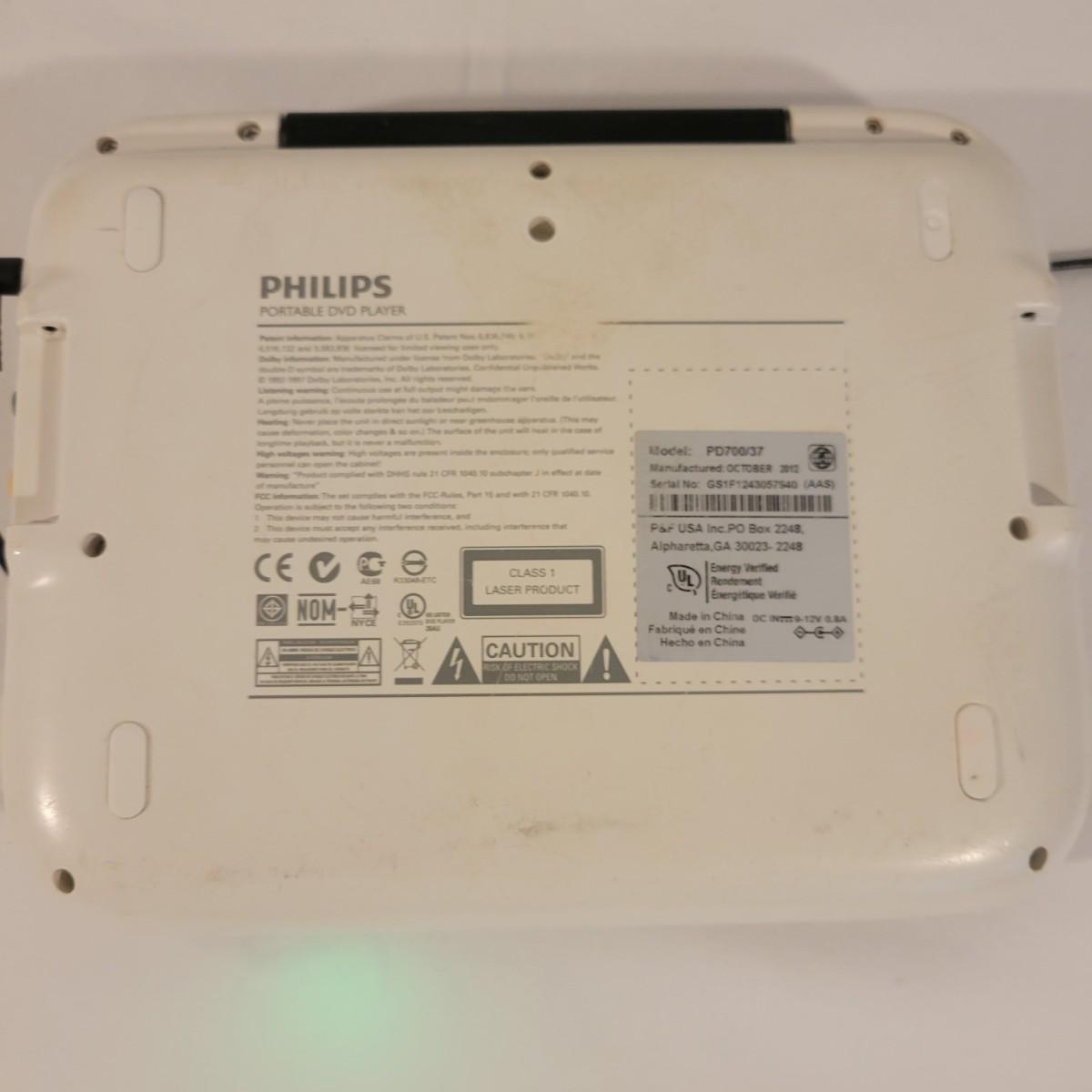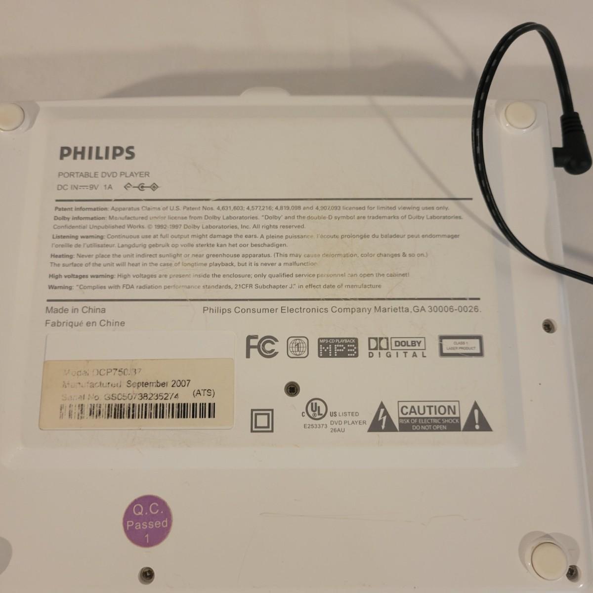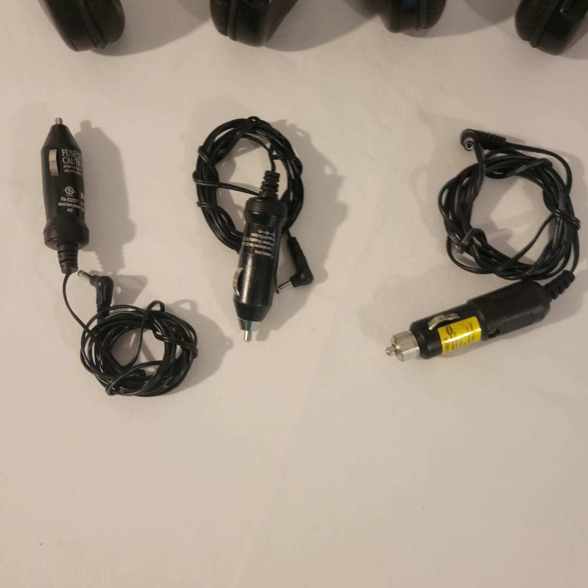 Three Phillips portable DVD players with car adapter power cords. All players have been tested and powered on. Overall, they are in good shape, but the outside of one has been doodled on. Lot also includes 3 sets of dual source, IR stereo headphones. These are battery powered and were not able to be tested. Shipping available
