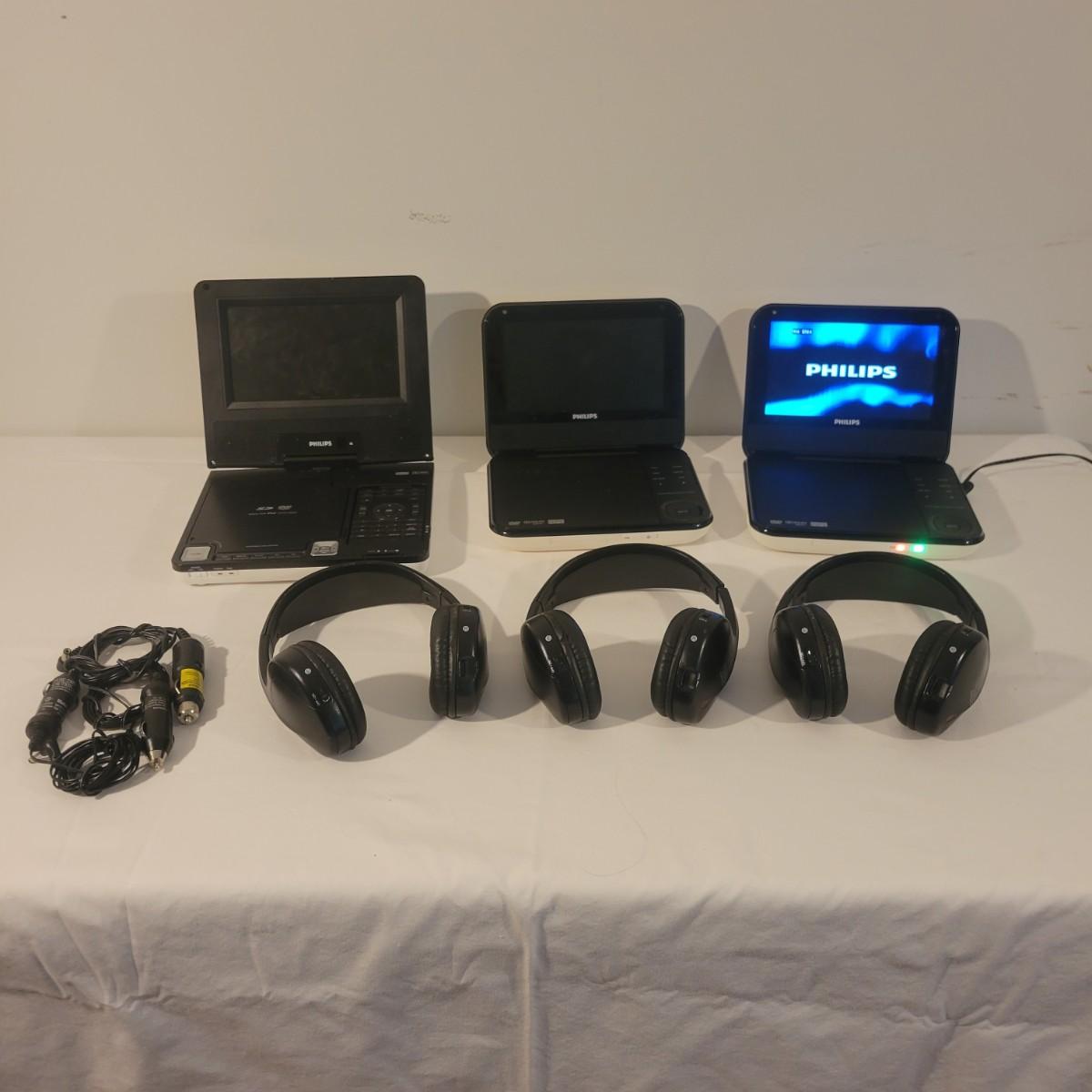 Three Phillips Portable DVD Players and Headphones (LR-DW)