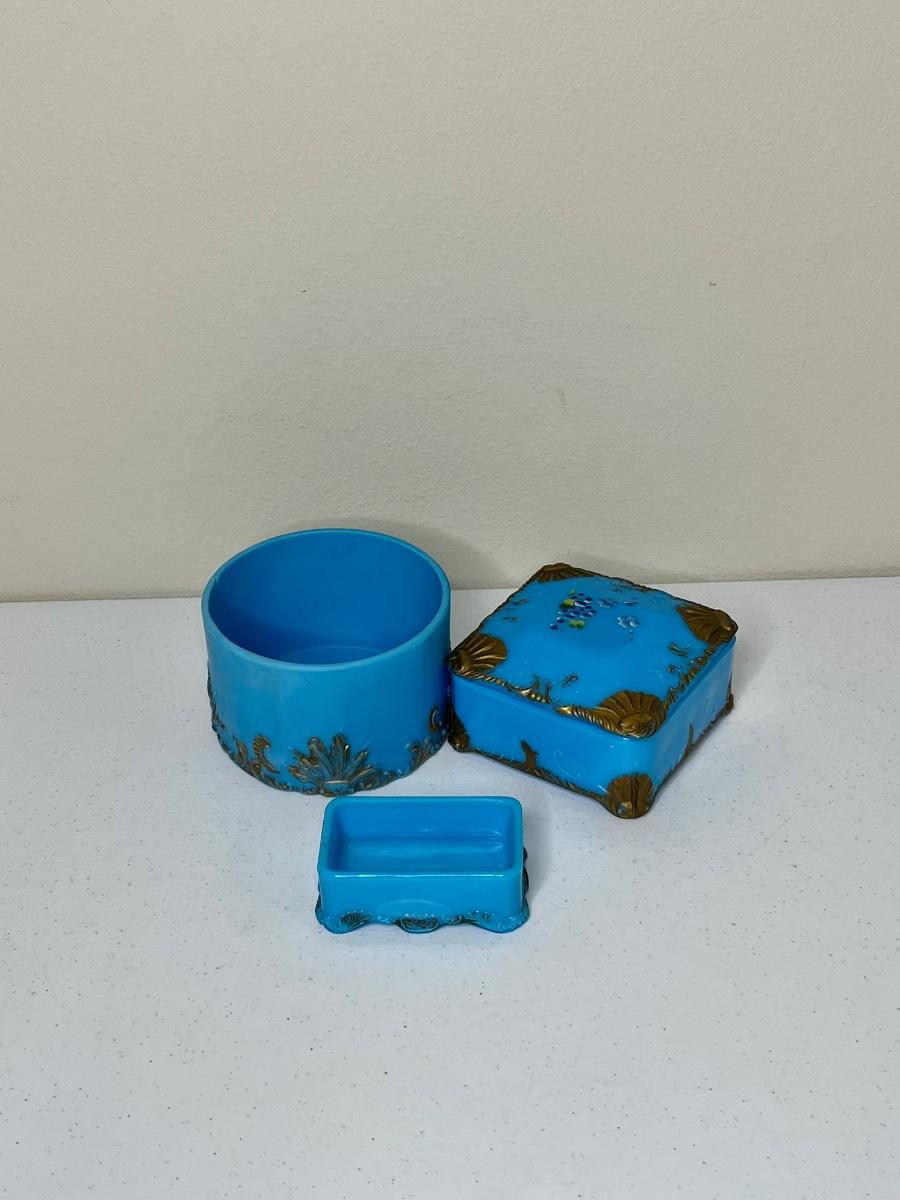 Three (3) Piece Vintage Style Milk Glass Jewelry Jars