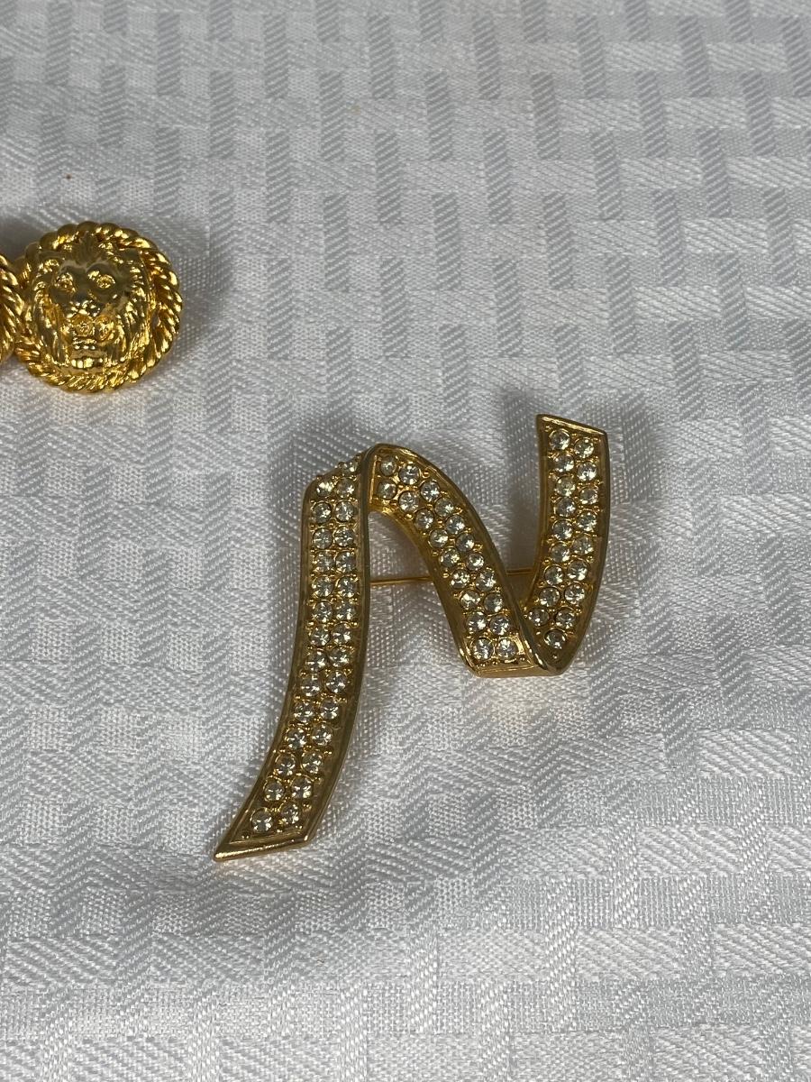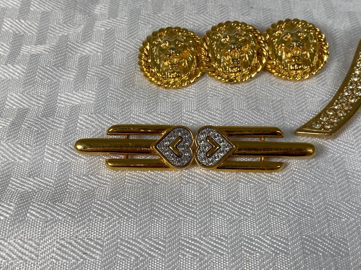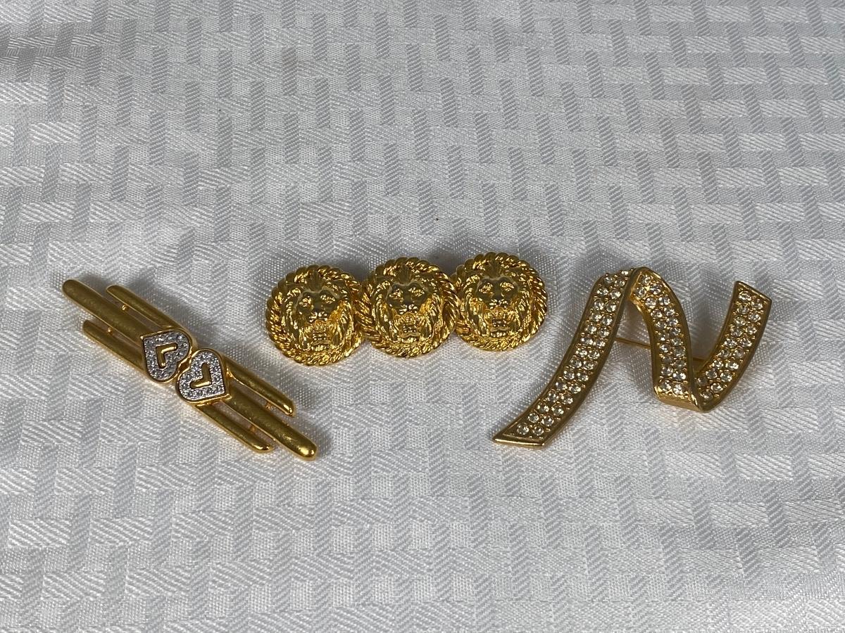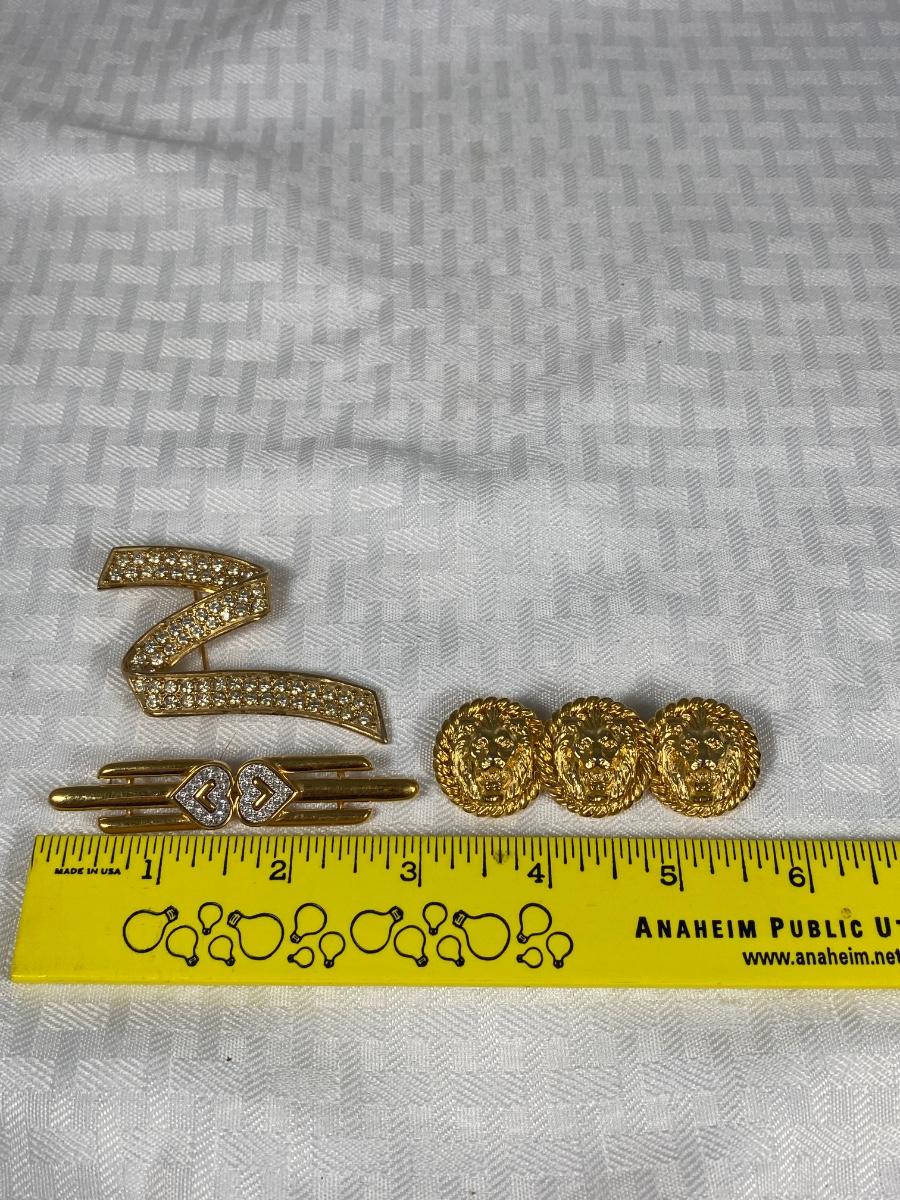 Three Piece Gold Tone & Rhinestone Pin Brooch Lot