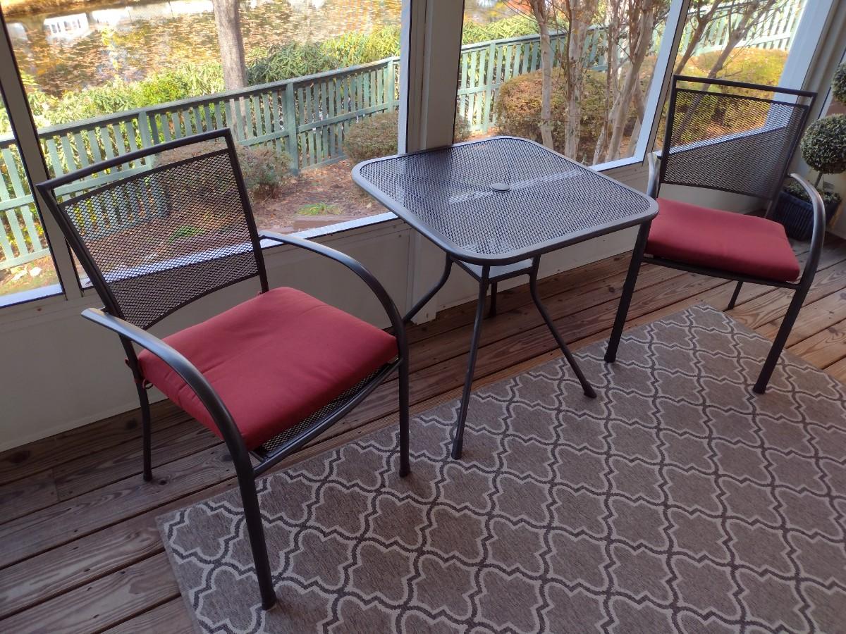 Three Piece Patio Chair and Table Set Metal Frame Seat Cushions