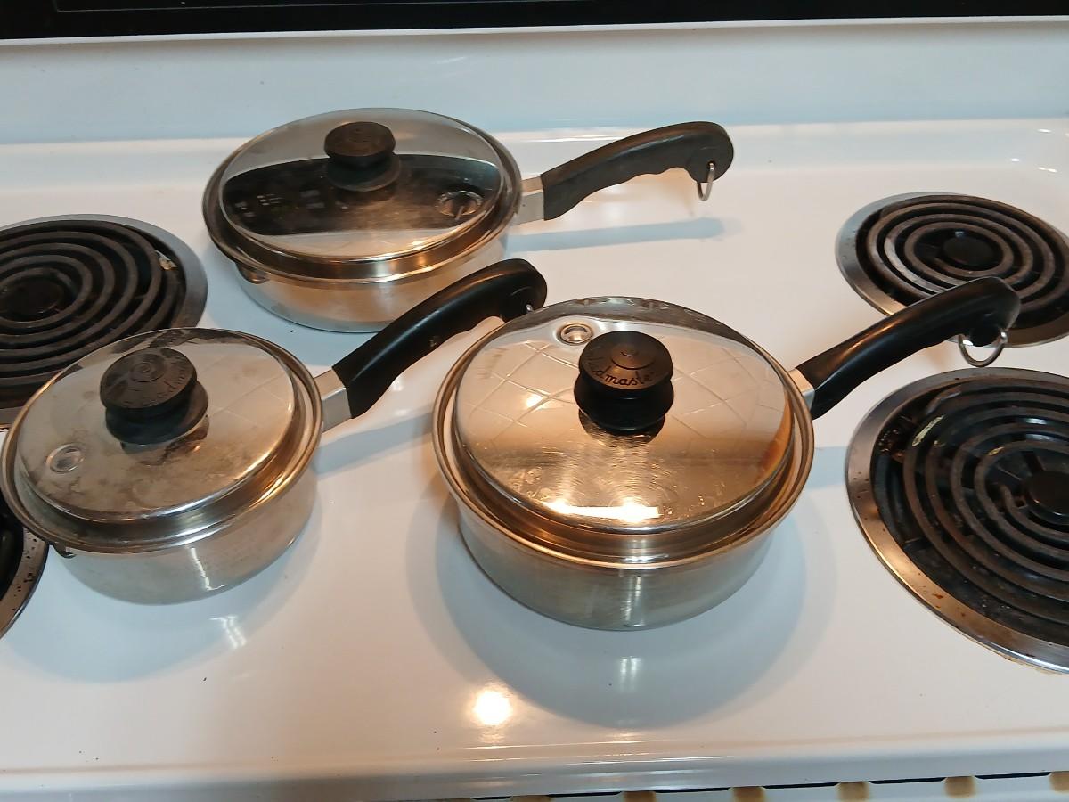 Three - piece Saladmaster surgical stainless steel waterless cookware