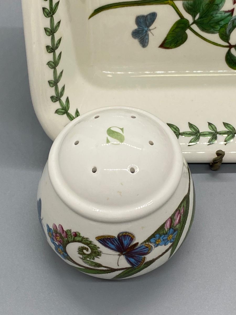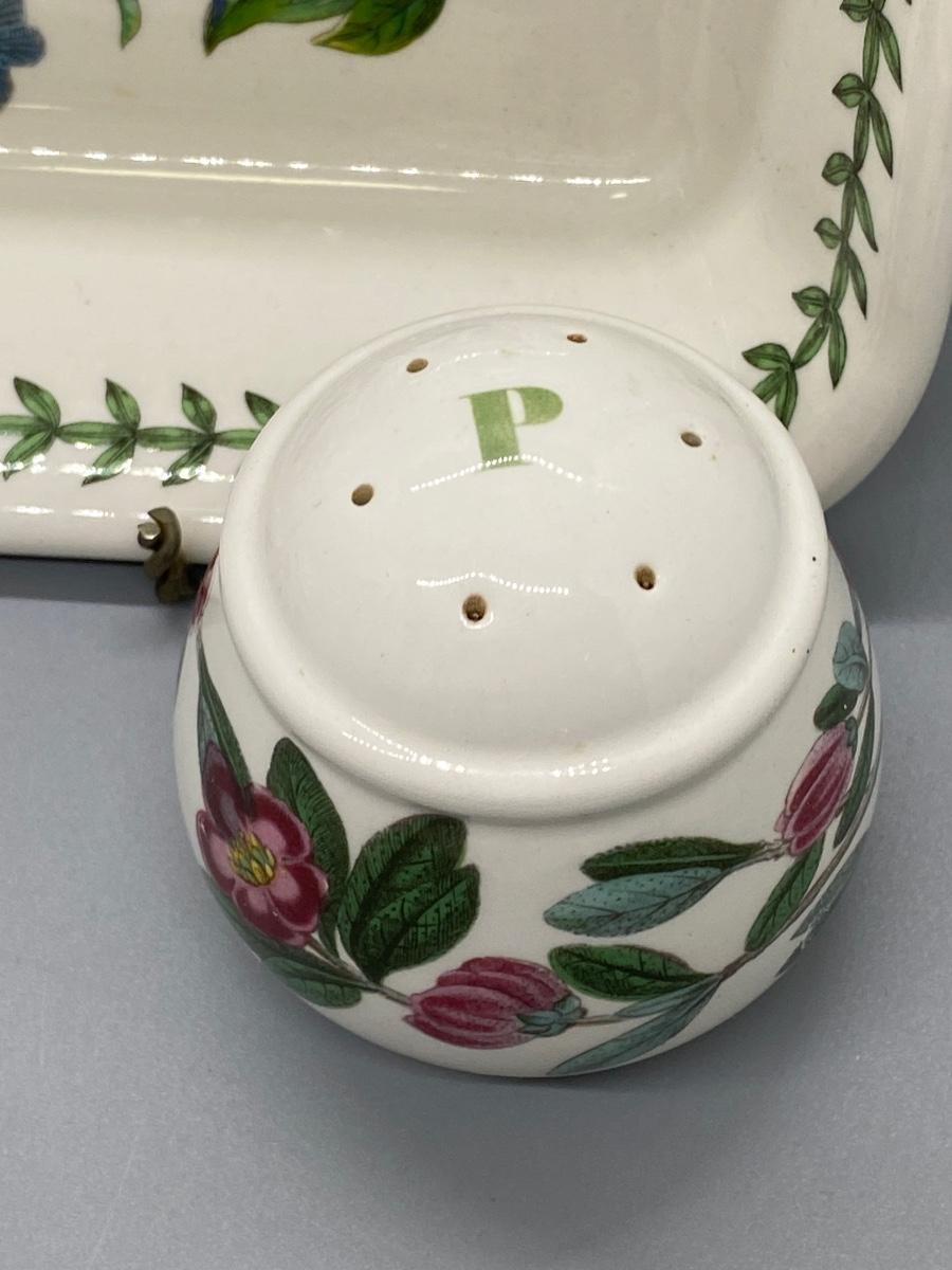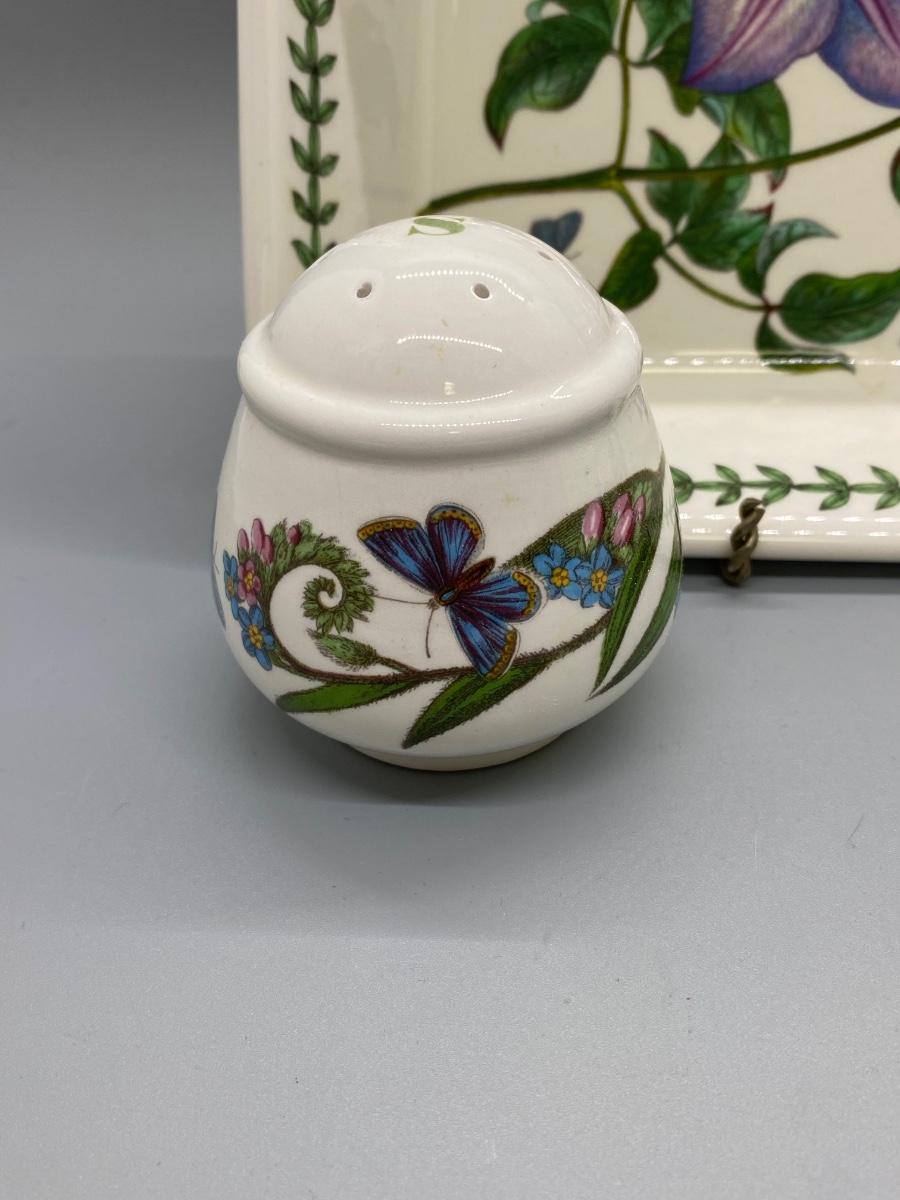 Three Piece set of Portmeirion The Botanic Garden Ceramic Kitchenware Shakers Tray
