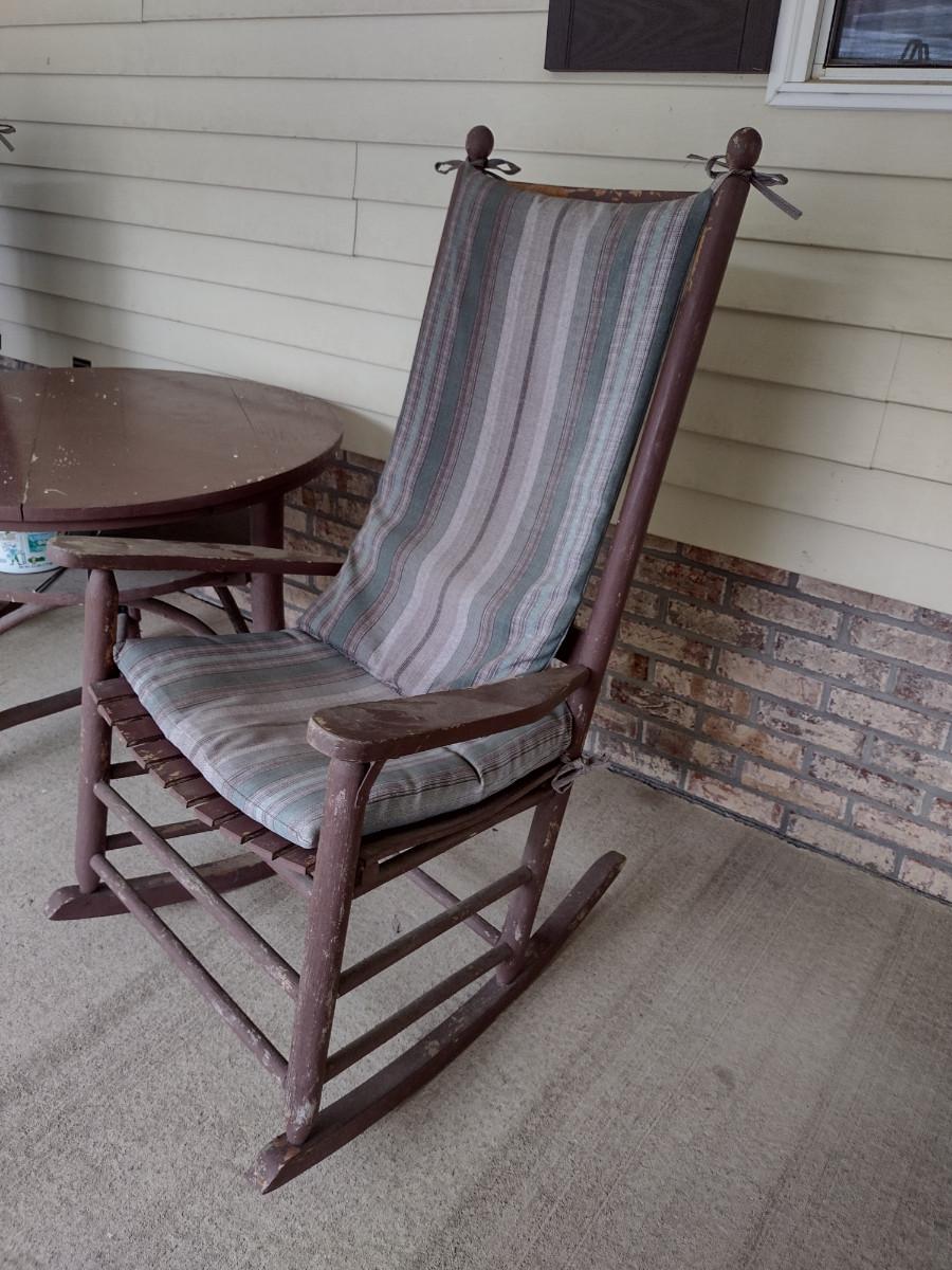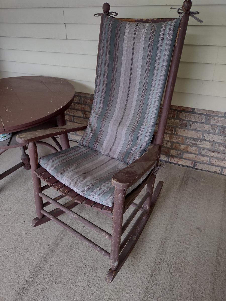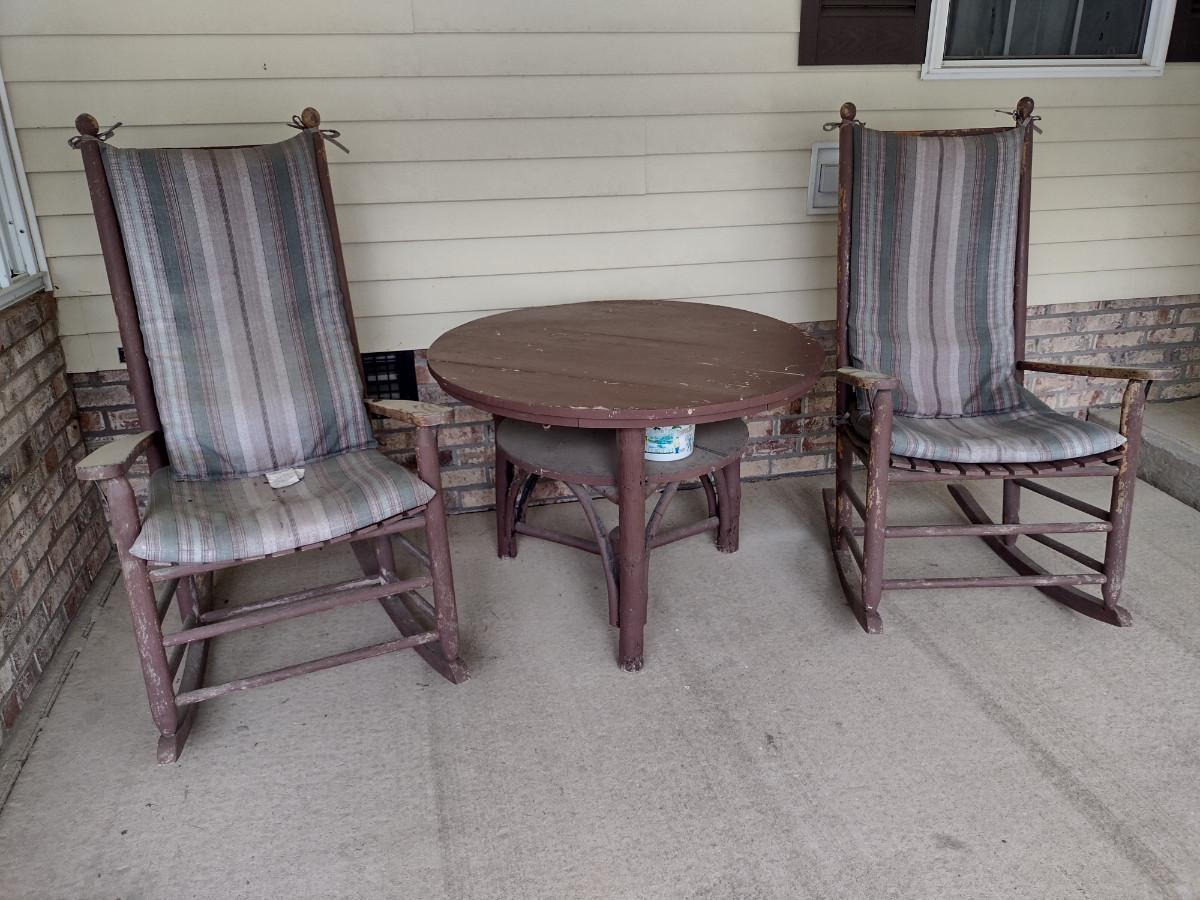 Three Piece Wooden Patio Furniture Set- Two Rocking Chairs and One Table