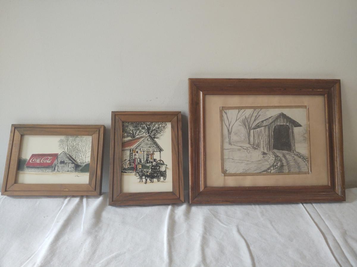 These are 2 prints and one that we think was done in a charcoal medium. See pictures for more detail.