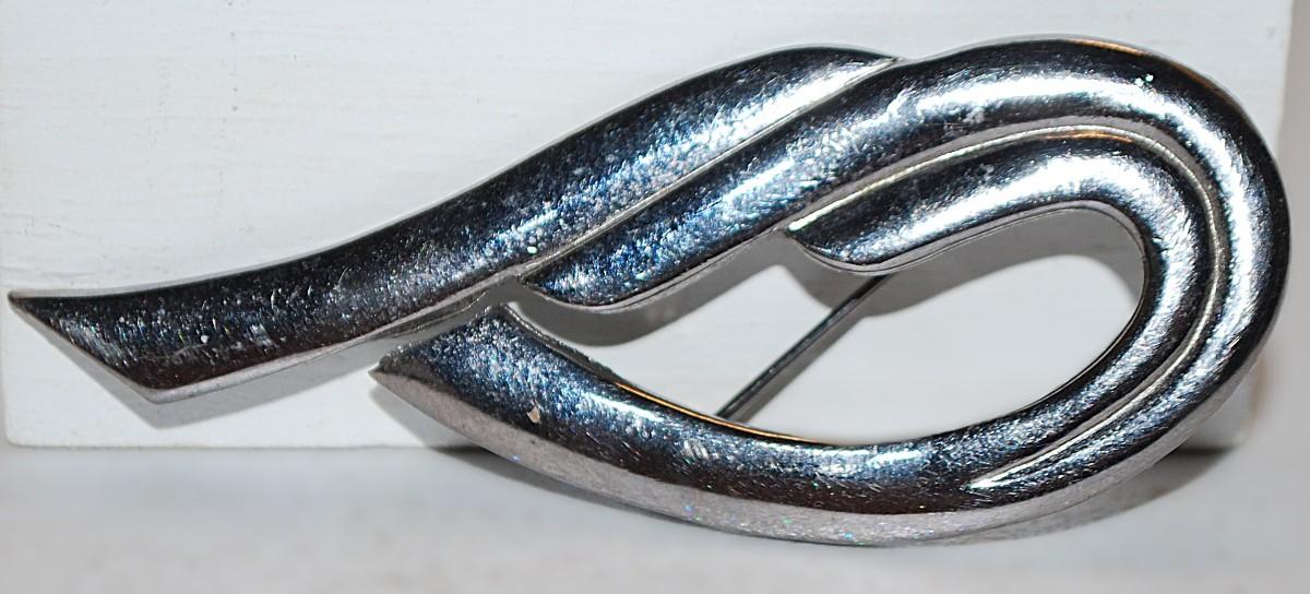 Three Point Silver Colored SWIRL BROOCH (3' x 1¼") on a Silver Tone Setting