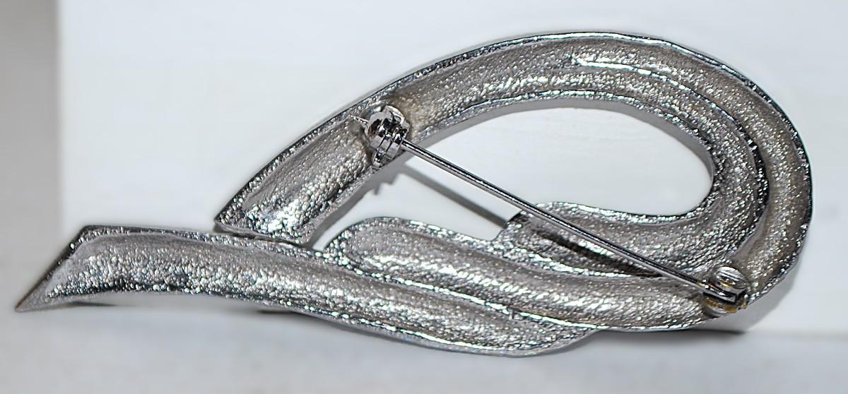 Three Point Silver Colored SWIRL BROOCH (3' x 1¼") on a Silver Tone Setting
