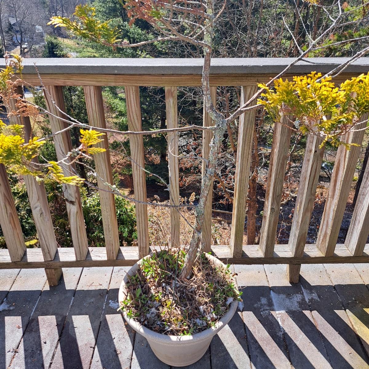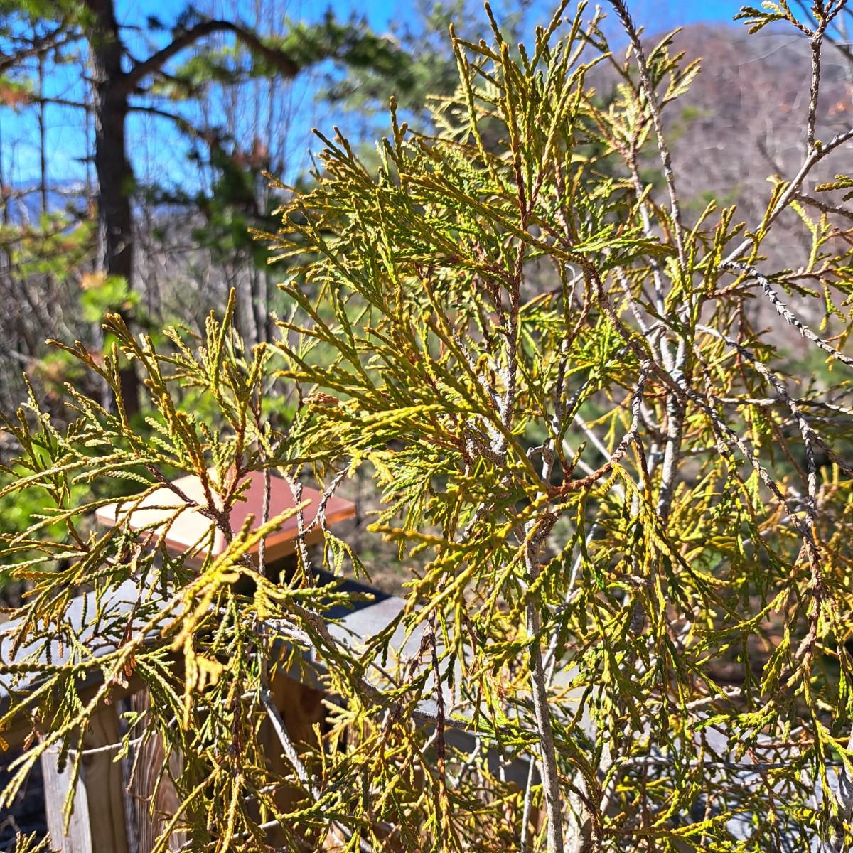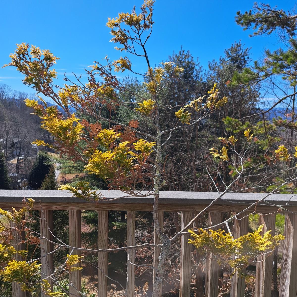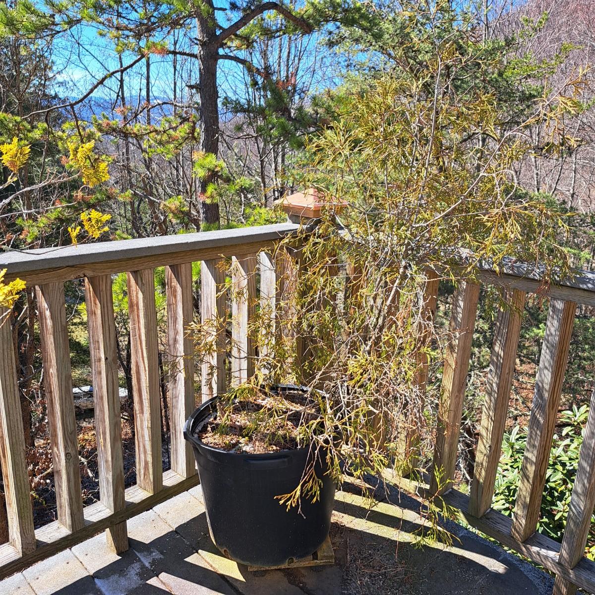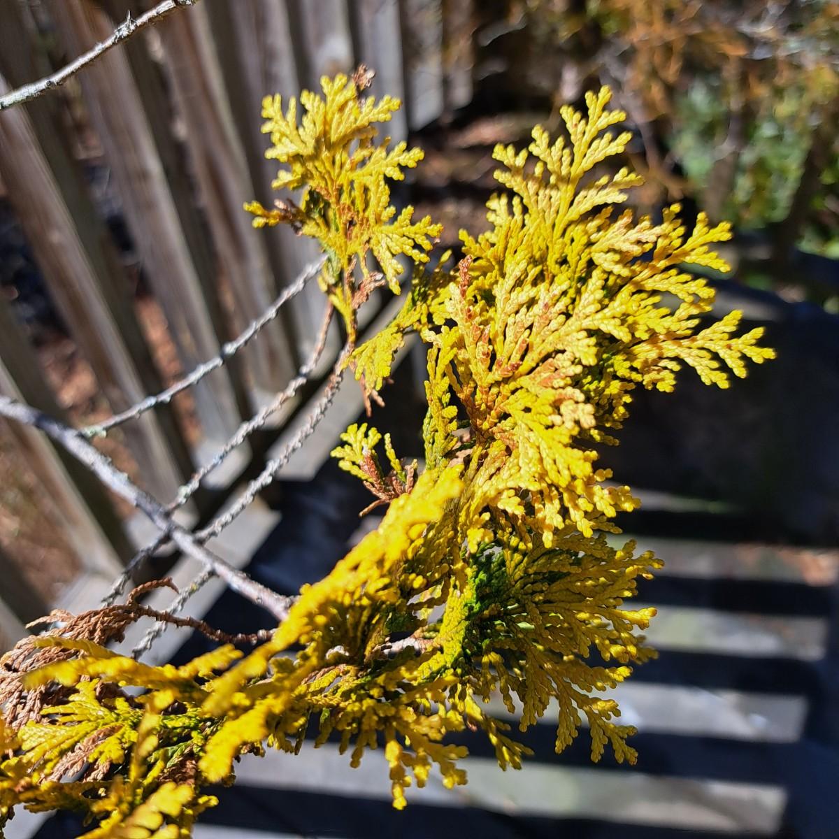 Three potted ornamental evergreens, a false gold cypress, a juniper and what appears to be a Japanese yew, all in plastic pots. Large false gold cypress in the light colored pot is 57"H with a branch width of 46." The juniper tree in the black pot on a wooden rolling stand is 63"H with a branch width of 30." The Japanese yew is 52"H with a 52" branch width. All appear to be mature and healthy, although the yew has a few dead branches, otherwise it appears to be very healthy with some new growth. Local pickup only.