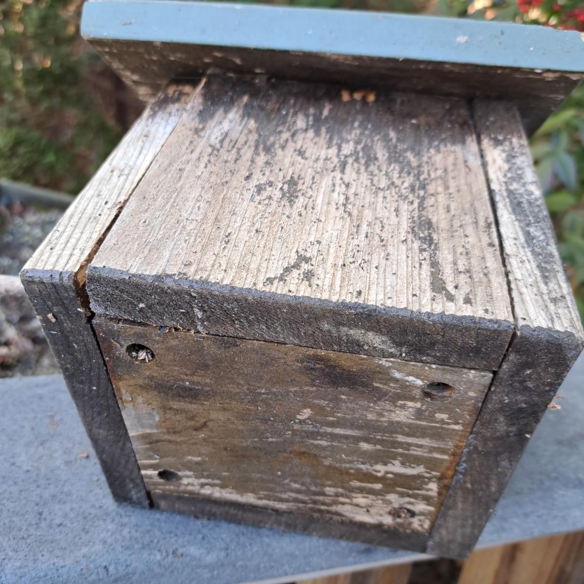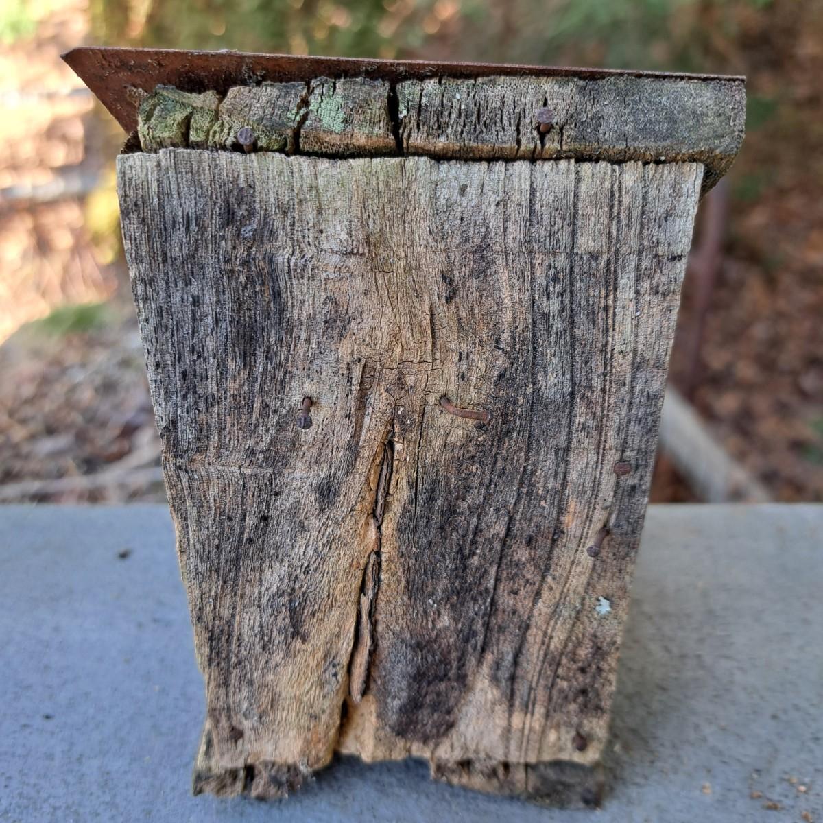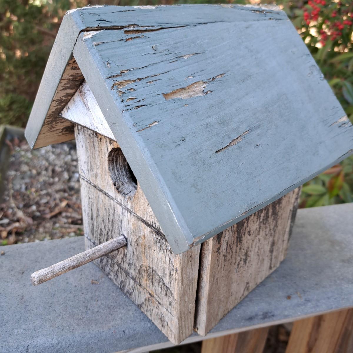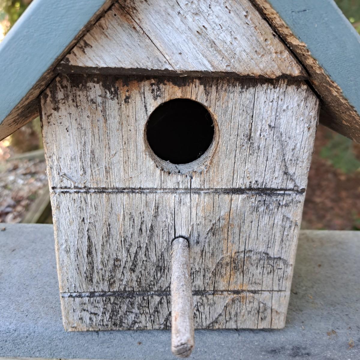 For your feathered friends - this lot contains 3 rustic wooden birdfeeders ranging in size from 6"H to 11"H and a suet feeder. All are weathered to different degrees as shown. The smallest has a shed roof and the largest is slightly reminiscent of a hobbit house with with bark roof and a handy back door. Local pickup only.