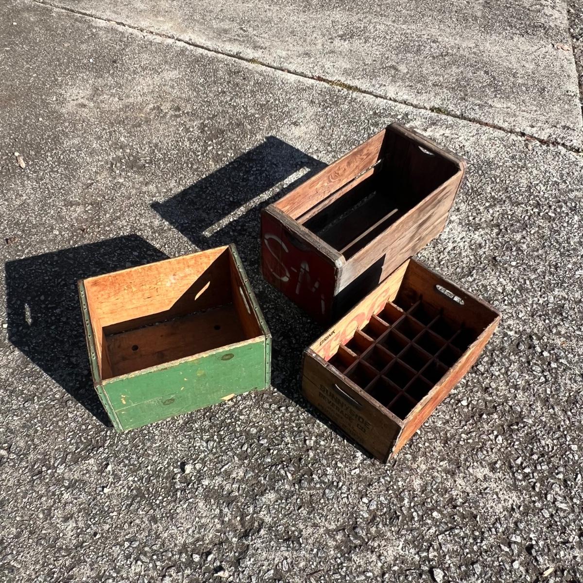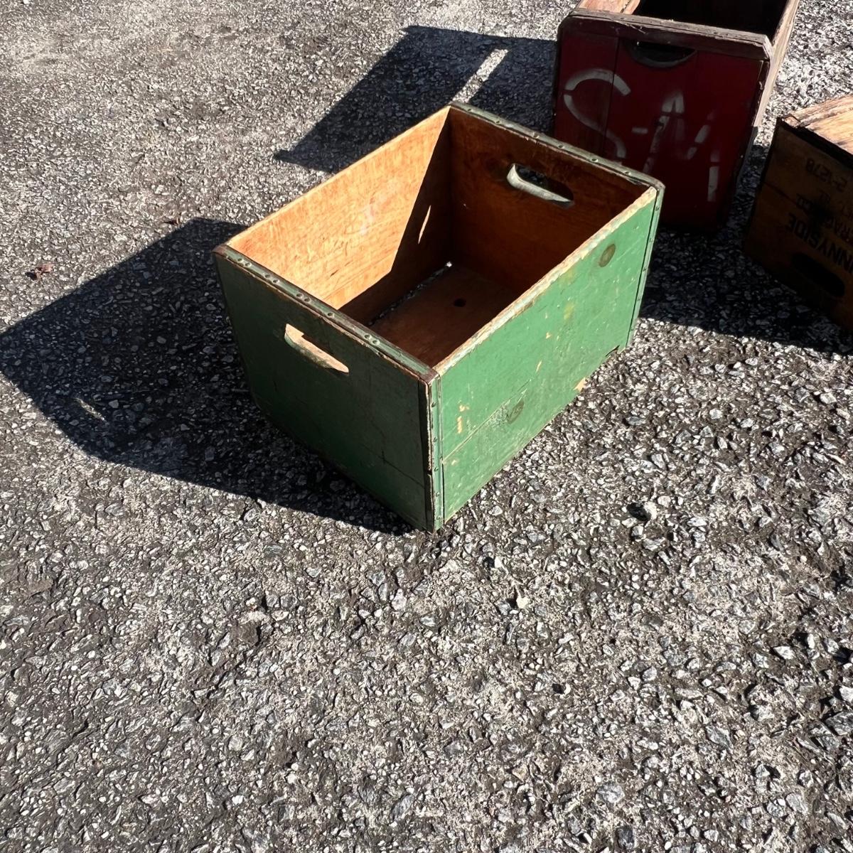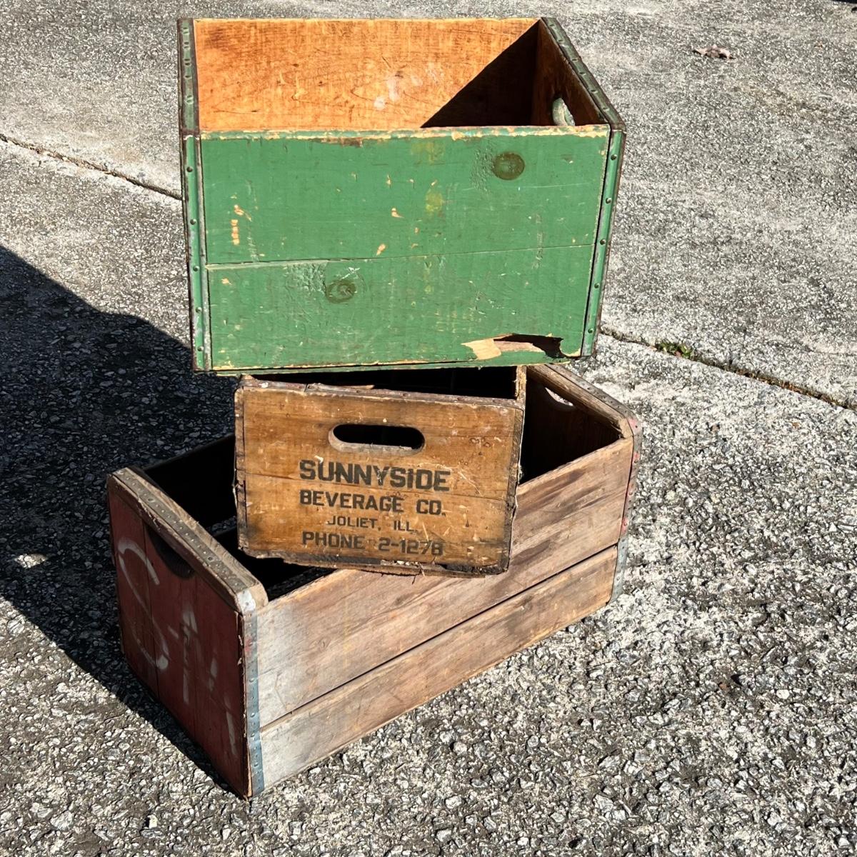 The Sunnyside crate is compartmentalized for soda bottles, the other two are not. All three have age related wear shown in photos.